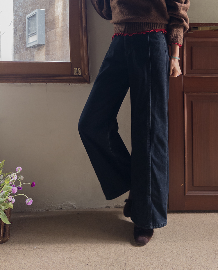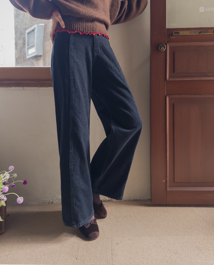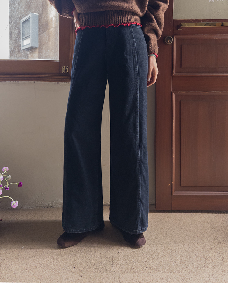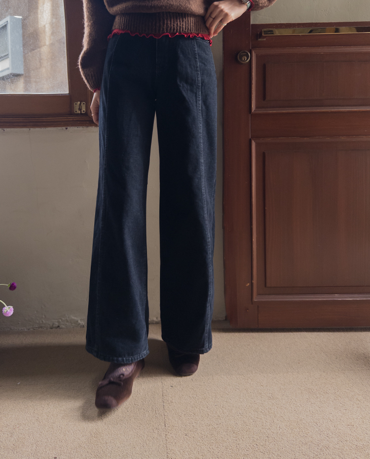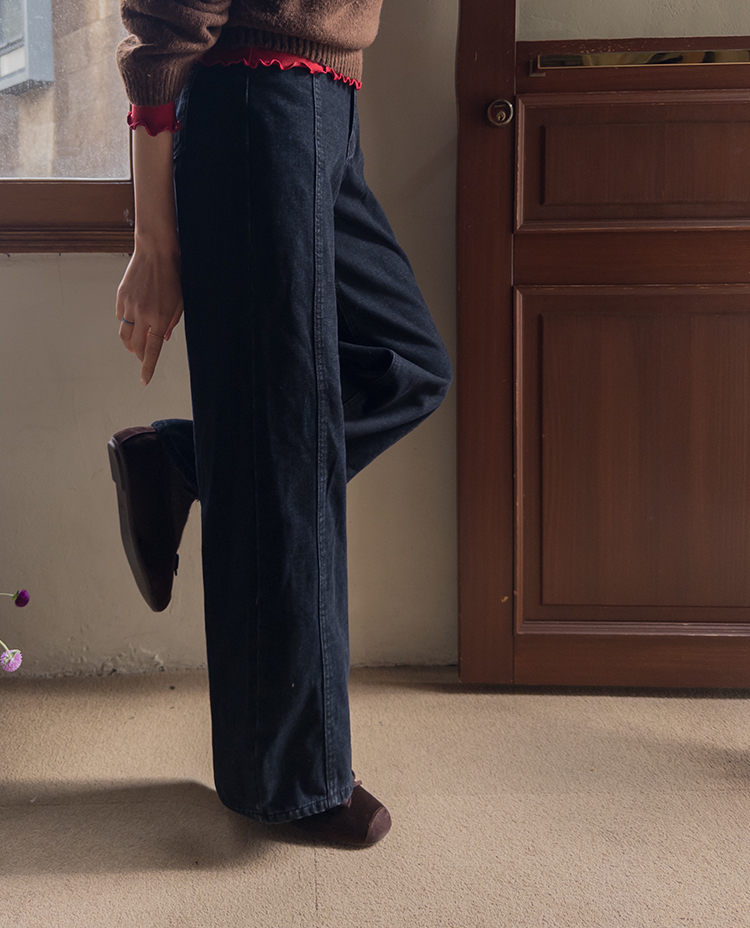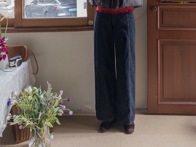 와이드한핏의 앞절개 라인이 돋보이는