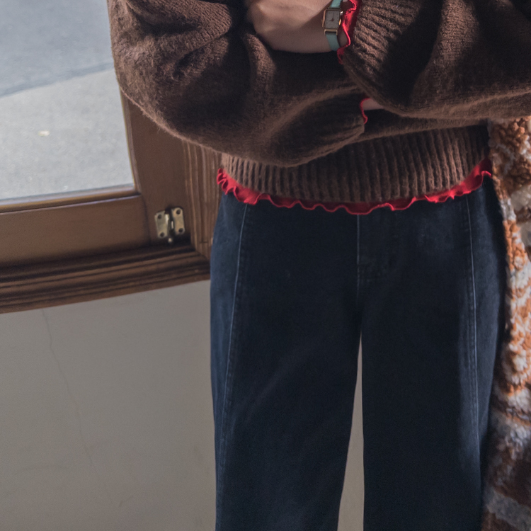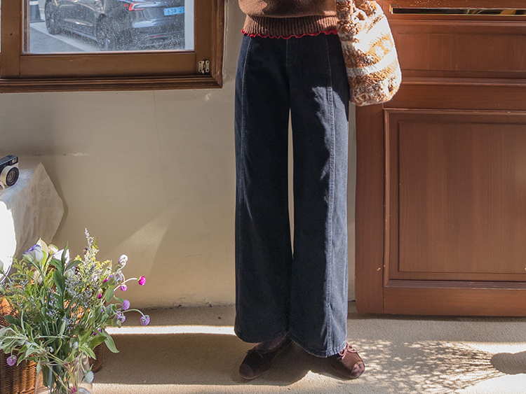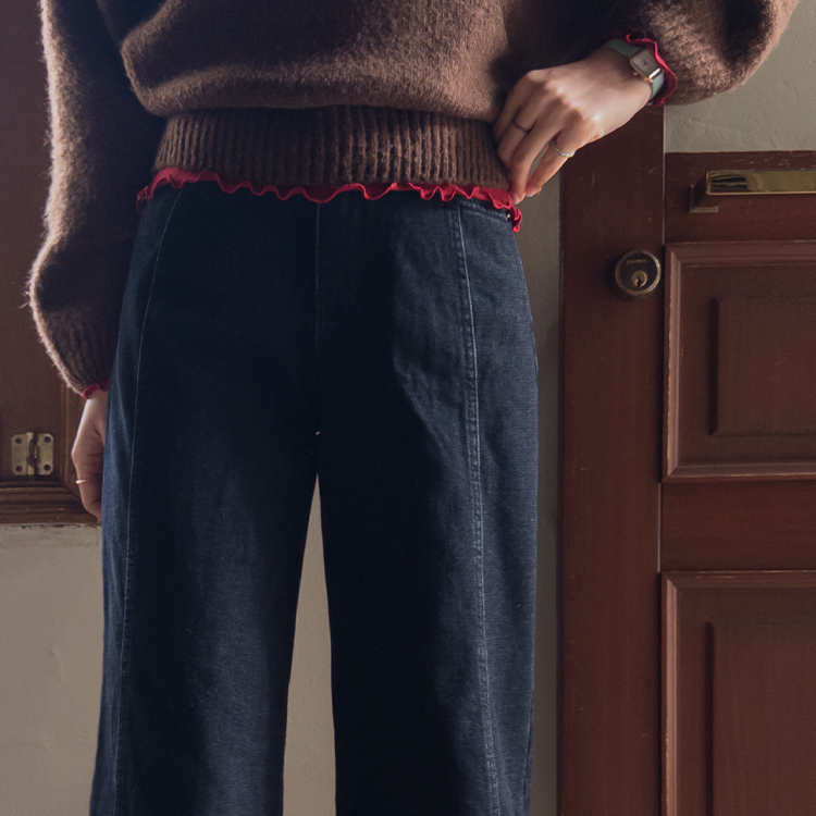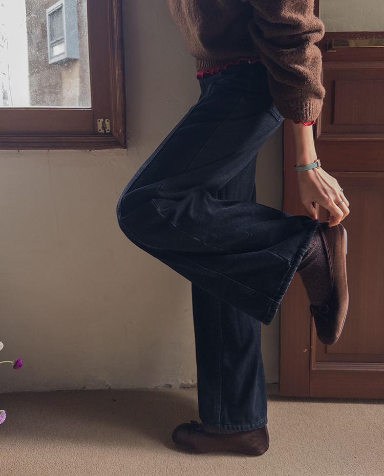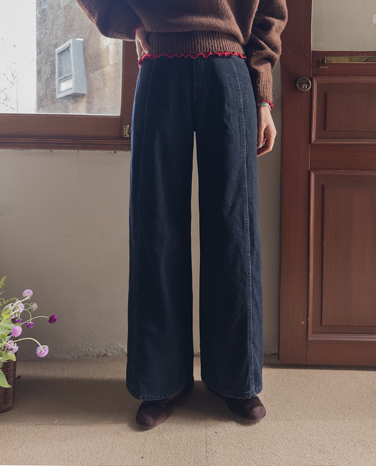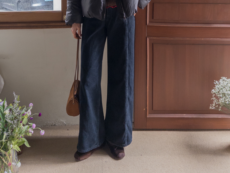 와이드한핏의 앞절개 라인이 돋보이는