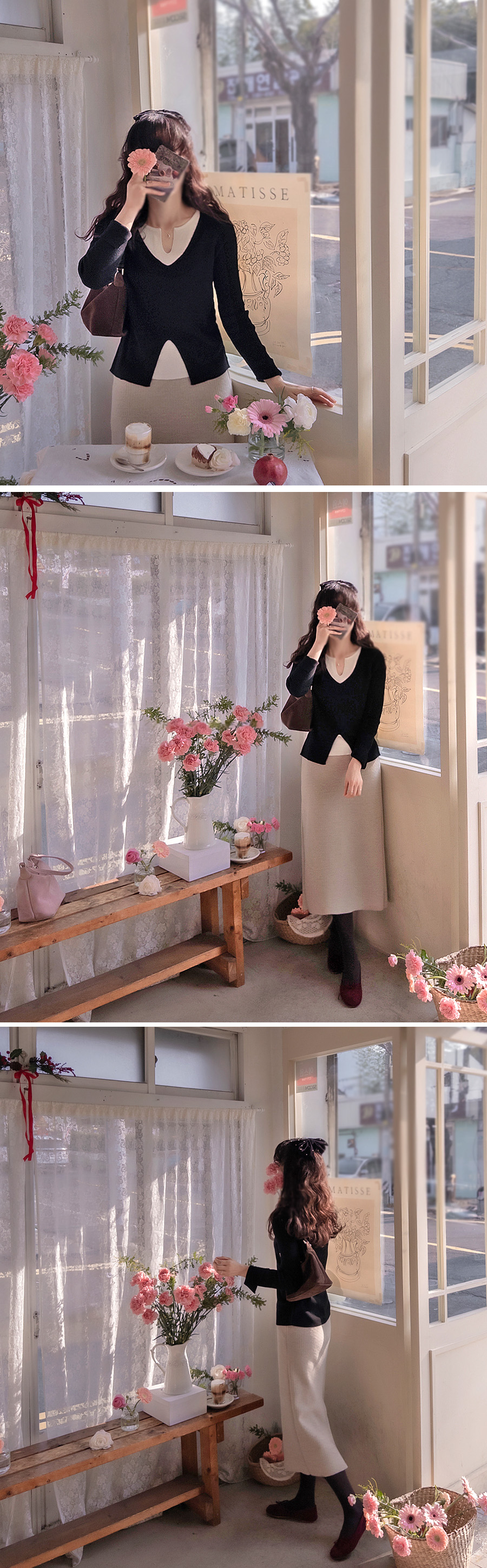 지금은 이너로 입으시고 다가오는 봄에는 단독으로 입으실 수 있는 두께감 이랍니다~