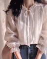 [Temporary sold-out][LABEL] Rikeld Lovely Spring Flower Anne Pintuck Sophistication Blouse [size:F(55~66.5)]