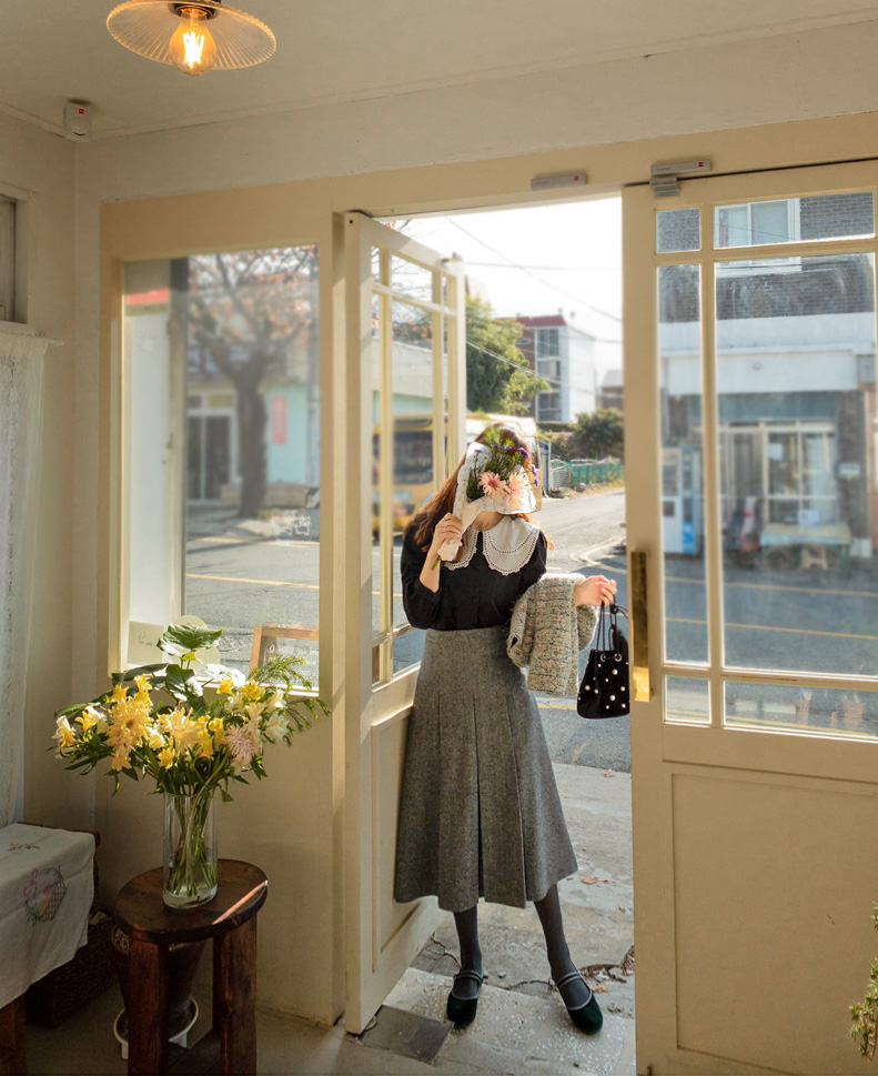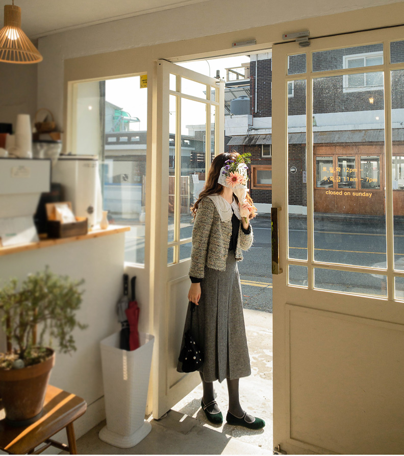 헤링본 원단으로 겨울 원단들이 주는 먼지 걱정 없이!! 고급스럽고 세련되게 입기 너무 좋았던 아이였어요 치마는 원단이랑 핏이 정말 중요한데요~ 요 아이 원단도 고급스럽지만 핏감도 너무 잘 빠졌답니다~ 군더더기 없이 톡 떨어지는 핏감으로~ 브랜드 부럽지 않는 이쁜 라인감 이였어요! 기장감도 너무 길지도 짧지도 않는 요즘 딱 좋아하시는 길이감 이랍니다~ 그래서 아담하신 분들도 좋으실것 같아요~ 유행없이 오래도록 입기에도 좋구요~ 사이즈는 딱 정사이즈로 보시면 되실것 같아요~ 요즘 나오는 크롭한 기장감의 아이들과 너무 좋구요~ 편안하고 사랑스럽게 입기 좋은 스컷 강추 강추 드리며 굿 초이스 되세요^^ |