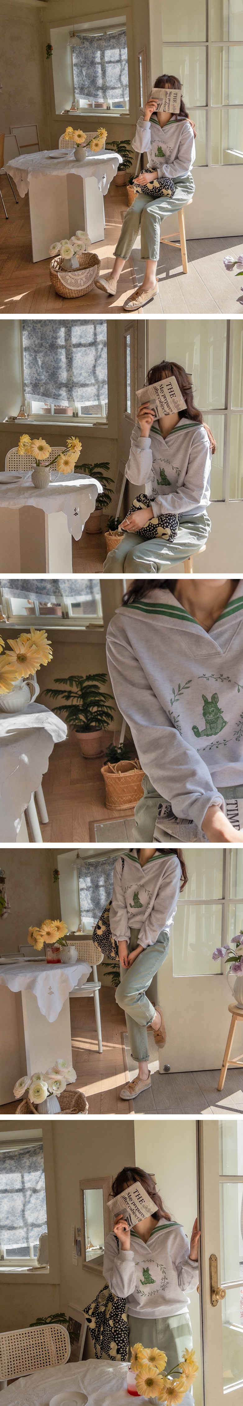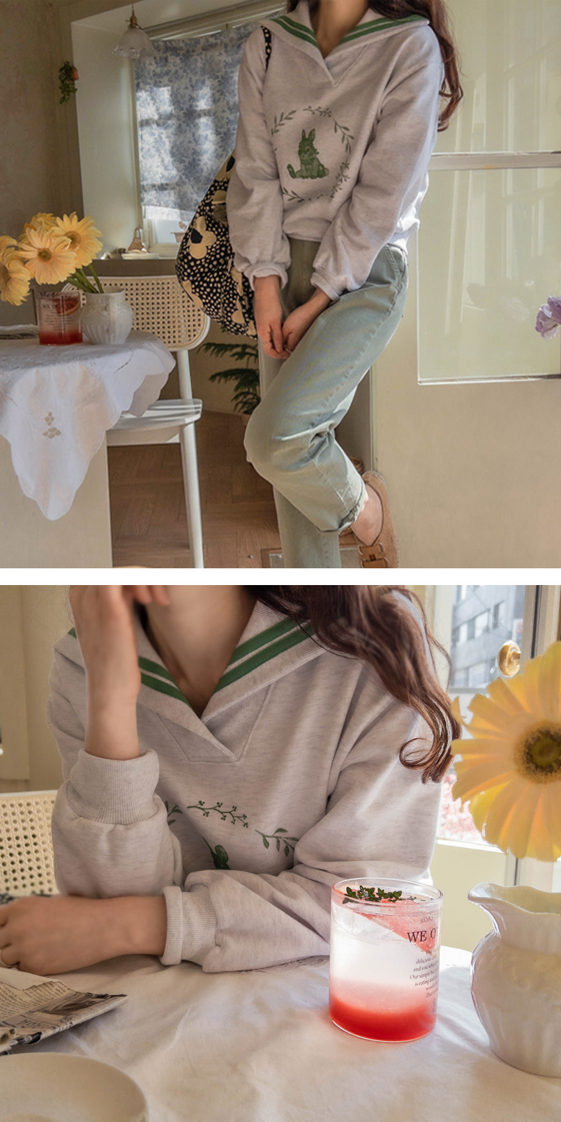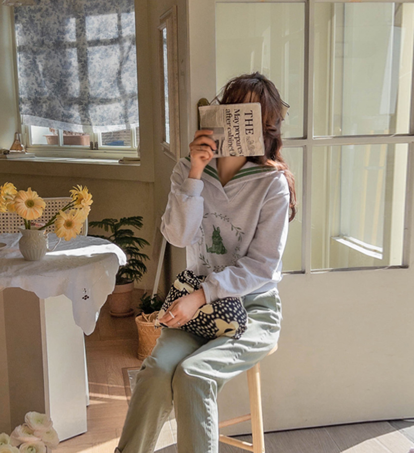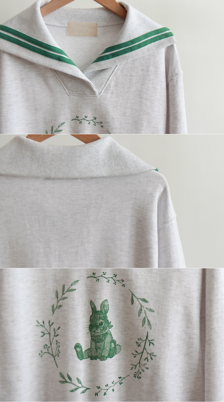 [F(55~66),1(~77)] [Tee with pretty flower and rabbit printing][Unique design with a sailor collar][Cute tee worth owning][From now until spring]
