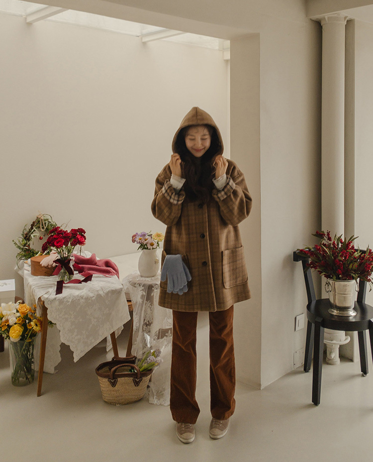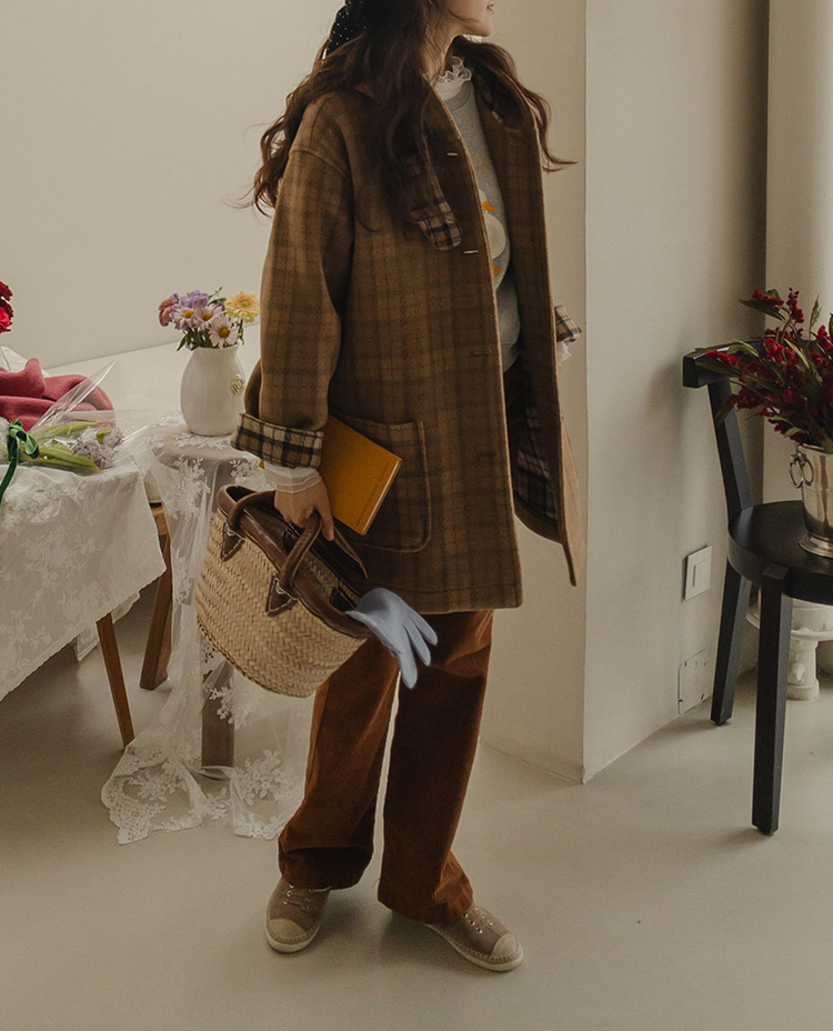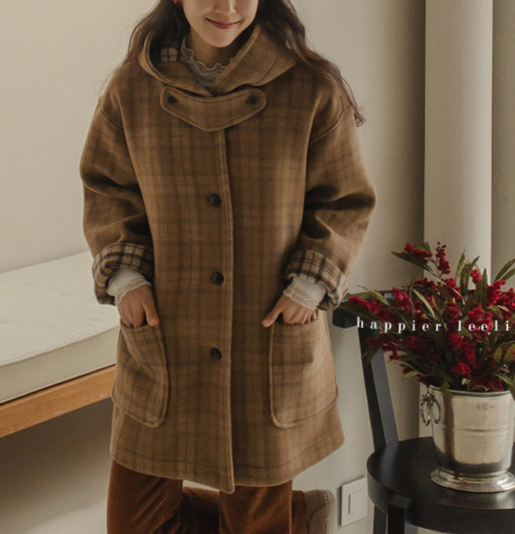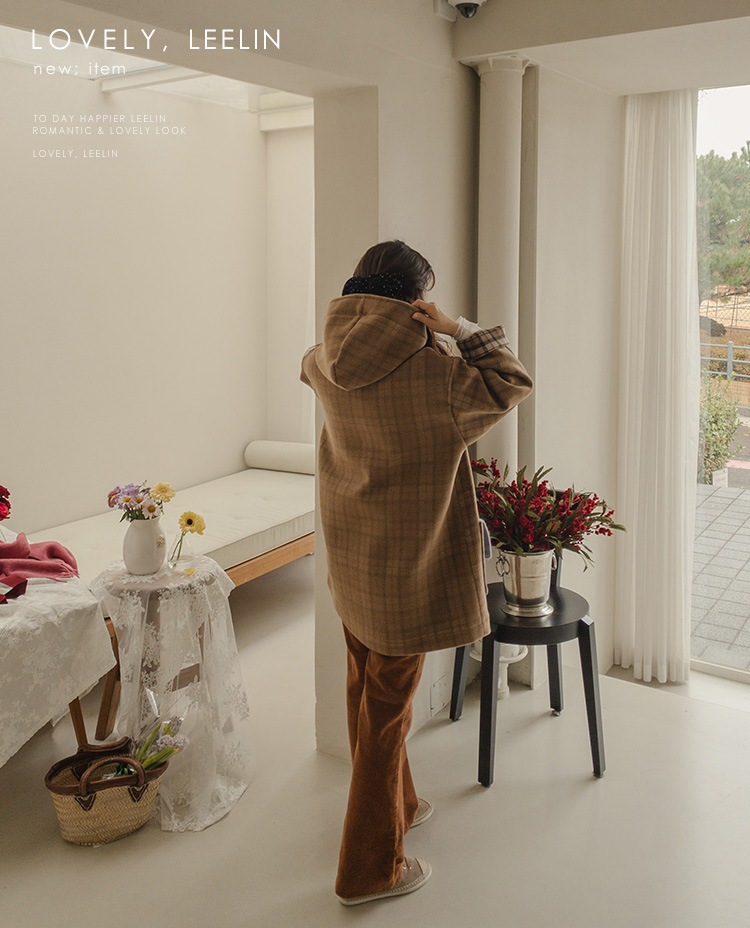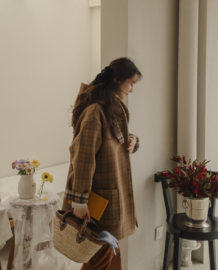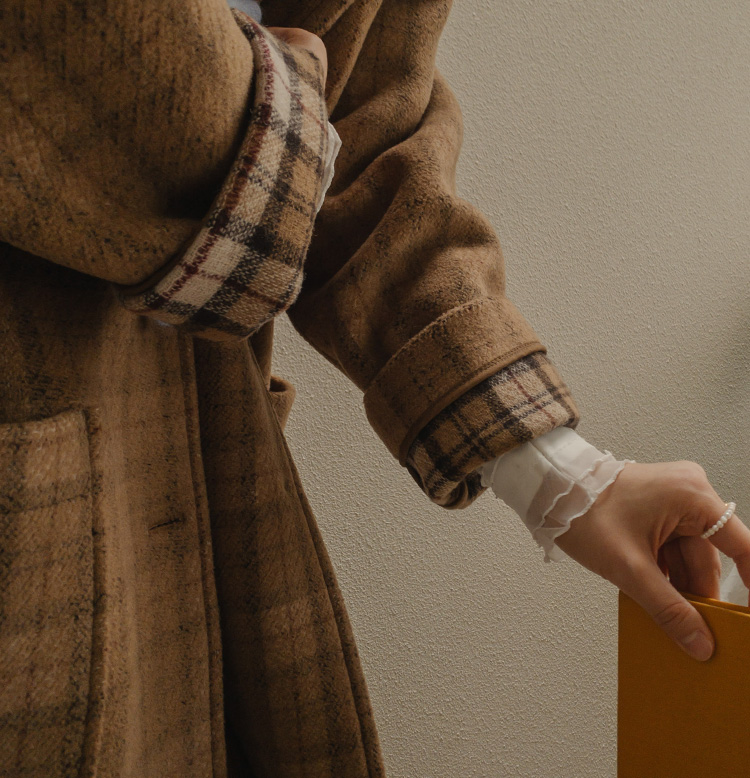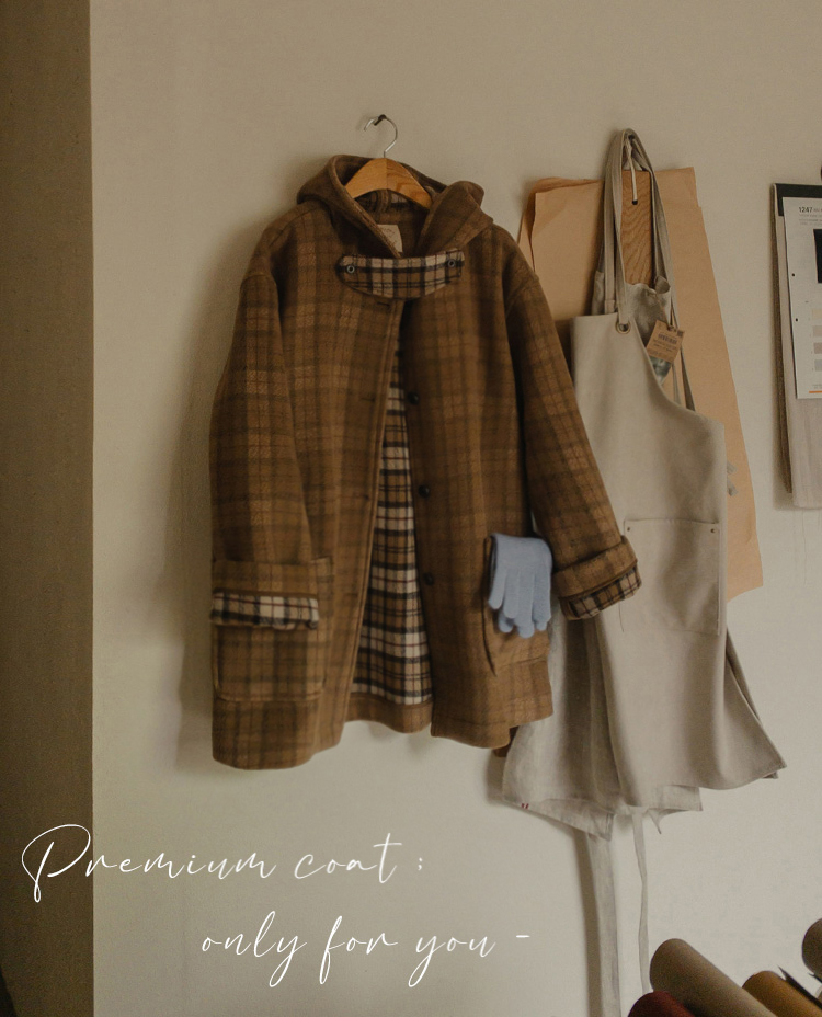 체크 배색으로 포인트를 더해준, 살짝씩 보여지는 체크 배색라인이 예뻐 하나쯤 소장하시면 유행타지 않고 오래오래 내 옷장속에서 자주 꺼내입게 될, 효자 같은 LIN,MADE 체크 코트 소개드릴게요:) 요 아이는 정말정말 몇달동안 소재,핏,포인트,내구성 요 모두 섬세하게 작업하고 고심하면서 제작한 아이에요! 물론 브랜드 퀄리티 못지 않은 그런 아이랄까요..! 겉감과 다른 색감의 안감 체크 배색으로 포인트를 더해줘서 살짝 보이는 배색 안감이 멋스럽고 계속 눈길이 가는거 있죠..! 요렇게 은은하게 포인트가 되어주는 귀여운 포인트로 넘 예쁘게 보여지는 코트에요 ㅎㅎ 소매 끝단 안감에도 체큰 원단이 더해져 있어서 롤업했을 때 체크 패턴이 보여지면서 더욱 멋스럽게 포인트 주기에도 좋답니다 또 울 높은 울 함량으로 소재에 아낌없이 사용해서 제작했어요~ 한겨울에도 요아이 하나만 입었을 뿐인데 따스하게~ 큼지막한 후드라인이 들어가서 귀여운 포인트가 되어주고, 눈이 왔을 때나 바람이 많이 부는 날에 폭닥-써주셔도 좋구요 비죠 디테일을 더해줘서 버튼을 모두 클로징 해주었을 때, 하이넥처럼 넥 라인이 올라와서 바람을 싹 막아주니깐 더욱 포근하게 착용된답니다 :) 양쪽 사이드에는 주머니를 더해줘서 안에 따스한 핫팩이랑 함께 손넣기도 좋구요~ 귀엽게 사랑스러운 아이! 여유있는 핏감으로 도톰한 이너도 편하게 착용되구요 여유핏이지만 벙벙하거나 너무 박시한 느낌으로 떨어지는 실루엣은 아니어서 더욱 예뻤어요 *.* 한겨울에 요아이와 함께 해주셨음 하는 바램으로 제작한 아이라서 꼭 눈여겨 봐주셨음 해요,,,♡
