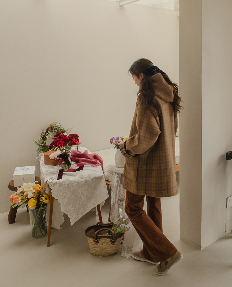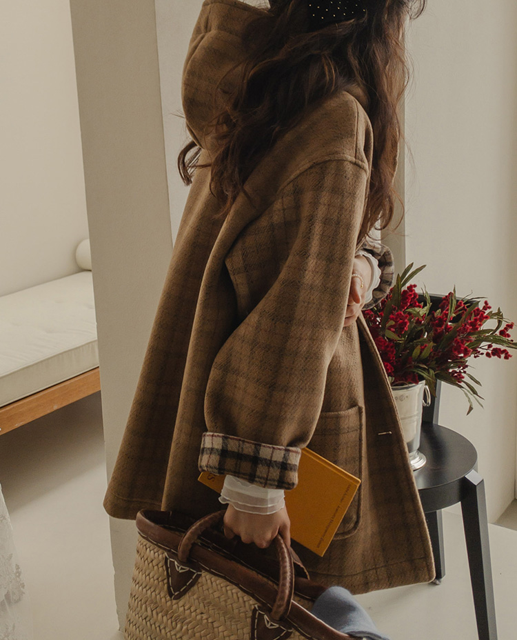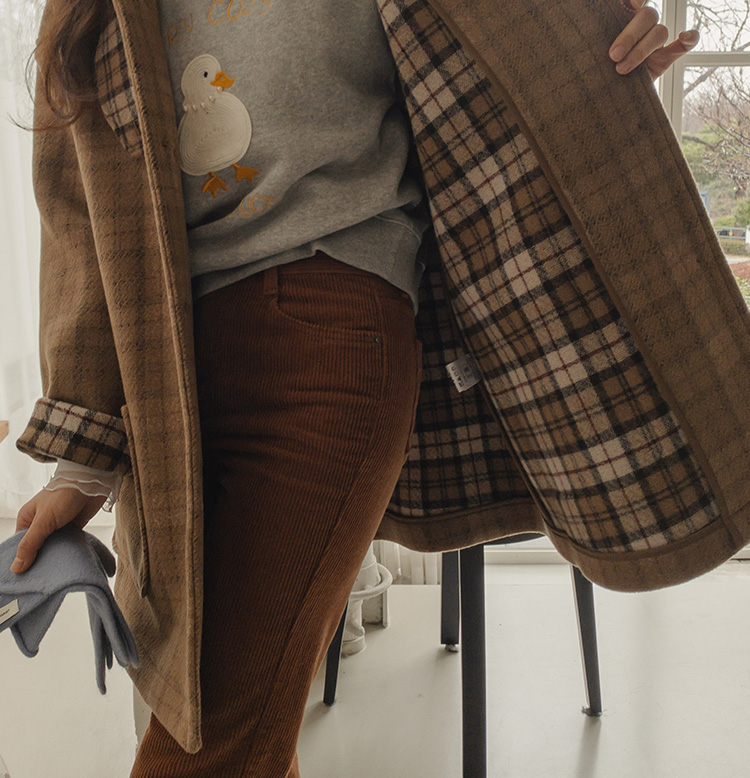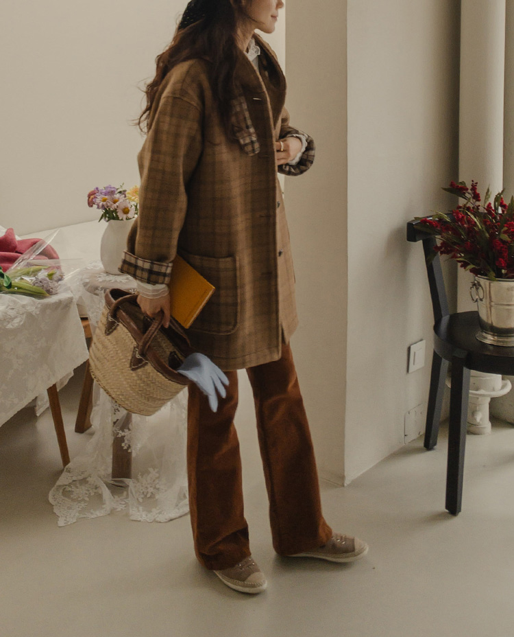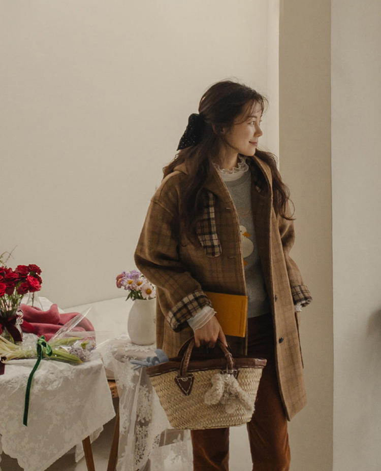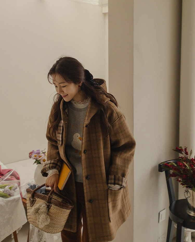 체크 배색으로 포인트를 더해준, 살짝씩 보여지는 체크 배색라인이 예뻐 하나쯤 소장하시면 유행타지 않고 오래오래 내 옷장속에서 자주 꺼내입게 될, 효자 같은 LIN,MADE 체크 코트 소개드릴게요:) 요 아이는 정말정말 몇달동안 소재,핏,포인트,내구성 요 모두 섬세하게 작업하고 고심하면서 제작한 아이에요! 물론 브랜드 퀄리티 못지 않은 그런 아이랄까요..! 겉감과 다른 색감의 안감 체크 배색으로 포인트를 더해줘서 살짝 보이는 배색 안감이 멋스럽고 계속 눈길이 가는거 있죠..! 요렇게 은은하게 포인트가 되어주는 귀여운 포인트로 넘 예쁘게 보여지는 코트에요 ㅎㅎ 소매 끝단 안감에도 체큰 원단이 더해져 있어서 롤업했을 때 체크 패턴이 보여지면서 더욱 멋스럽게 포인트 주기에도 좋답니다 또 울 높은 울 함량으로 소재에 아낌없이 사용해서 제작했어요~ 한겨울에도 요아이 하나만 입었을 뿐인데 따스하게~ 큼지막한 후드라인이 들어가서 귀여운 포인트가 되어주고, 눈이 왔을 때나 바람이 많이 부는 날에 폭닥-써주셔도 좋구요 비죠 디테일을 더해줘서 버튼을 모두 클로징 해주었을 때, 하이넥처럼 넥 라인이 올라와서 바람을 싹 막아주니깐 더욱 포근하게 착용된답니다 :) 양쪽 사이드에는 주머니를 더해줘서 안에 따스한 핫팩이랑 함께 손넣기도 좋구요~ 귀엽게 사랑스러운 아이! 여유있는 핏감으로 도톰한 이너도 편하게 착용되구요 여유핏이지만 벙벙하거나 너무 박시한 느낌으로 떨어지는 실루엣은 아니어서 더욱 예뻤어요 *.* 한겨울에 요아이와 함께 해주셨음 하는 바램으로 제작한 아이라서 꼭 눈여겨 봐주셨음 해요,,,♡