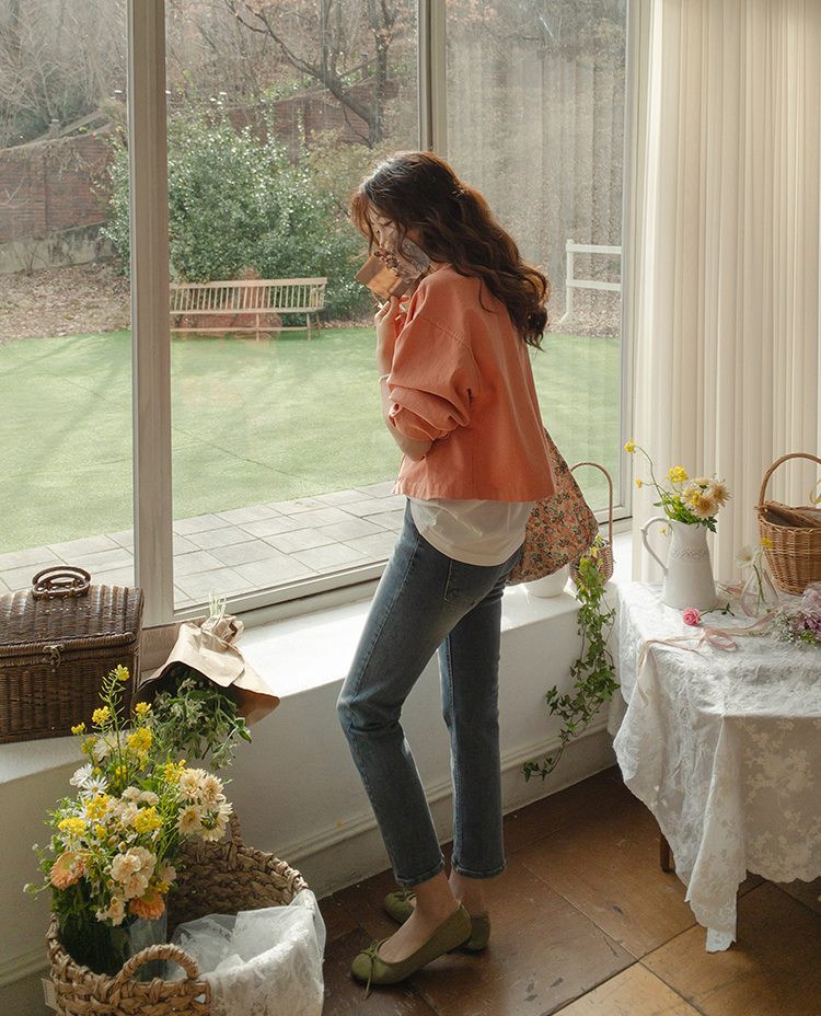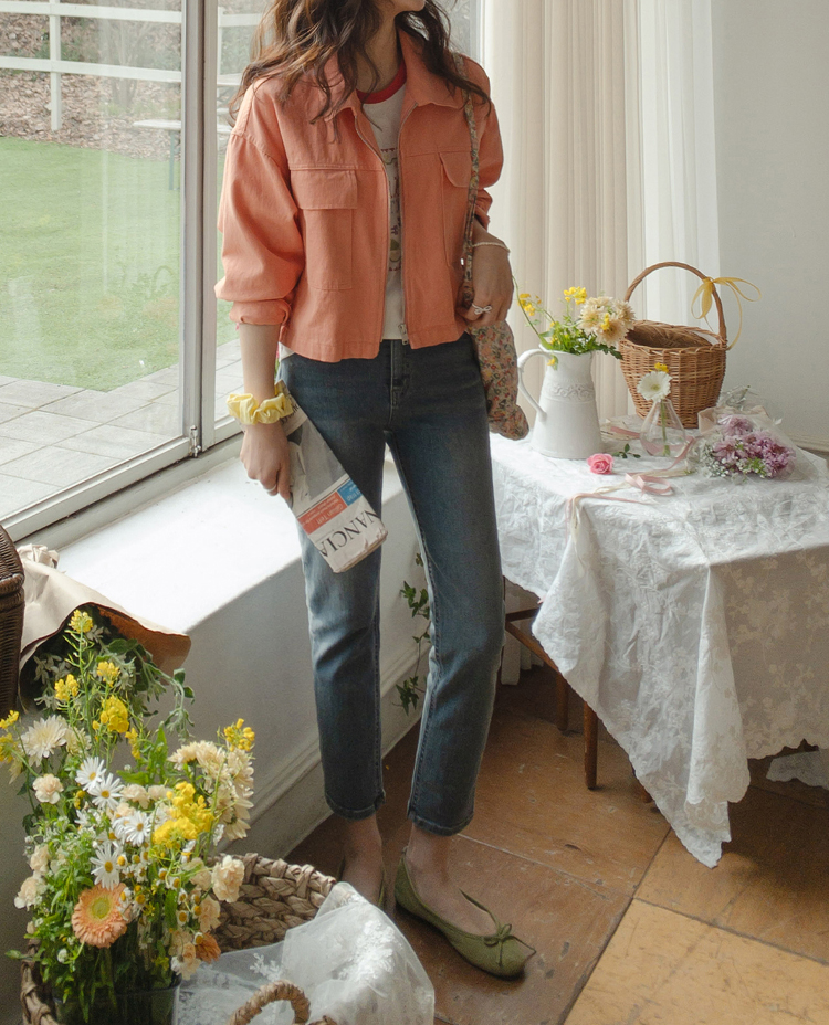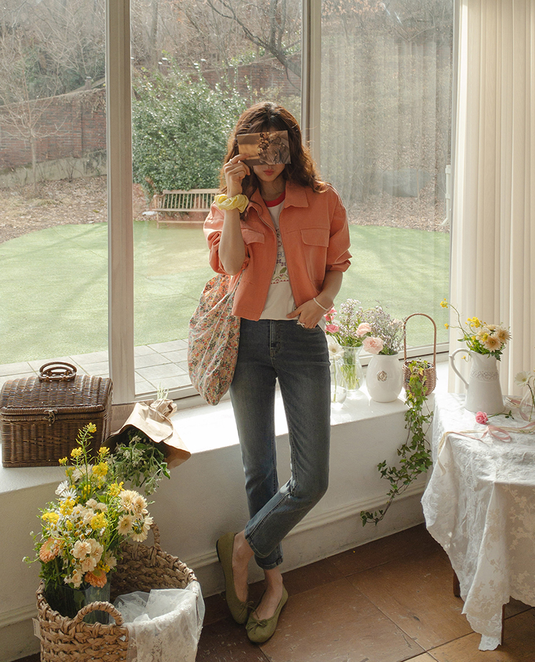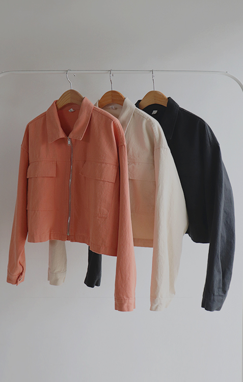 간절기 시즌 필수 아이템! 데일리하게 걸쳐 입기 좋은 코튼 자켓 소개해드려요 :) 탄탄한 코튼 소재에 바이오워싱이 더해져 부드러운 텍스쳐가 기분 좋게 만들어주며 세탁 후 변형과 생활구김도 적어서 활동하기 정말 편안한 아이에요~ 컬러감 자체도 예쁘게 나왔는데 피그먼트워싱도 한번 더해져서 저렴한 느낌 없이 고급스러움이 느껴지더라구요,,ㅎㅎ 적당한 두께감으로 데일리한 아우터로 즐기시기 좋으며 일교차가 큰 초여름 시즌이나 비 오는 날에도 가볍게 걸치기 좋은 자켓!! 레그라인이 길어보이게 만들어주는 살짝 크롭한 기장감으로 데님에 툭 입으셔도 좋고 슬랙스, 스커트, 원피스 등 다양한 스타일로 입기 좋은 베이직한 아이랍니다 ^^ 어깨라인을 내추럴하게 감싸주면서 전체적으로 낙낙하고 여유있는 실루엣으로 부담없이 입기 좋구요 프론트 중앙 지퍼가 더해져 간편하게 오픈클로징을 할 수 있으며 바스트라인 사각포켓이 더해져 실용성까지 느껴졌던 자켓이에요 ㅎㅎ 밑단도 둥글게 재단되어 밋밋하지 않게 은근히 포인트가 되어준답니다! 산뜻한 봄기운을 담은 살짝 형광끼가 감도는 오렌지 컬러부터, 가장 기본으로 입기 좋은 크림, 블랙 컬러 총 3가지 컬러로 준비했어요~ 취향에 맞게 초이스하셔서 데일리하게 즐겨주세요♥
