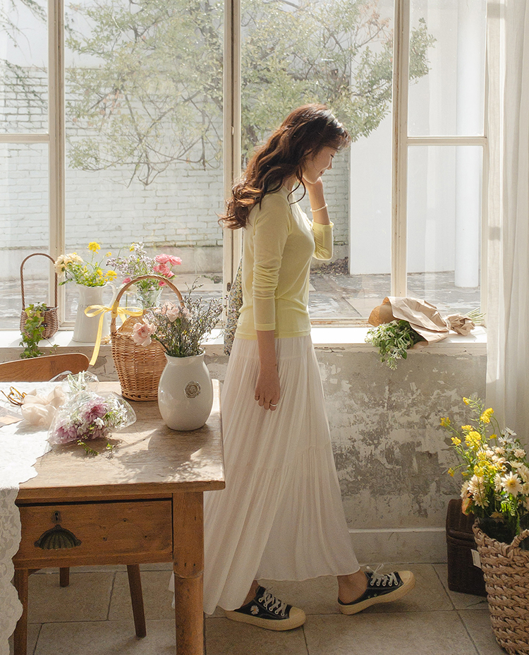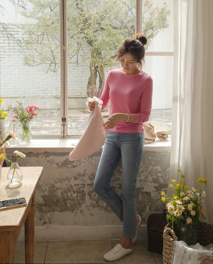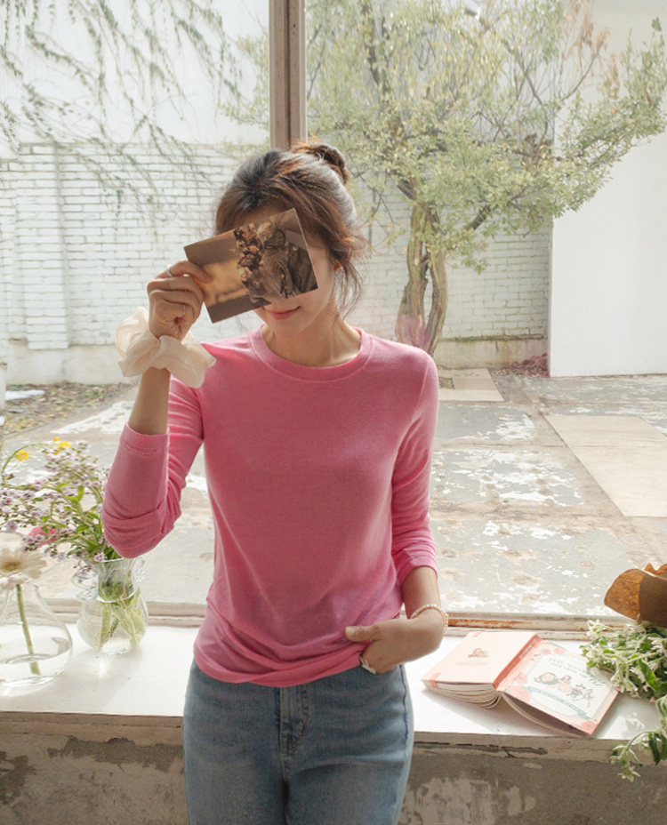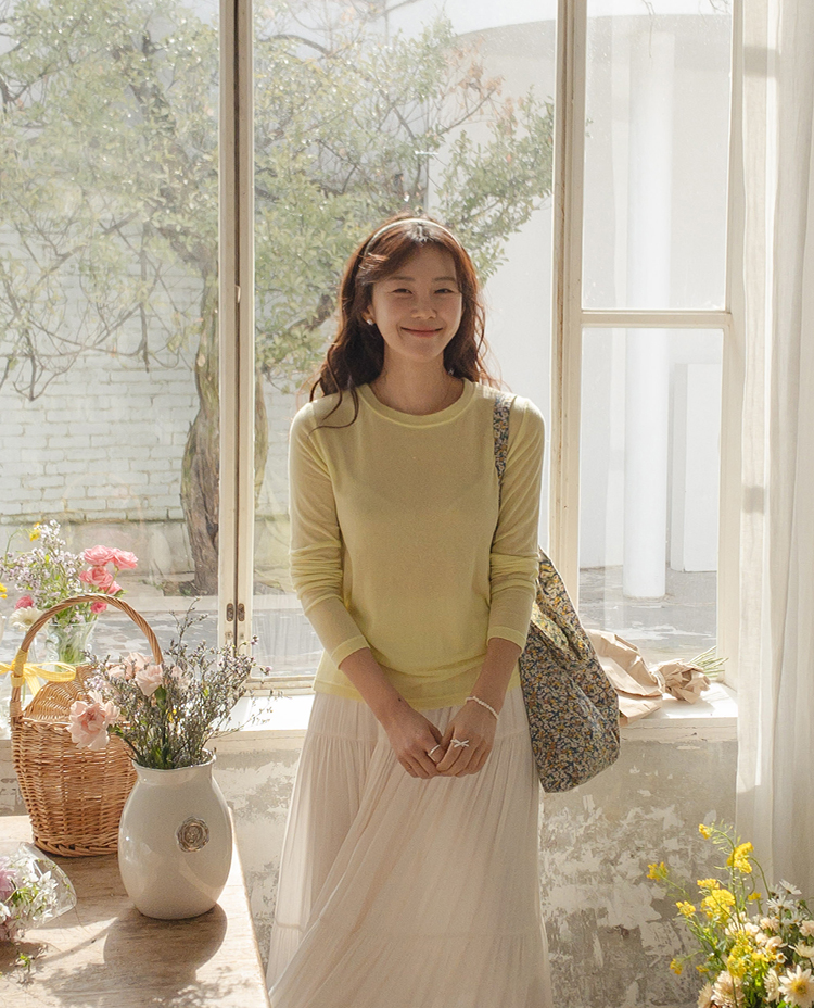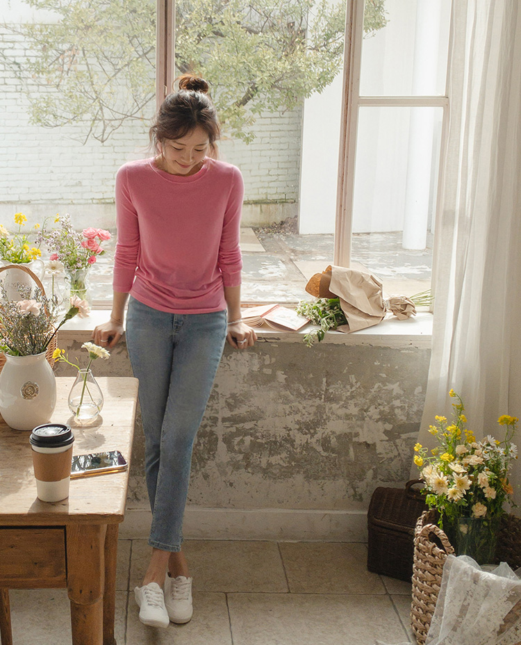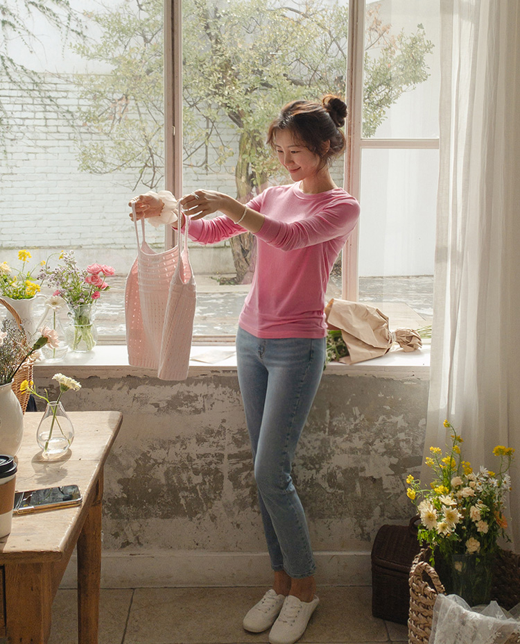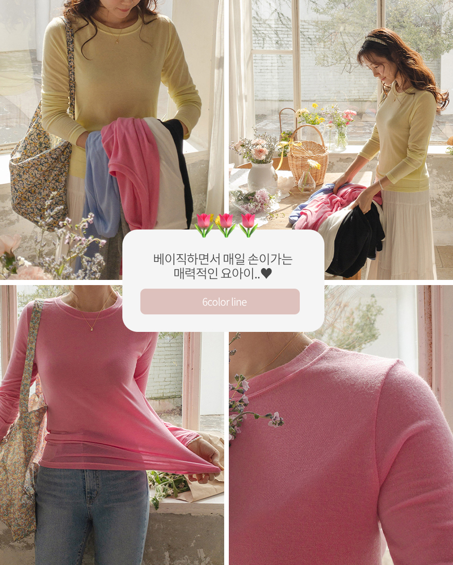 미친 스판끼!!! 정말 입자마자 미쳤다~ 이런 말이 자연스레 나오는 티셔츠 *.* 꼭 소개해 드리고 싶었어요 ㅎㅎ 기본 티셔츠 막상 구매하려고 보면 잘 없잖아요~ 소재랑 핏도 너무 완벽한 요물같은 아이라 꼭 소장하시길 바라는 마음!! 딱 봄부터 여름까지 쭉~ 여기저기 막 껴입기 딱 좋은 데일리 기본템으로 소장하시기 너무 좋아서 발 빠르게 소개해 드려요♥ 기본 티셔츠인 만큼 소재&핏 너무너무 중요하잖아요~! "미친 스판끼" 라고 소개해 드린 만큼, 쫀쫀한 치즈스판이 정말 너무너무 편하구요 입고 벗을때 뻣뻣하면 불편한데 쫀득한 신축성으로 너무 편하게 착용되는 티셔츠 :) 거기다 찰랑찰랑~~ 후들후들~~ 가볍고 얇은 소재로 자연스레 흐르듯 표현되는 티셔츠여서 입었을때 여리여리한 핏이 연출되어준답니다 ^^ 그만큼 몸도 슬림해 보이는 효과까지!! 그렇다고 바디라인에 쫙 하고 달라붙는 핏 아니구요~ 흐르듯 연출되어서 더 예쁘답니다 ㅎㅎ 촉촉하게 바디라인에 살포시~ 감겨주는 텍스처라 너무 부드럽구요 피부 예민하신 분들도 전혀 까슬거림 없이 착용되실 거예요~ 그 이유는~ 텐셀 93% 함유 덕분이에요! 그만큼 편안하고 부드러운 착용감이 정말 우수해요♥ 기장감도 적당하게 나와서 하의에 넣어서 연출해도, 빼고 자연스레 연출해도 딱 예쁜 기장감! 컬러는 라이트블루 / 핑크 / 레몬 / 메란지 / 아이 / 블랙까지 다양한 컬러 소장해 두시라고 6컬러 다양하게 준비했어요♥ 기본으로 무조건 소장하셔야할 아이, 블랙, 메란지 컬러와 라이트블루, 핑크, 레몬은 산뜻하고 상큼한 봄 컬러로 딱 좋아요 :) 포인트컬러로 즐기기도 좋구요~ 치즈같은 야들야들 스판끼에 부드러운 텍스처, 흐르듯 늘씬해 보이는 핏감까지- 정말 여기저기 막 껴입기 딱 좋은 티셔츠라 무조건 여러 컬러 소장해 두시길 바래요 ㅎㅎ♥