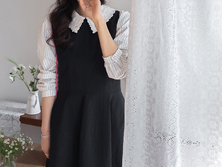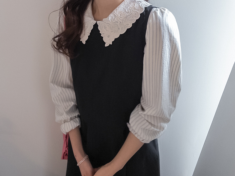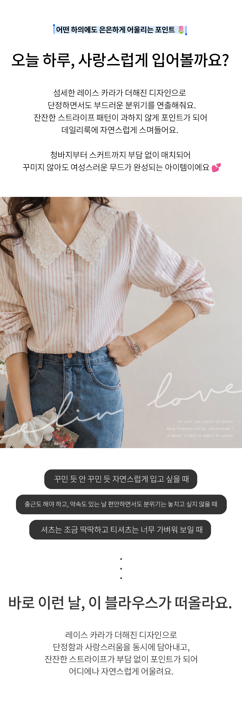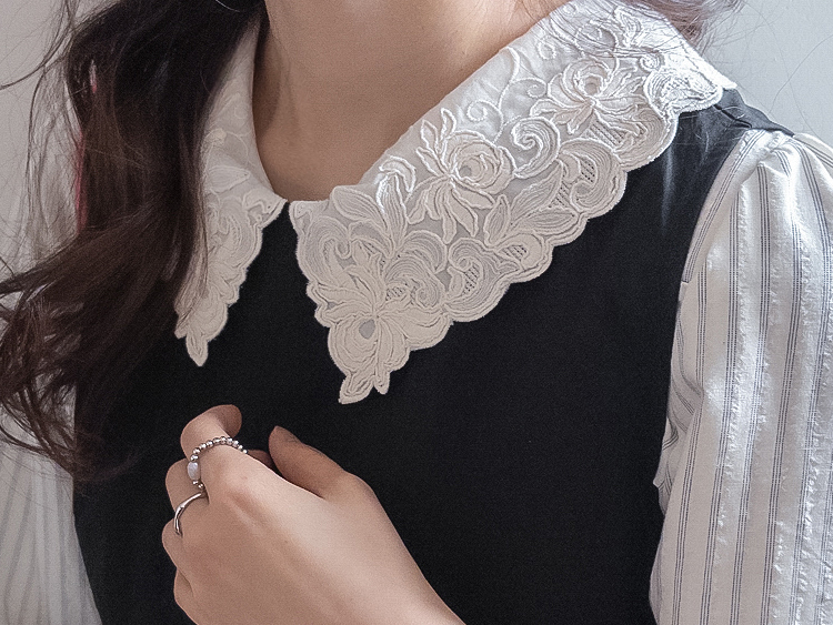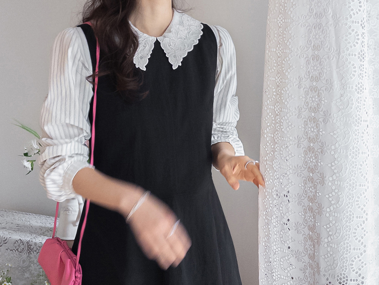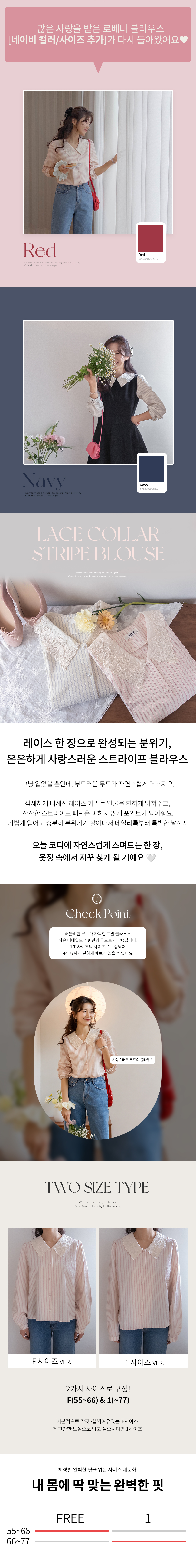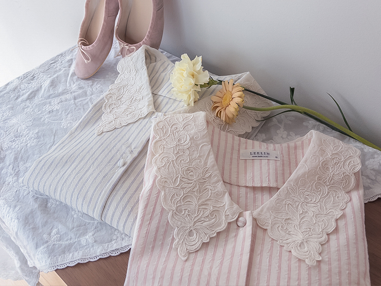큼지막한 카라로 얼굴이 작아보이면서 입체적인 플라워 자수로 사랑스러움이 가득 담긴 BL에요♡ 봄이 떠오르는 입체적인 플라워 자수와 슬림한 카라 끝이 얼굴이 슬림하고 작아보이는 효과가 낭낭~✿ 또, 사랑스러움을 UP해주는 콩단추 디테일까지 ~ ㅎㅎ 슬림해보이는 세로 스트라이프 패턴과 어깨 셔링 포인트로 상체라인을 둥글~하게잡아주니 아방하게 귀요미핏 완-성 !! 살짝 자글한 원단감이라 입체적이게 느껴지는 :) 다가오는 봄에 다양하게 활용해보아요♡