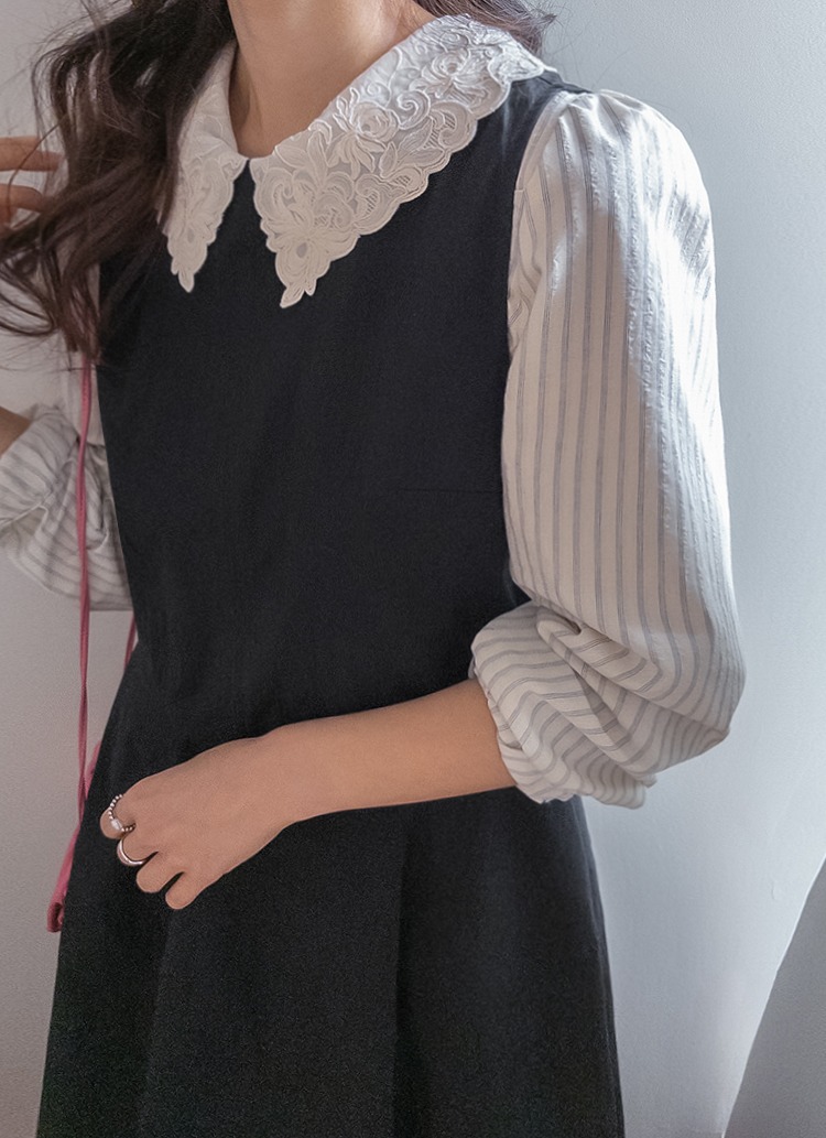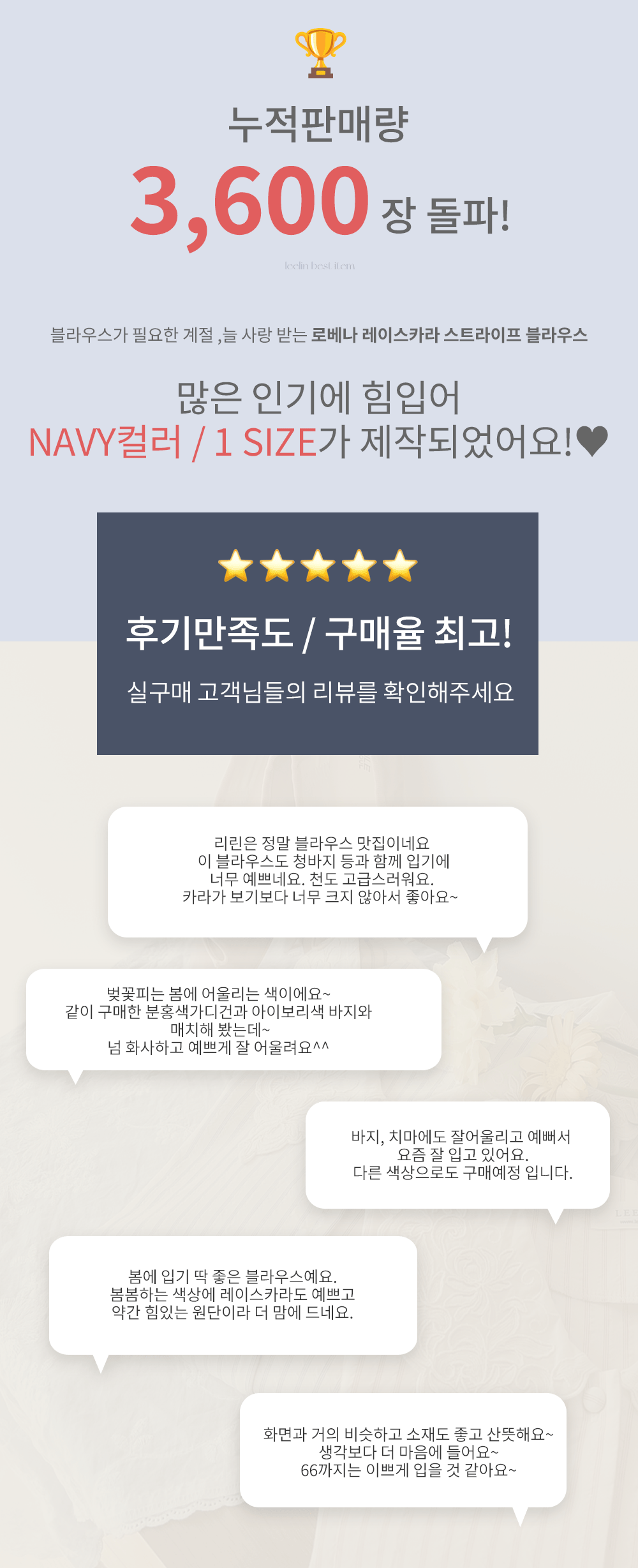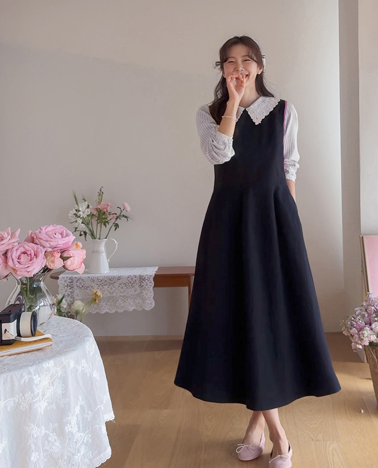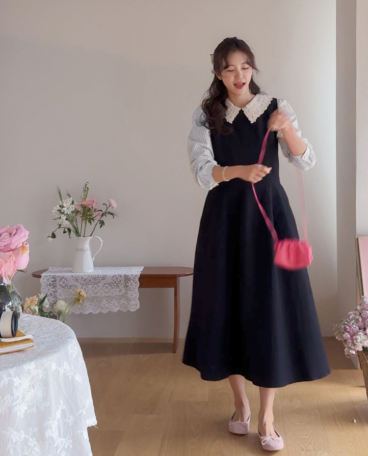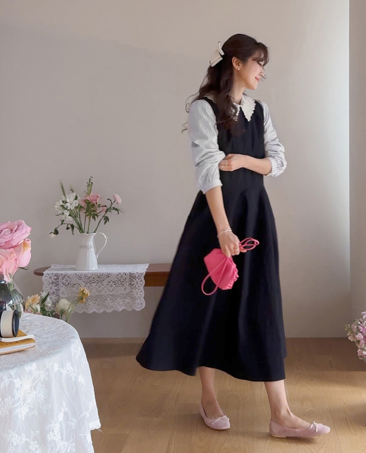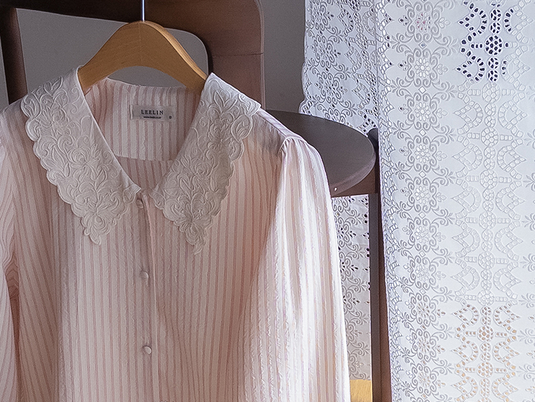 큼지막한 카라로 얼굴이 작아보이면서 입체적인 플라워 자수로 사랑스러움이 가득 담긴 BL에요♡ 봄이 떠오르는 입체적인 플라워 자수와 슬림한 카라 끝이 얼굴이 슬림하고 작아보이는 효과가 낭낭~✿ 또, 사랑스러움을 UP해주는 콩단추 디테일까지 ~ ㅎㅎ 슬림해보이는 세로 스트라이프 패턴과 어깨 셔링 포인트로 상체라인을 둥글~하게잡아주니 아방하게 귀요미핏 완-성 !! 살짝 자글한 원단감이라 입체적이게 느껴지는 :) 다가오는 봄에 다양하게 활용해보아요♡