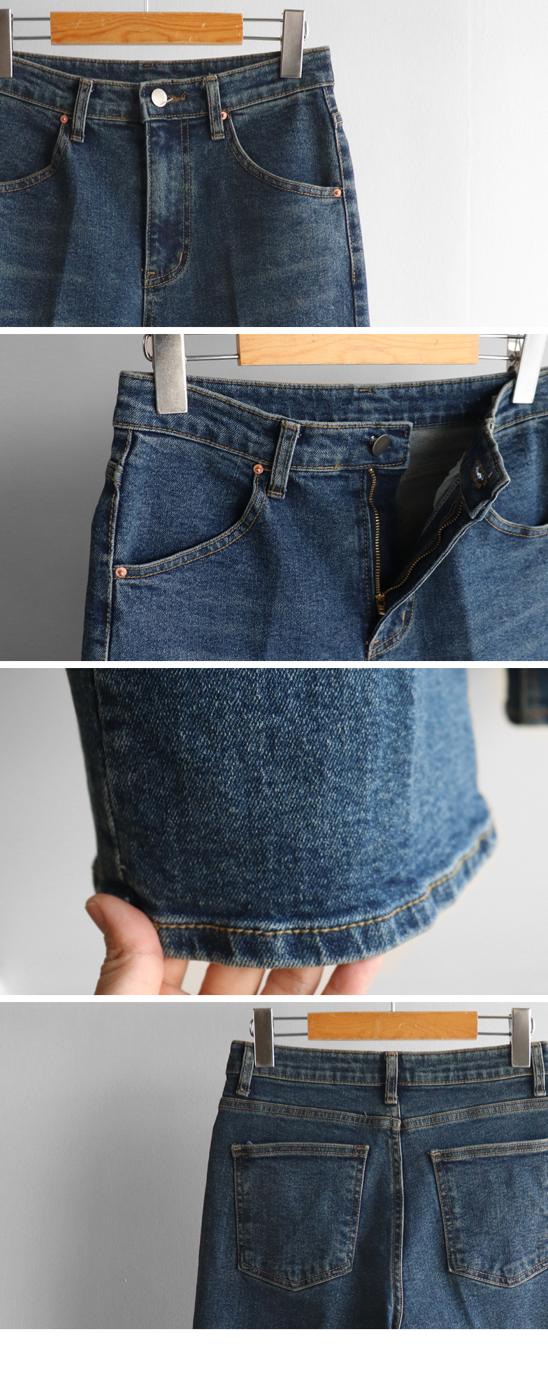 기본 데님팬츠보다 포인트 데님으로 즐기기 좋은 아이템 :) 슬랙스에만 있는 레직기 라인이 쏙~ 더해져 유니크하게 매치하기 좋구요 심플한 상의에도 포인트룩을 완성시켜주는♥ 레직기 라인 덕분에~ 다리라인도 길쭉~ 슬림해보여요 ^^ 간절기에 잘 어울리는 예쁜 중청 컬러감이 다가오는 가을과 너무 잘 어울려 추천드리는 팬츠랍니다~!! 쫀-쫀 스판감이 더해져 하루종일 착용해도 편안하니 손이 자주 갈 아이템!! 군살 커버에 너무 좋은 아이템이니 하체 고민이 있으시다면! 굿초이스 해주세요~♥ *데님 소재 특성상, 이염이 살짝 생길 수 있으니 세탁 시, 단독세탁 해주세요*