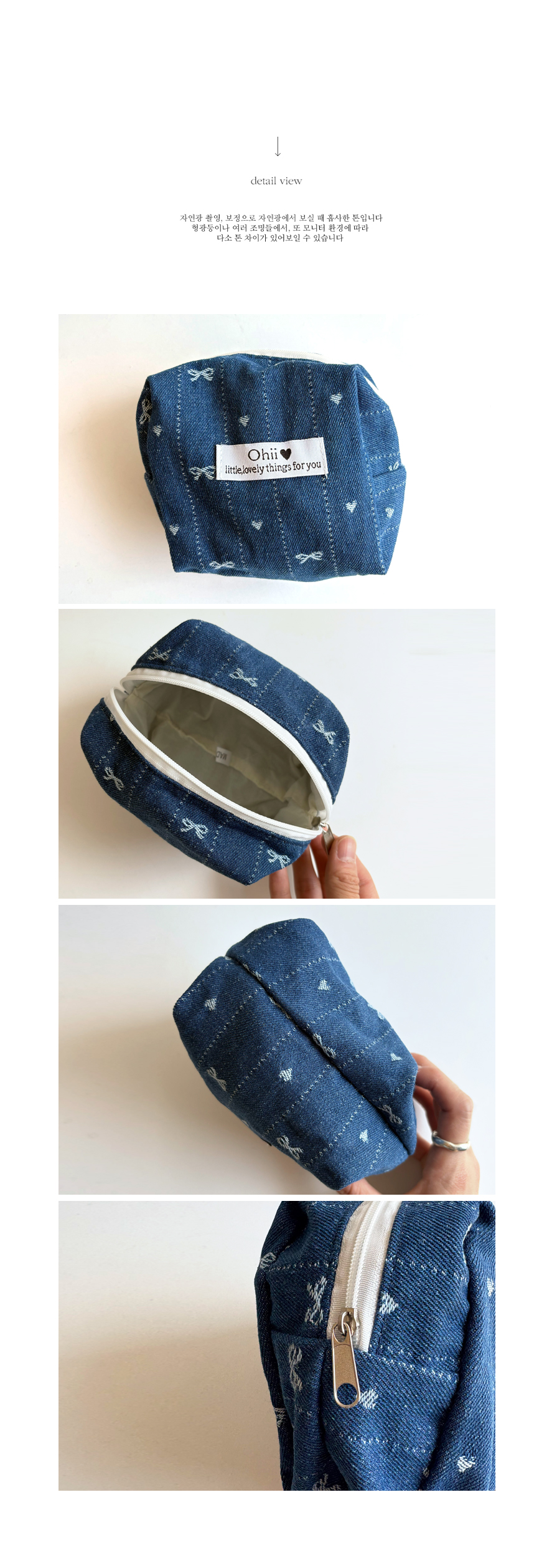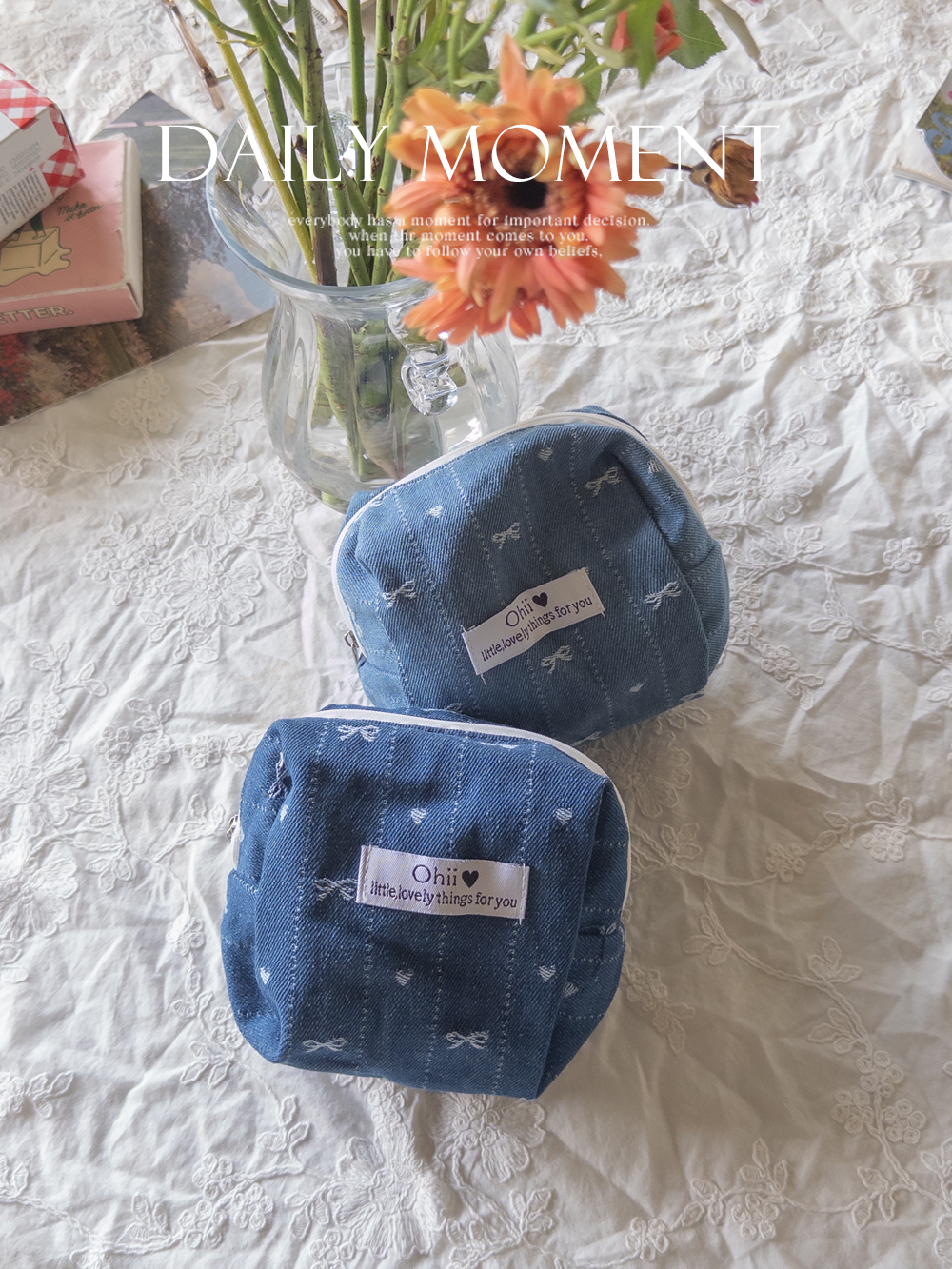 여기저기 굴러다니는 작은 소지품들 쏘옥-! 발랄한 무드의 큐브 데님 파우치♥ 큐브 모양의 귀여운 디자인이라~ 유니크하게 이쁘더라구요~ 스트라이프 패턴에 리본과 하트 자수가 더해져 러블리한 무드 가득~ 자수여서 고급스럽구요 패치도 있어 밋밋하지 않은 포인트까지 ^^ 너무 작지도 크지도 않은 딱 적당한 크기로 가방 속에 쏙! 넣어다니기 좋아요♥ 탄탄한 데님 소재로 오래도록 사용할 수 있어 가성비까지 좋은 아이템이랍니다~