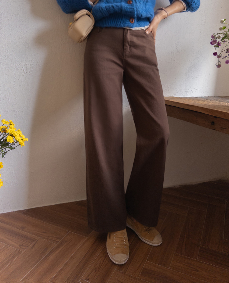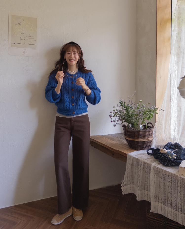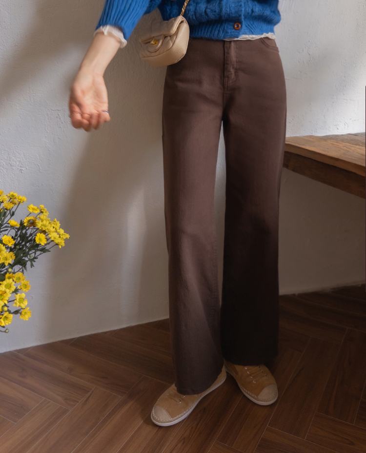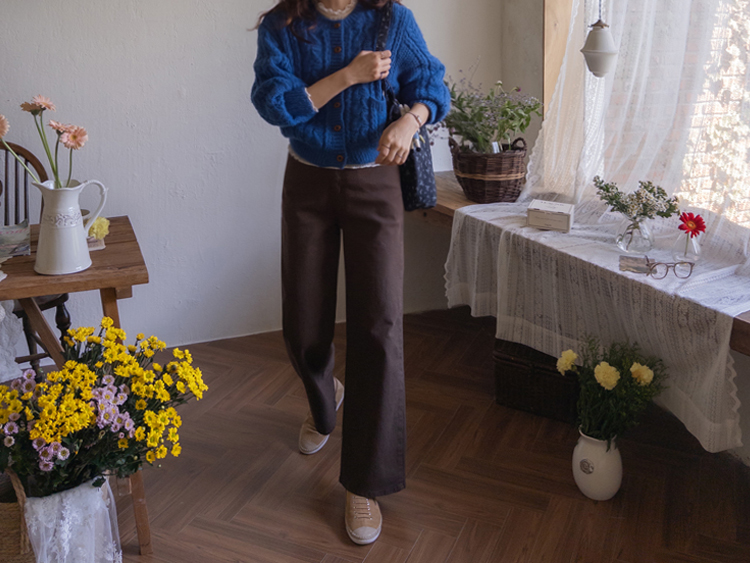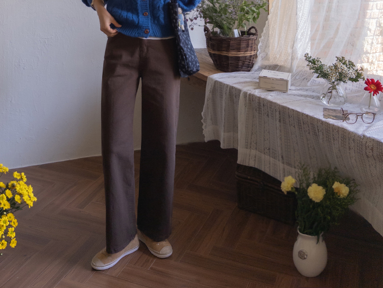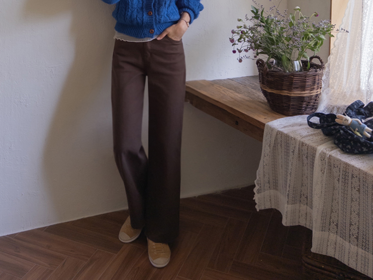 가을 시즌에 데일리로 즐기기 좋은 팬츠 소개드려요♥ 요 아이는 허리 라인은 잡아주면서 일자로 툭 떨어지는 세미와이드 스트레이트 핏으로 다리 군살을 완벽커버!! 해주는 팬츠인데요ㅎㅎ 쫀득~한 스판이 함유되어 있어 신축성이 좋아 착용감이 좋아요~ 허리 히든밴딩으로 장시간 부담없이 착용 가능해요ㅎㅎ 컬러는 가을 시즌 찰떡인 색상으로만 준비했으니까 취향에 맞게 굿초이스 하세요^^