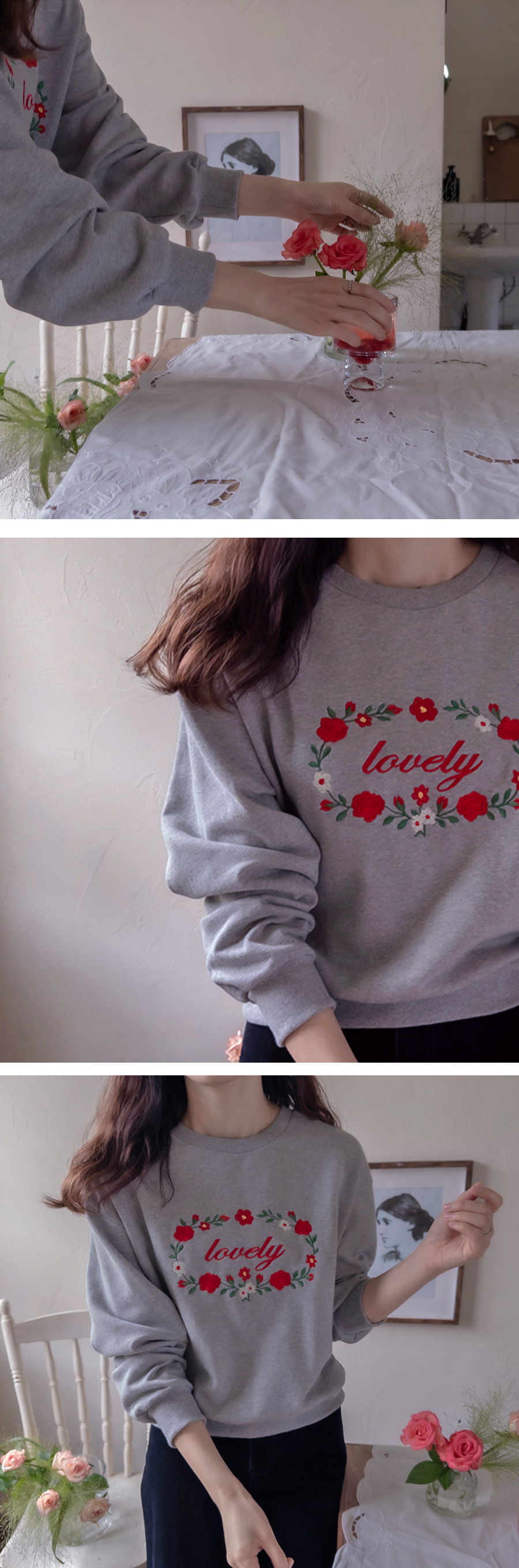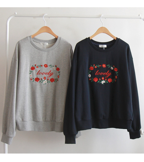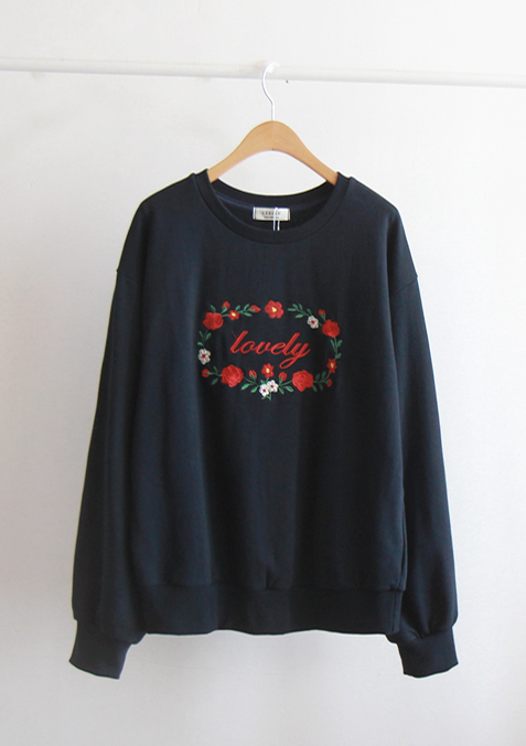 [Best Special Price 5,000 Won Discount] MADE LIN Eloi Flower Embroidery Man to Man [size: F (55~66)]