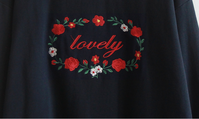 [Comfortable cotton material] [Stylish to wear during the autumn season with lettering embroidery and flower embroidery] [Practical item for daily wear] [Basic T-shirt with pretty embroidery] [Highly recommended as a comfortable T-shirt to wear often during the autumn season]