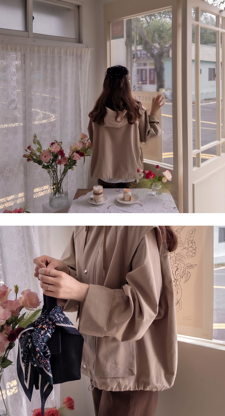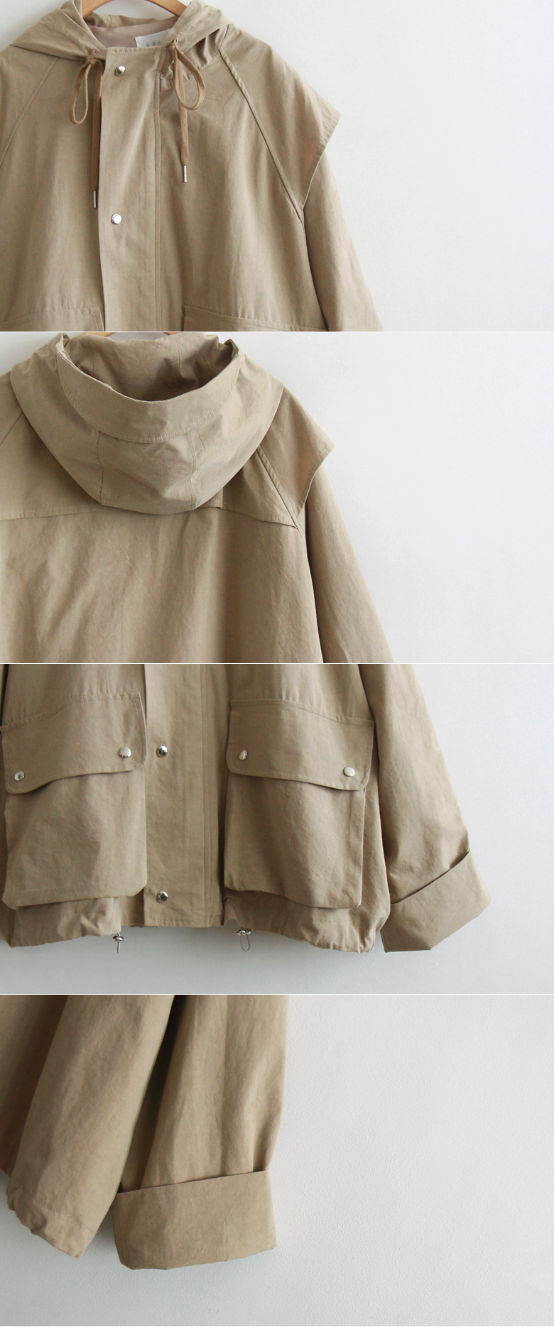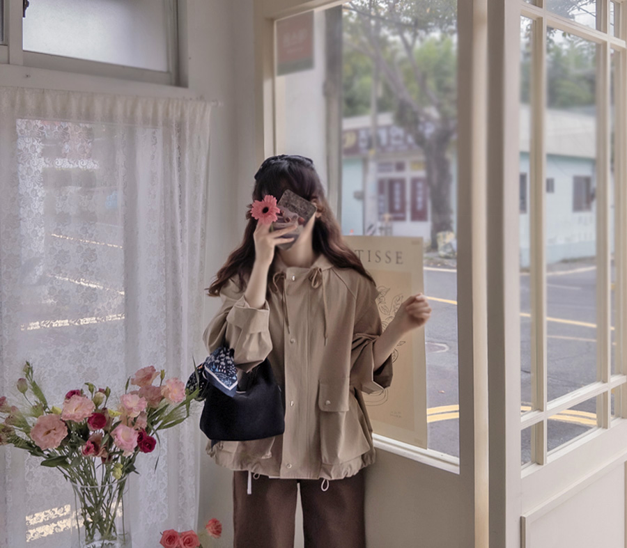 [Brand factory work luxury] [Firm and flexible fabric, loose fit outerwear, adjust the band string at the bottom to create a stylish fit] [Shoulder part accent creates a chic mood] [Pocket design creates a chic feel] [Hood configuration creates a cute mood by pulling the neck string]