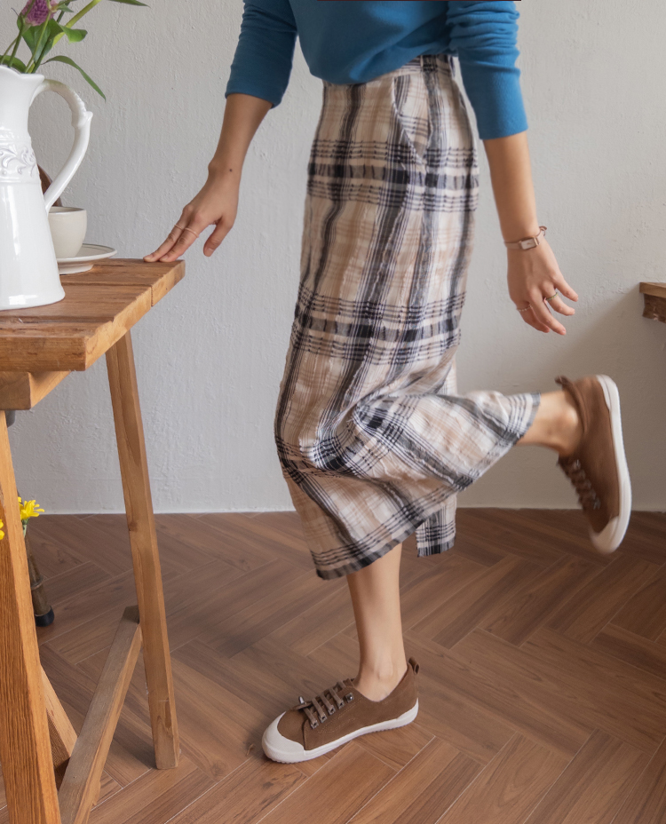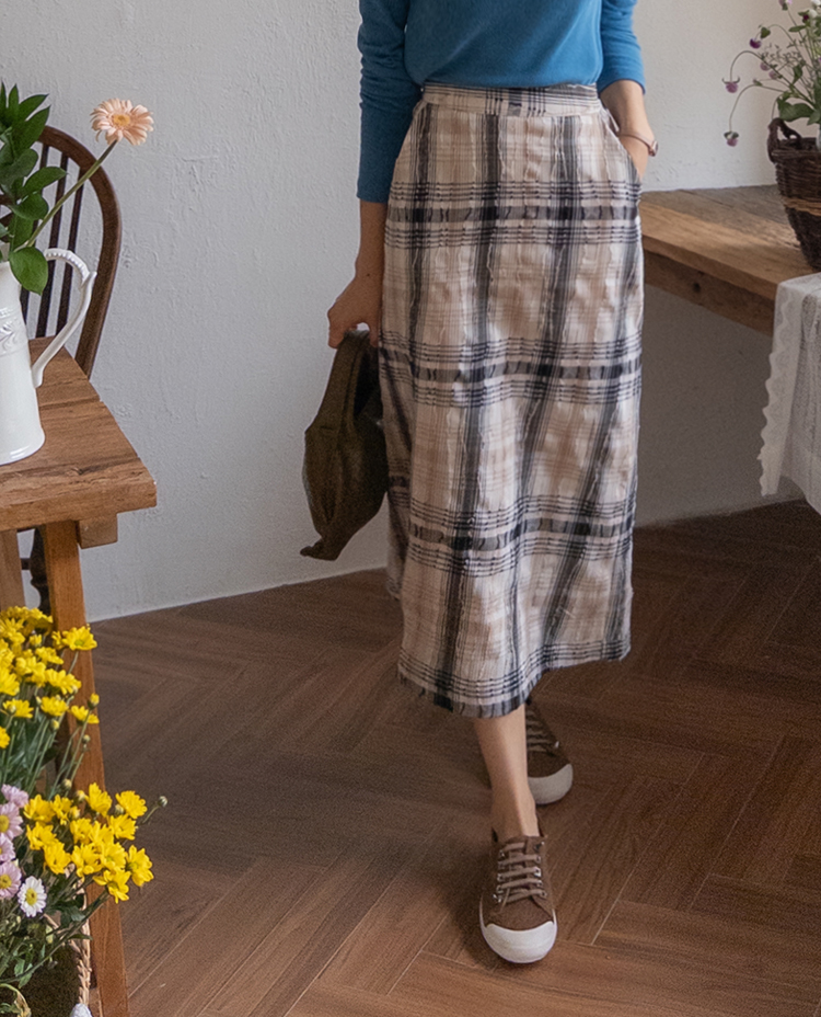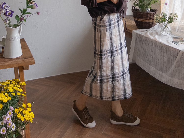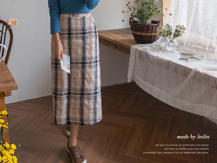 체크 패턴에 입체적이고 미니멀한 수술 디테일이 더해져 포인트 가득~한, 스타일리쉬한 룩을 완성시켜줄 LIN.MADE 스커트 보여드릴게요! 시중에 일반적인 체크 스커트는 많지만 이번 시즌에 리린에서는 더욱 특별한 체크로 준비를 해보았는데요ㅎㅎ 바탕은 체크 원단에 입체적인 미니멀 수술 디테일이 웨이브 쉐입으로 되어있어서 물결치듯~ 포인트가 되어주는 그런 스커트에요! 세로결로 되어있어서 다리가 길~어보이는 효과도 있구요 원단에서 포인트를 주었기 때문에 실루엣은 간결하고 담백한 H라인으로 제작해주어서 깔끔하니 넘 예쁘답니다>< 컬러는 블랙과 베이지가 믹스된 색상으로 준비했구요 밝은톤 또는 어두운 톤의 상의와 모두 잘 어울려서 정말 데일리로 활용도 높게 입기 좋으실거에요:) 허리 뒷밴딩 처리로 핏은 망가지지 않으면서도 편함까지 챙겨준 요 스커트! 꼬옥 소장해주세요~♡