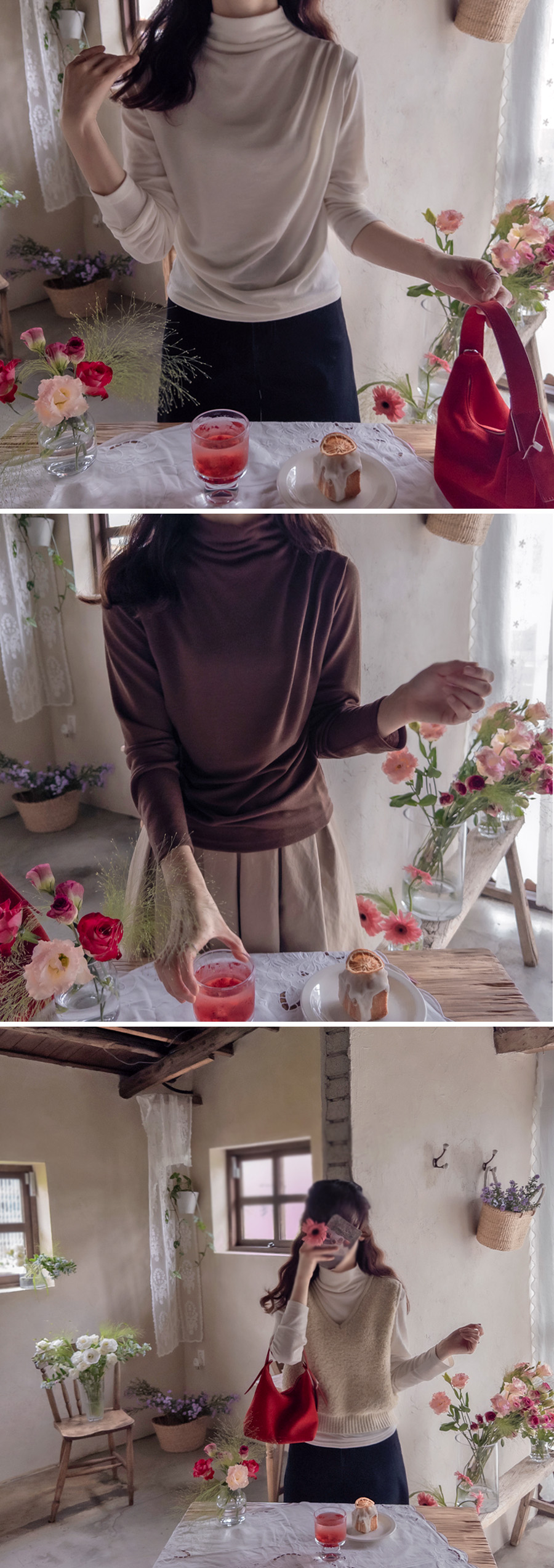 [Relatively soft and stretchy half-polar] [An item to prepare for the coming season] [The shoulder area has a wave-like shirring design that makes for a lovely look] [It's good to have in different colors] [Highly recommended as a half-polar that's great for fall]
