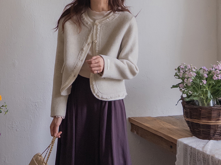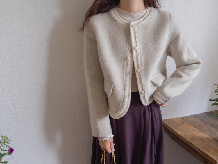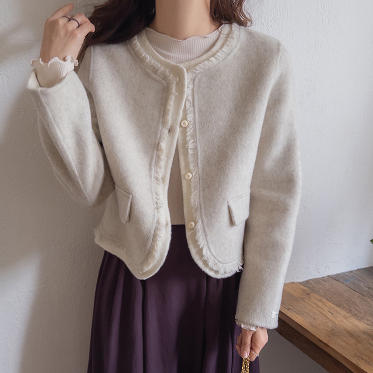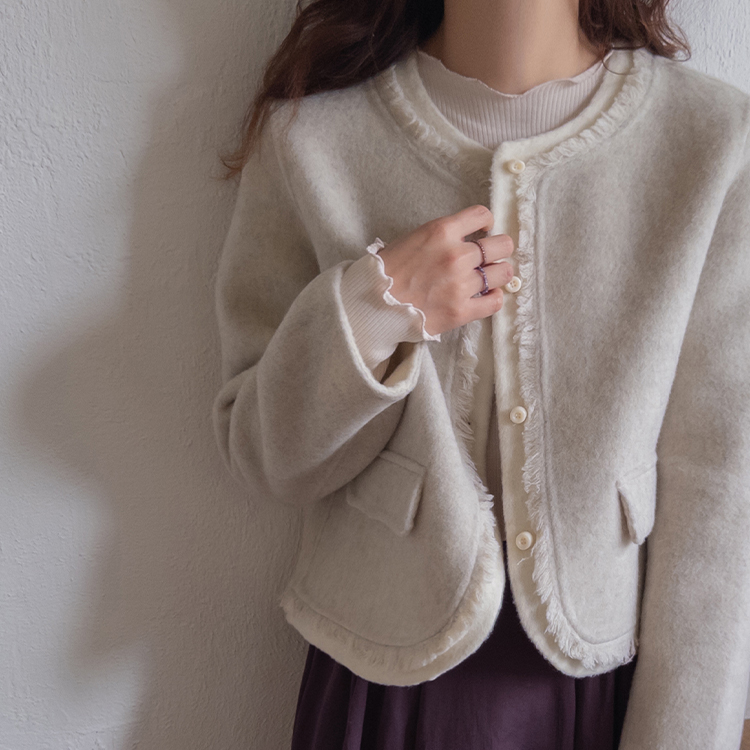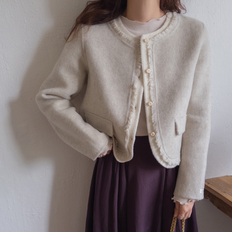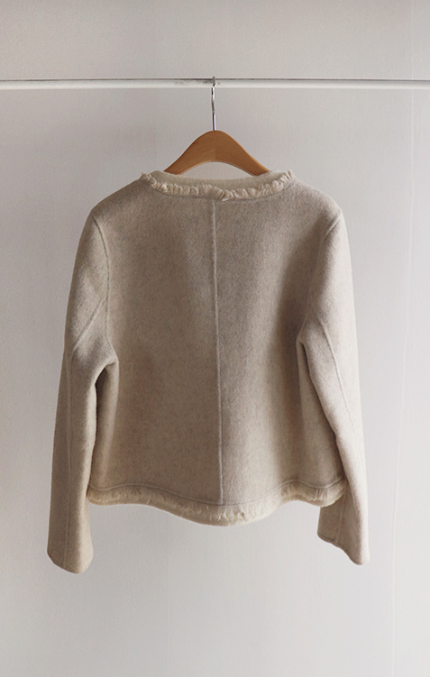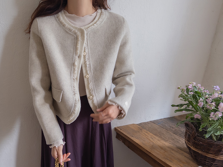 고급스러운 하이퀄리티로 실물보면 바로 반해버릴 핸드메이드 자켓이에요~ 울100% 소재로 탄탄함은 물론이고 보온성까지 탁월해 따스하게 입어져요♥ 마치 두겹을 입은듯한 레이어드 디자인에 수술 라인까지 더해 유니크한 매력까지! 노카라 넥라인으로 이너랑 매치하기도 쉬운~^^ 둥글게 마무리한 밑단 라인으로 영한 느낌도 놓치지 않아 캐쥬얼룩에도 찰떡같이 어울려요 버튼 또한 두께감이 느껴지는 독특한 쉐입이구요! 곳곳에 세련된 포인트들이 가득해 소장미 넘치는 자켓이랍니다~✨