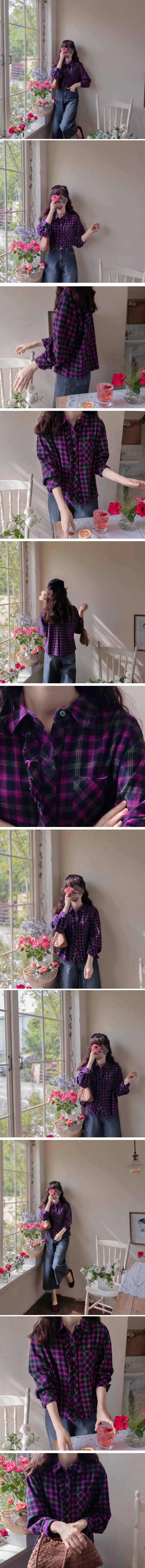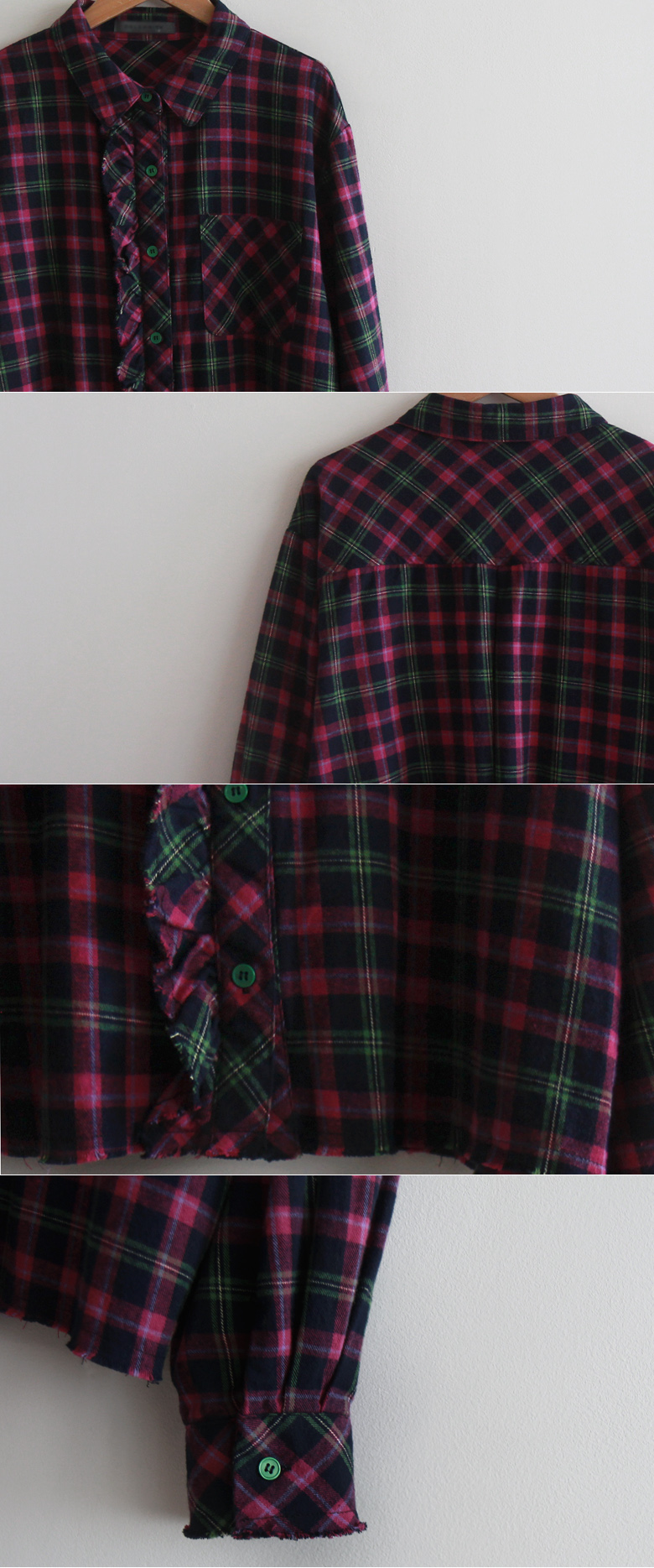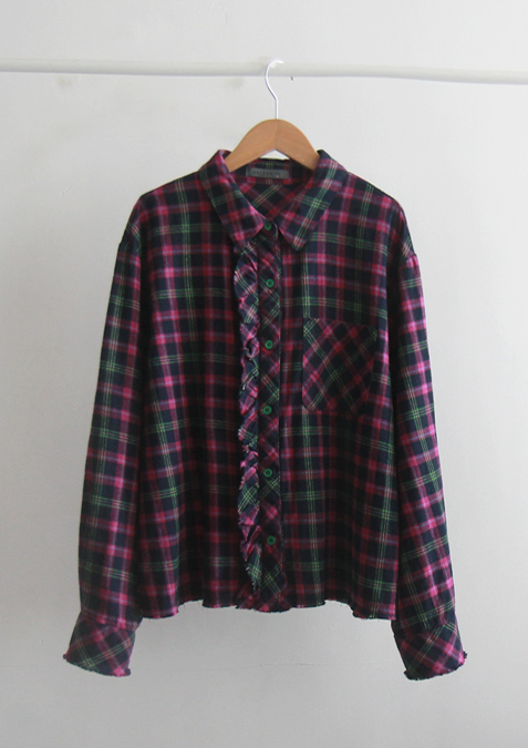 [Washing treatment] [The natural cut at the bottom is the point] [A vibrant blouse with a check pattern in a seasonal color] [A lovely mood created by the sharing] [Highly recommended as a chic daily check blouse in a fall-like color]