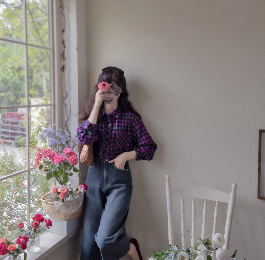 Deliven Sharing Point Autumn Check Sophisticated Blouse [size: F(55~66)]