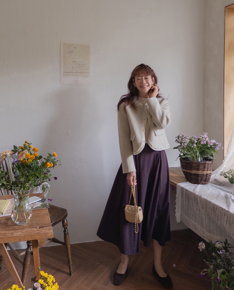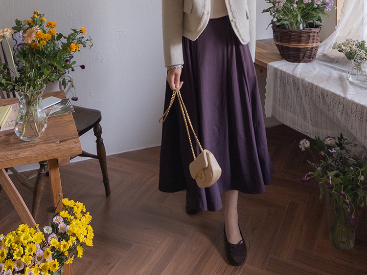 후들후들~한 소재에 가을느낌 낭낭한 컬러감으로 편하면서도 꾸민듯한 무드로 착용되는 LIN.MADE 스커트 보여드려요~! 요 스커트는 풍성한 플레어 실루엣에 일반적인 스커트같아 보이지만 은근한 디테일이 더해져서 하나 소장하시면 간절기시즌에 활용도 높은 아이템이라 사심 가득~담아 추천드리는데요ㅎㅎ 우선 부드러운 터치감이면서도 후들후들~한 소재감으로 가볍게 착용되는건 물론이구요 허리부분에 셔링과 핀턱이 들어가 있는데다 풍성한 훌라인 디자인까지 더해져서 착용하시면 여성미 가득한 아웃핏으로 연출된답니다*.* 플레어 디자인에 하늘한 소재감이 더해져서 걷거나 활동시에 더욱 여성스러움이 느껴져 아마 실제로 받아보시면 더욱 만족스러우실거에요:) 컬러도 가을무드 물씬 나는 두가지 컬러로 보여드리니 취향에 따라 초이스 해주세요~♡