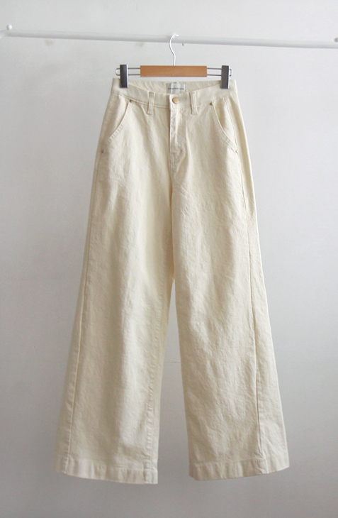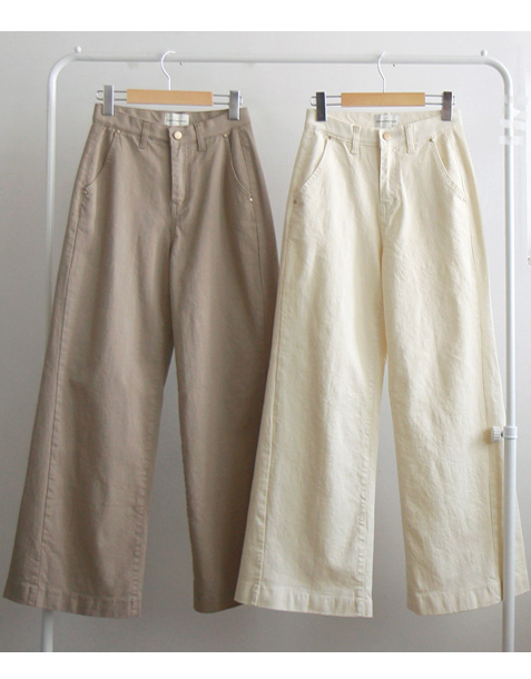 [A waist with a perfectly hidden band] [Pants with a semi-wide fit and a cut that is the focal point]. [Pants with a relatively soft fabric and a firm, stretchy feel] [Highly recommended as Autumn Pants with a comfortable, edge-fitting design] [Highly recommended as Autumn Pants with both a comfortable fit and a great design]
