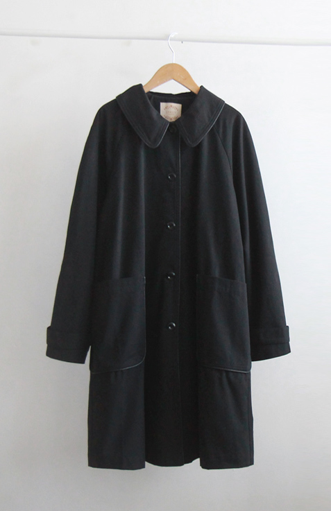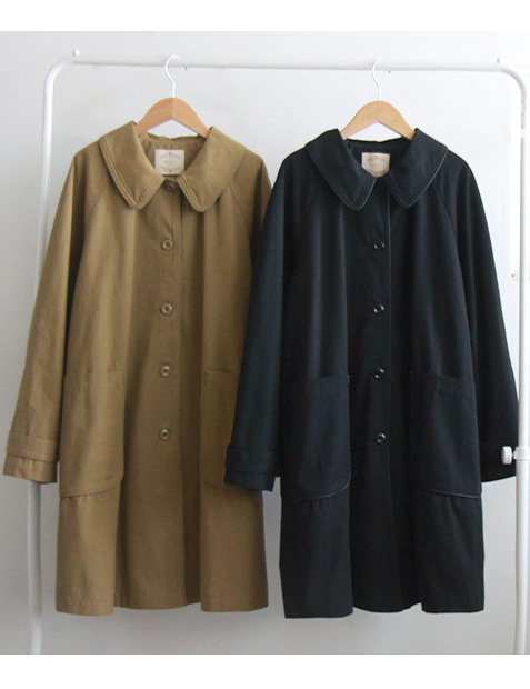 [A great outerwear for the coming season with a leather trimming round neck collar as a focal point] [A fall-like color scheme makes it perfect for wearing with an edge this season] [Together, we can create a highly complete outfit for you] [Highly recommended as a trench outerwear with a lovely collar]