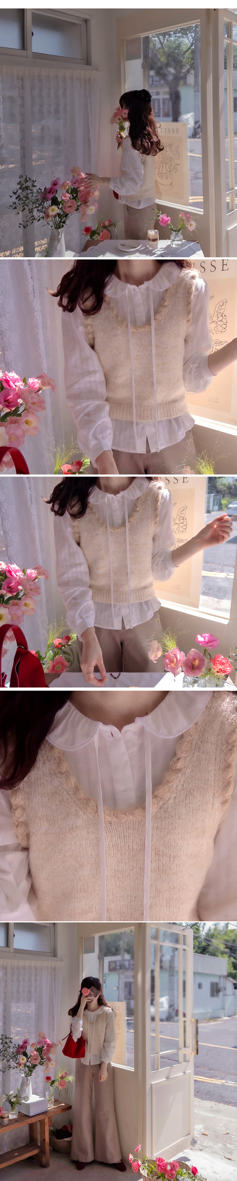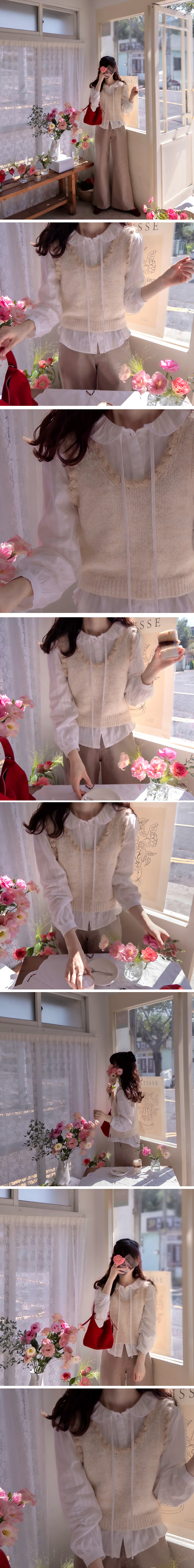 [Delicate three-dimensional wave-shaped neckline creates a lovely mood] [An item that will elevate your style for fall coordination] [Relatively soft and comfortable to wear] [It looks great when coordinated with a bocashi knit] [Highly recommended as a daily vest]