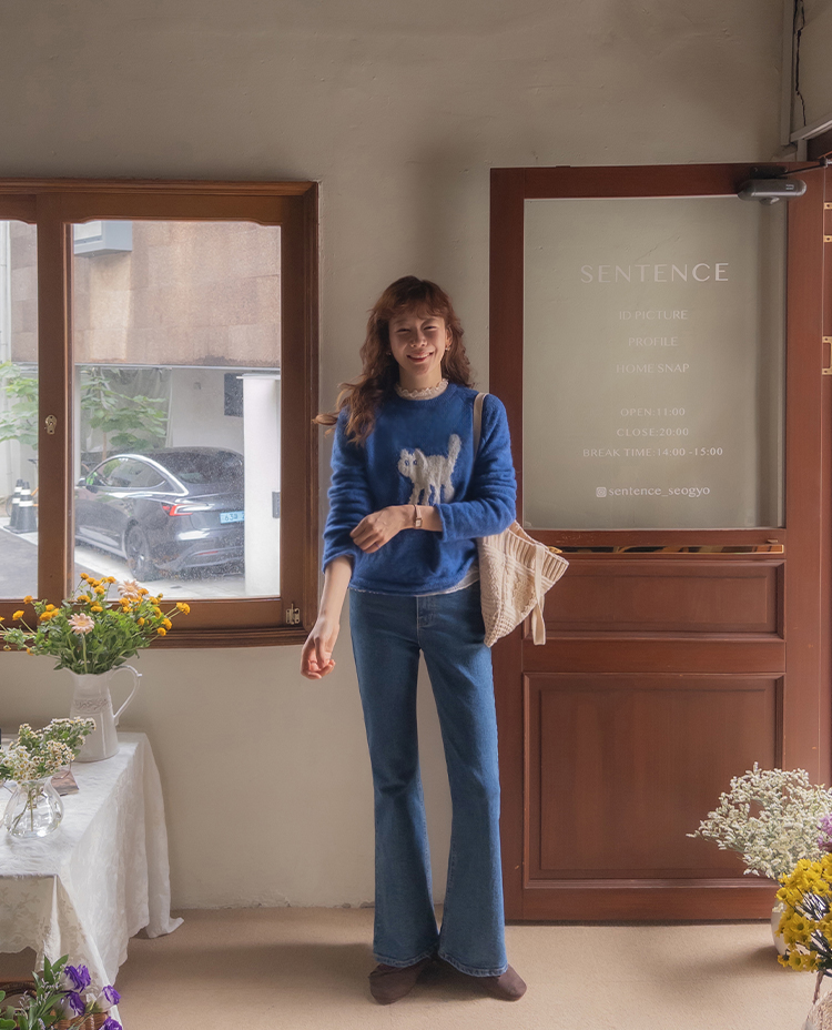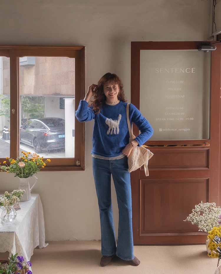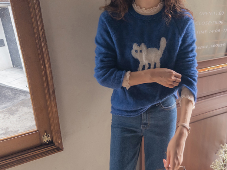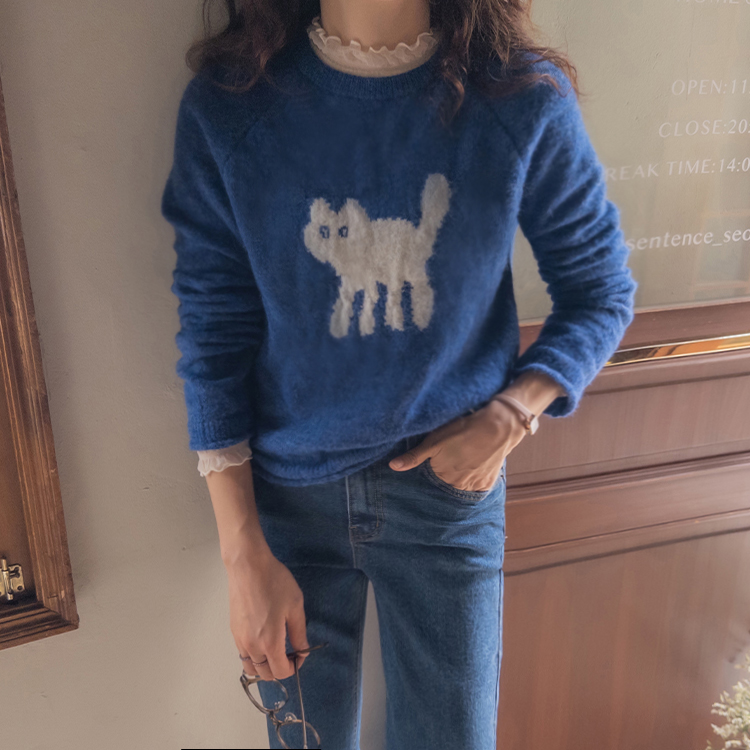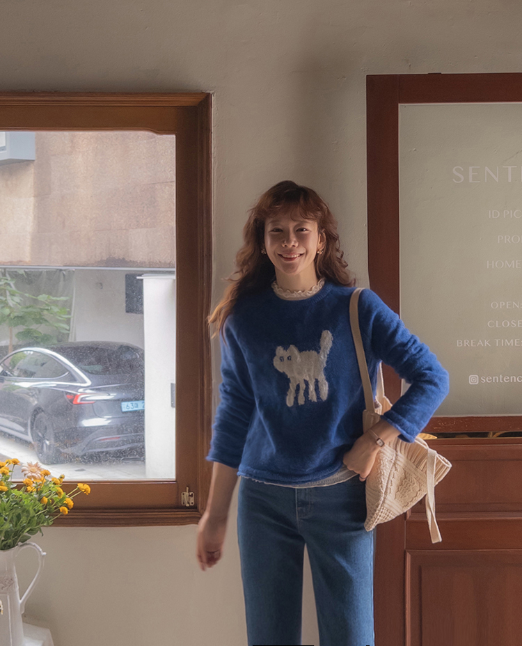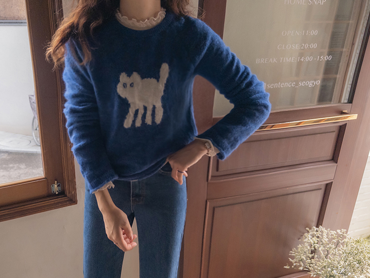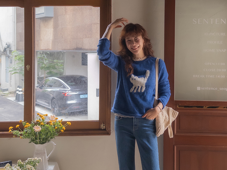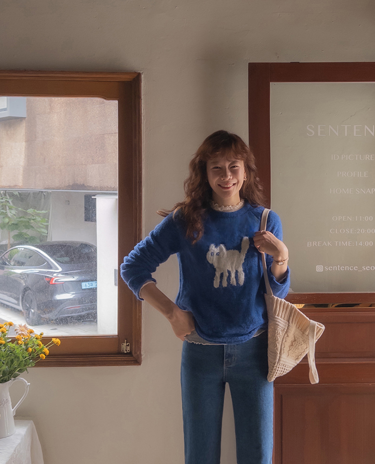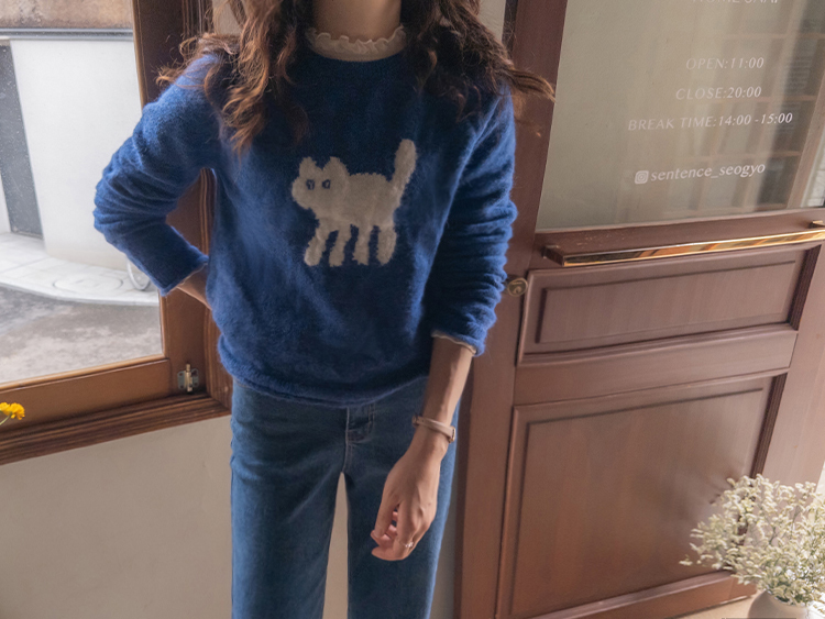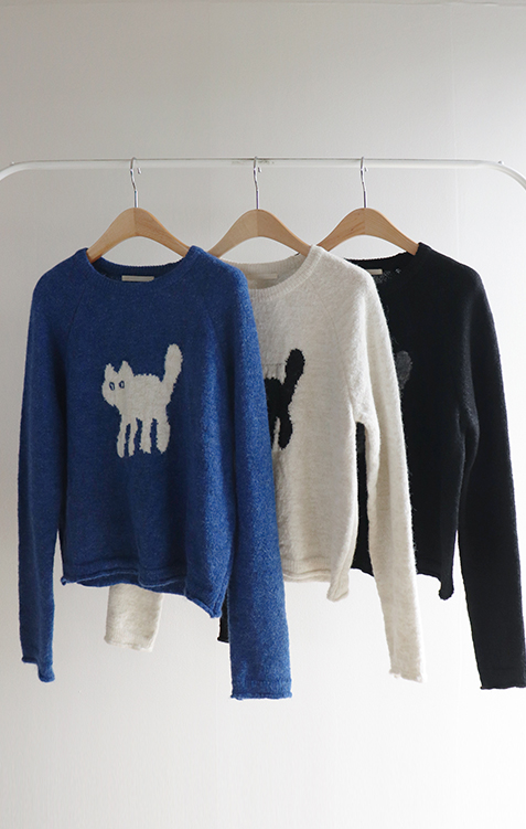 두껍지 않고 편안한 터치감에 한번, 귀여운 고양이^.^ 프린팅에 반하게 될! 데일리로 즐기기 좋은 니트 보여드려요~ 친환경적 리사이클 소재로 의미있고~ 끝단이 돌돌~말려 입는 순간 사랑스러움은 덤-! 컬러마다 다른 냥이 배색으로 다른 매력이 느껴지는 니트랍니다*.* 올 가을 & 겨울룩에 톡톡!한 포인트가 되어 줄 데일리템으로 강추 드려요~♥