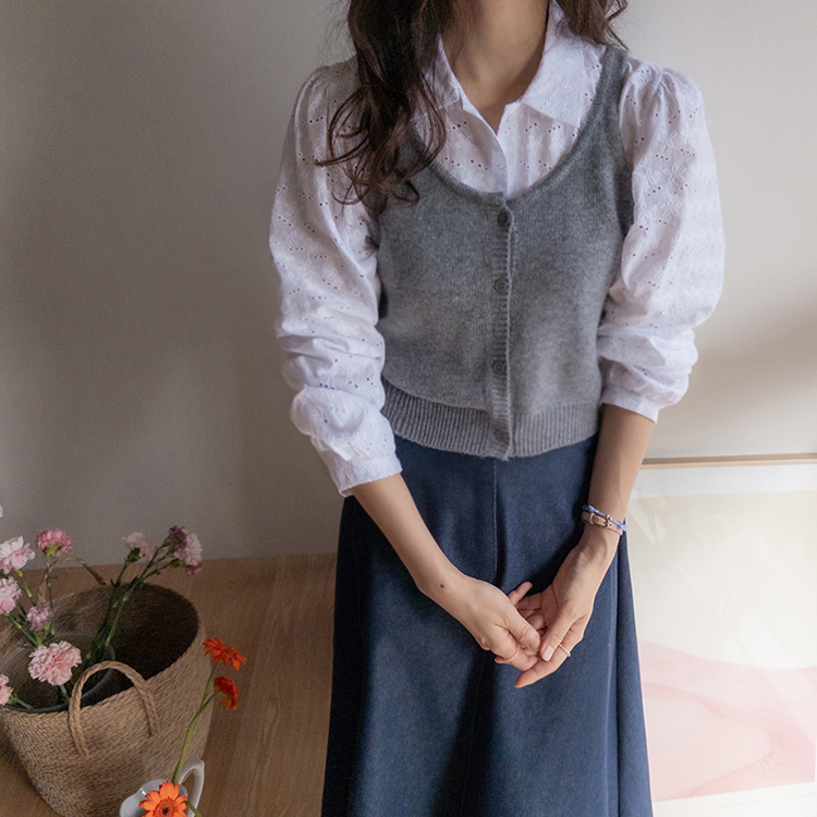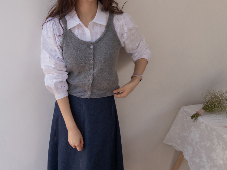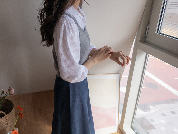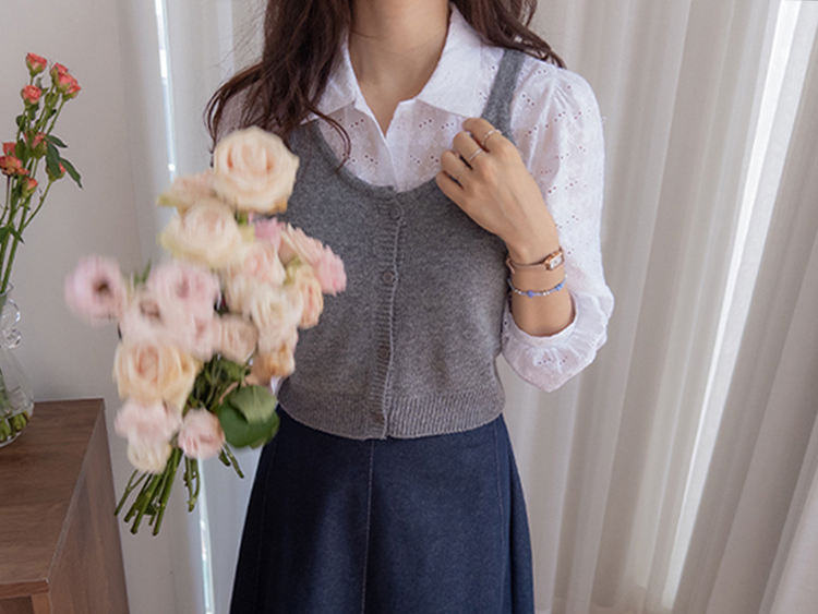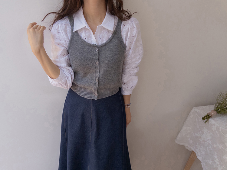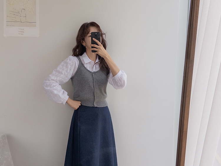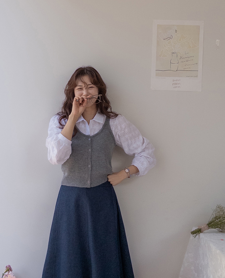 기본 룩도 요 뷔스티에와 함께 코디해주면~~ 더욱 사랑스러워지는 만능 레이어드템 소개드려요~♥ 휘뚤마뚤 입는 기본 티셔츠/기본 블라우스만 입기 심심하다면~ 요 뷔스티에 추천드려요 ^^ 버튼이 쪼르륵 있어 포인트있게 매치되어주구요 앞뒤 모두 착용 가능해서~ 버튼있는 쪽이 뒷부분으로 입어주어도 유니크하게 예쁘답니다 :) 넥라인과 암홀라인 랍빠를 통통하게 더해줘어 입체감있게 예쁜 디자인~^^ 여유있는 암홀 레이어드를 해도 불편함없이 GOOD!! 다양한 아이템과 함께 레이어드 해주세요~♥