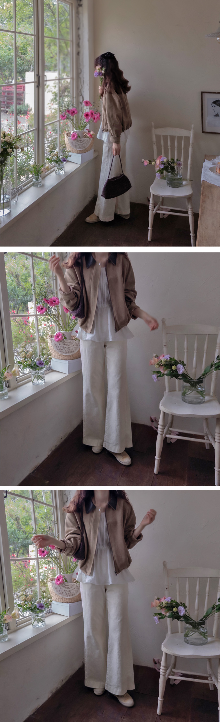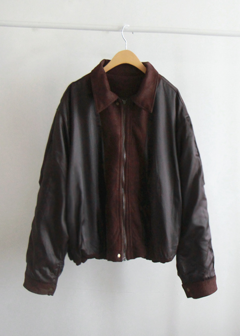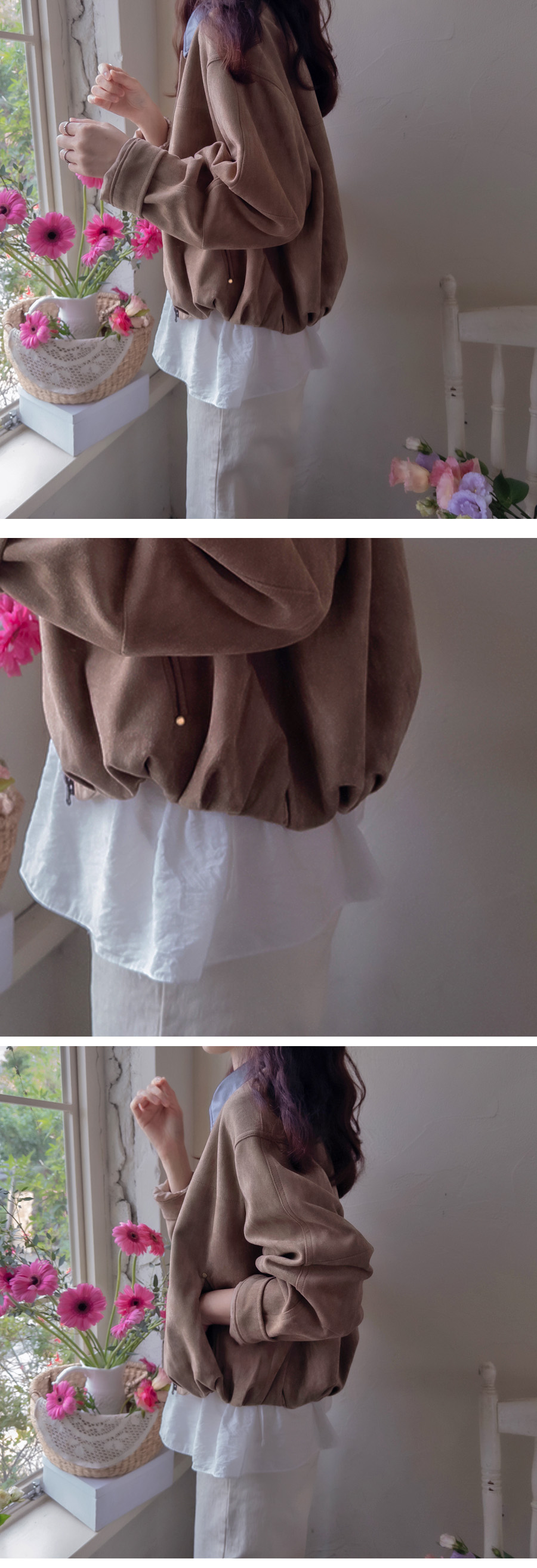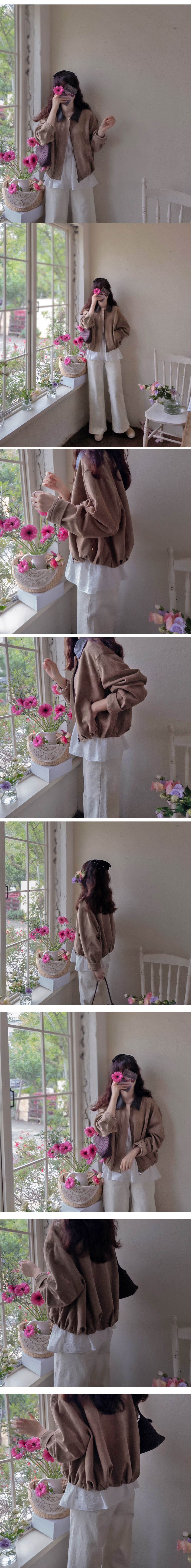 [Flexible, soft, and stretchy Suede Outer] [Lovely leather color-block collar is the focal point] [Jacket that is good to wear all season long with its matte fit] [Partial band treatment at the bottom creates a sophisticated look] [Simple, lively pocket design] [Easy zip-up design]