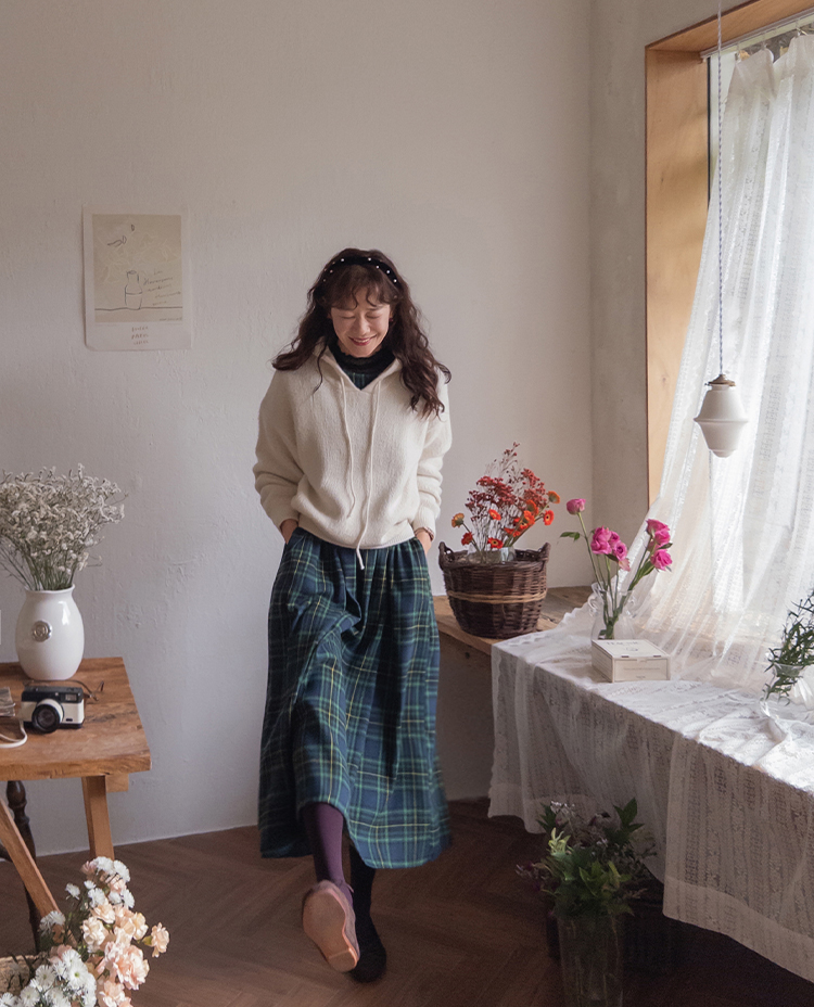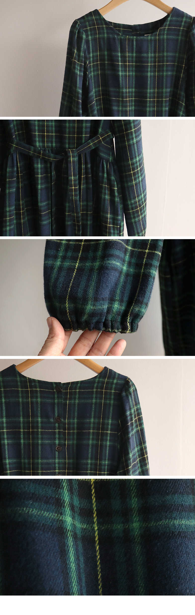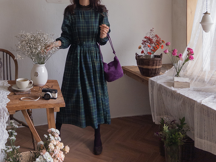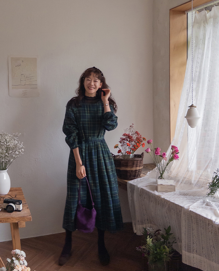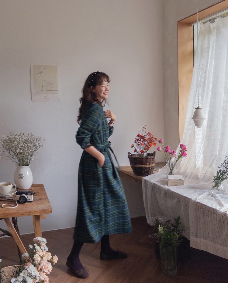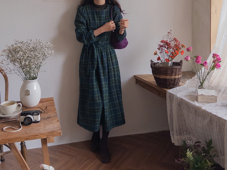 가을 시즌의 영원한 베스트 아이템 체크 패턴 원피스로 무드있는 하루를~:) 자연스럽게 퍼지는 핏과 롱한 기장감으로 미운 군살은 완벽하게 커버해주면서 여리한 무드가 물씬 풍겨요~ 등 부분의 버튼 디테일로 은은한 멋을 살려 스타일리쉬하게 마무리되구요! 동봉 되는 허리 스트랩으로 원하는 대로 쉐입을 연출할 수 있답니다:) 니트, 가디건, 자켓, 점퍼 등 다양한 아우터와도 찰떡 케미를 자랑해 다양하게 코디하기 좋아요!