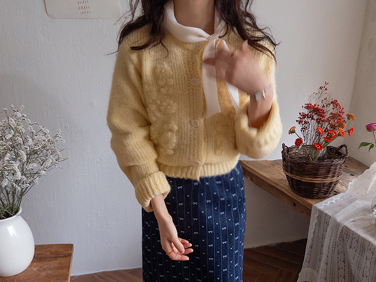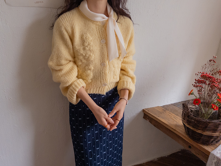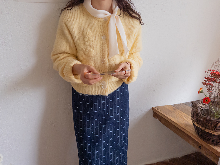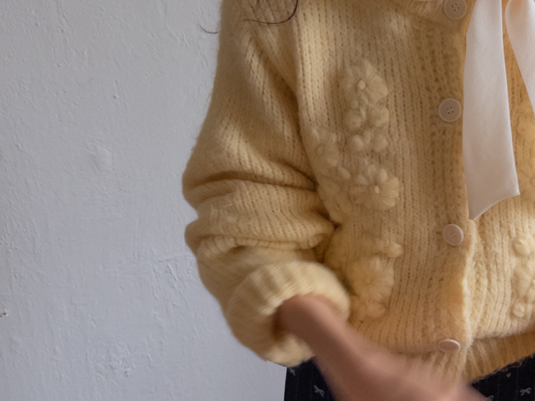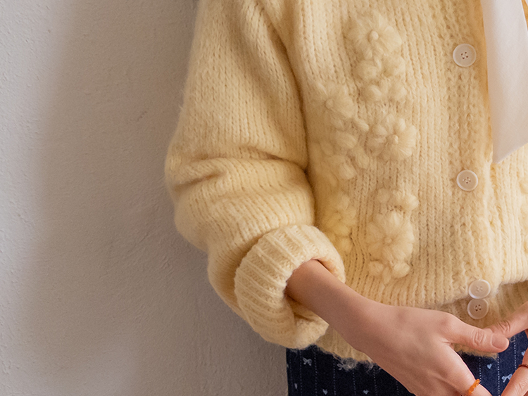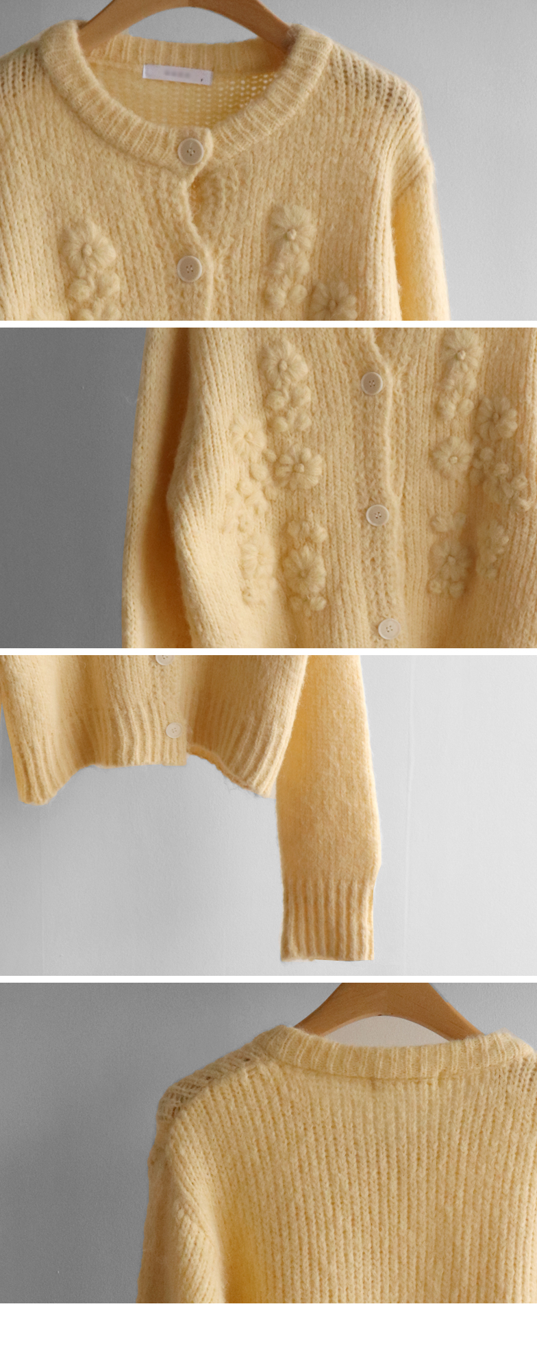 폭닥~폭닥~ 도톰한 두께감으로 바디를 부드럽게 감싸는 가디건 준비했어요! 울이 블렌딩된 소재로 입자마자 따스함이 느껴져 F/W시즌 내내 즐기기 좋은^^ 입체감이 느껴지는 플라워 디테일로 사랑스러운 매력이 한껏 살아나구요 적당히 여유로운 핏으로 편안하게 입어져요 받아보시면 분명 만족하실 가디건으로 서삼 둠쀽 담아 적극 추천드려요~♥