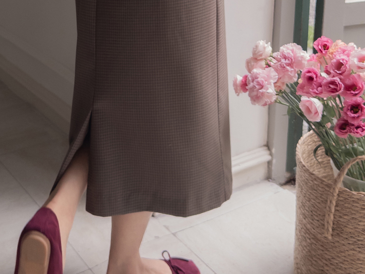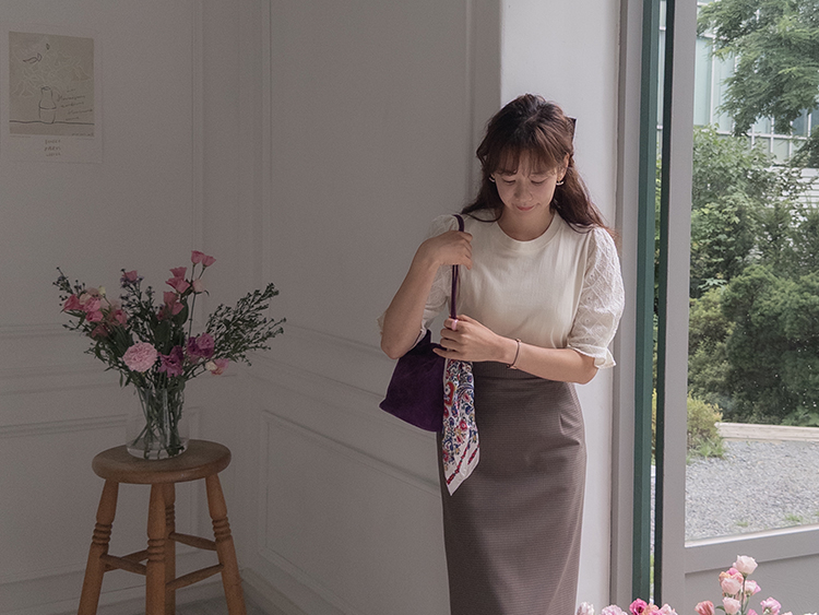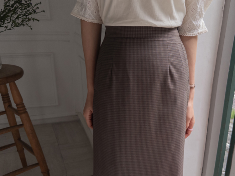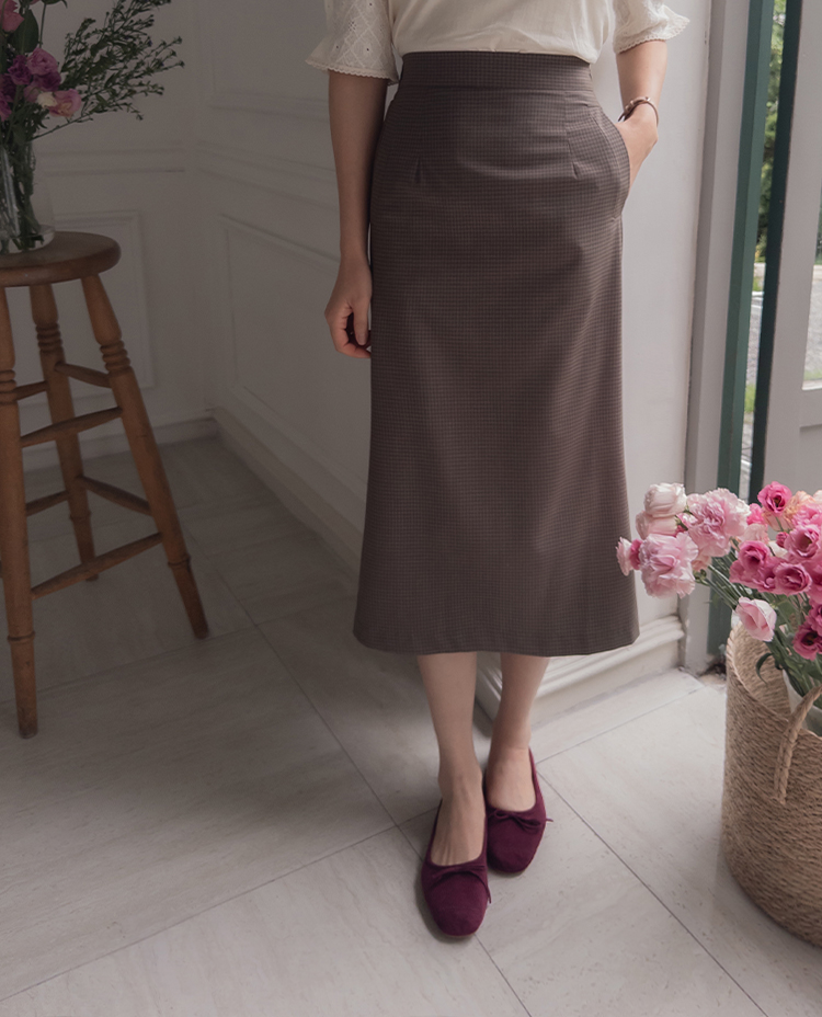 아침 저녁으로 선선해진 날씨에 가을이 슬쩍 느껴지는 요즘*.* 지금부터 가을까지 소장하시면 활용도 높게 입어질 스커트 보여드려요! 요 스커트는 잔잔한 체크패턴에 여러 컬러가 믹스된 브라운 베이스 컬러로 다가오는 시즌까지도 넘 예쁘게 입어질 스커트인데요:) 우선 H라인 실루엣으로 깔끔하면서도 성숙한 여성미가 돋보이는 아웃핏이구요 허리는 뒷밴딩으로 되어있고 밑단에는 슬릿 디테일이 있어서 편한 착용감이 되도록 신경써 주었어요ㅎㅎ 또한 프론트 사이드 부분에는 리얼 포켓 디테일이 있어서 손을 넣거나 간단한 소지품 수납까지 가능하도록 사소한 디테일까지 신경써 주었답니다! 부드러운 브라운 컬러감에 깔끔한 실루엣으로 블라우스나 가디건 등 다양한 아이템과 매치하기 좋아 사심 가득담아 추천드릴게요~!♡
