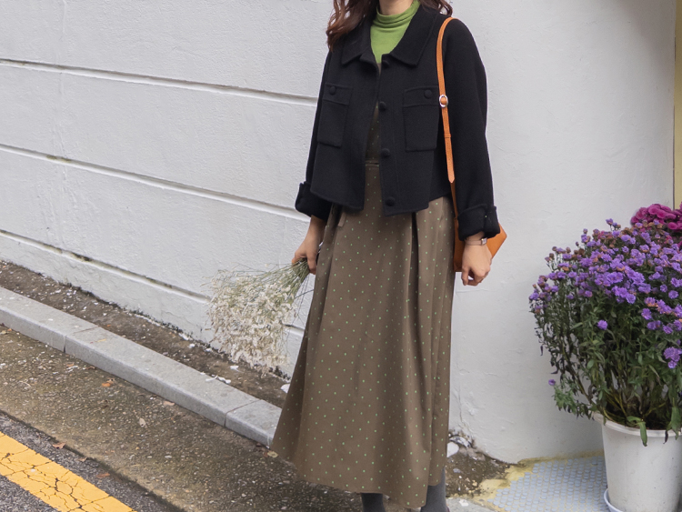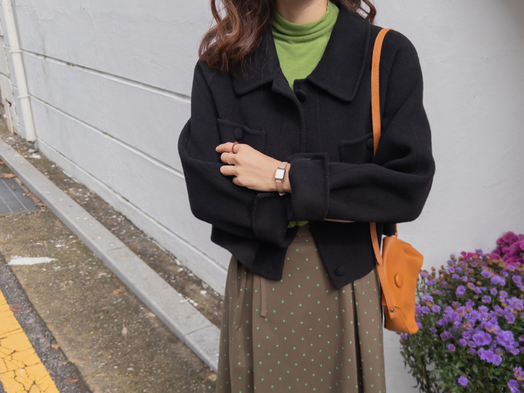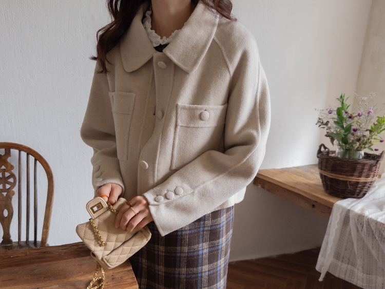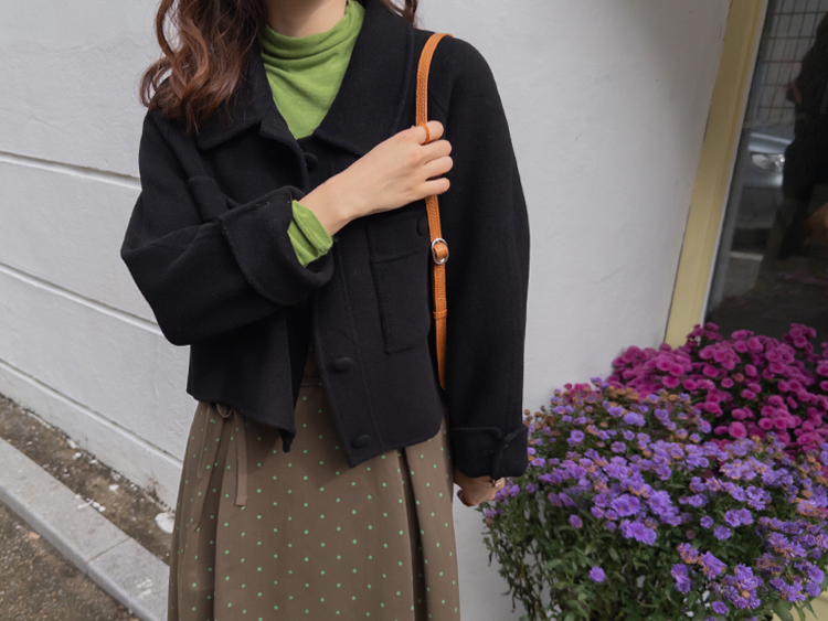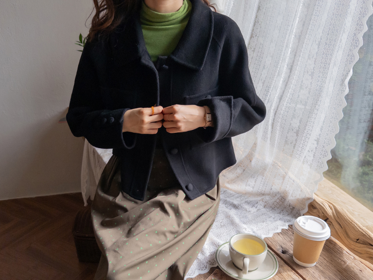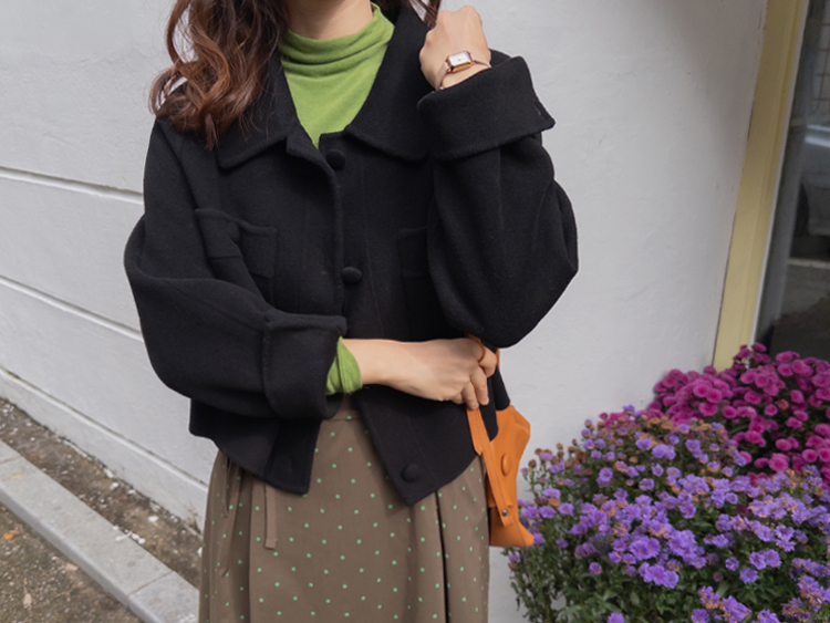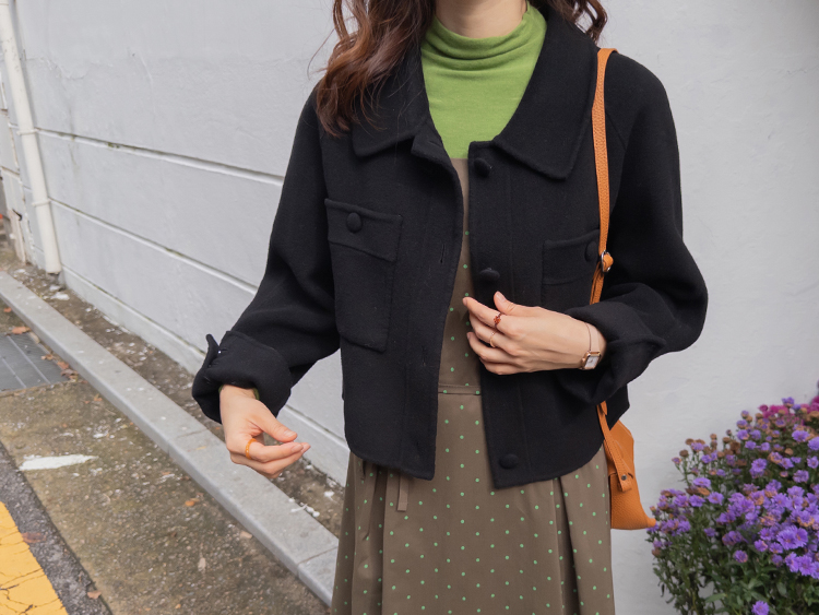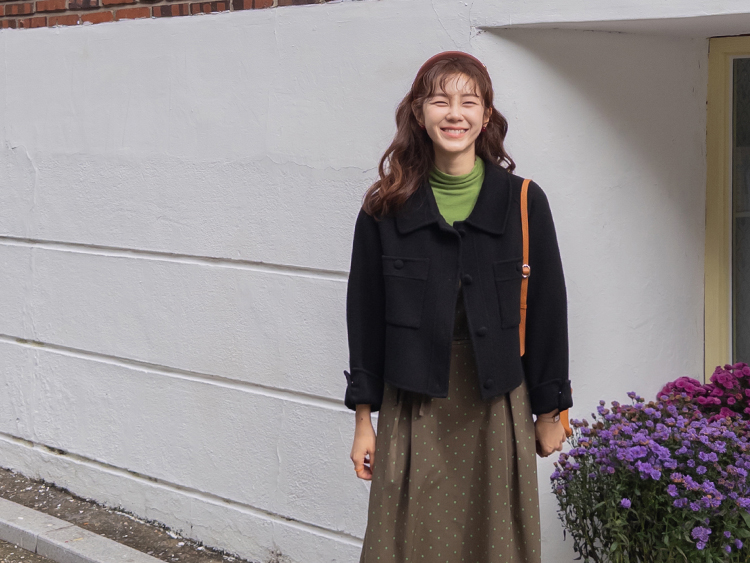 한 눈에 봐도 고급스러운~ 데일리 핸드메이드 코트 소개드려요 ^^ 둥글~둥글~ 라운드카라로 단정함과 러블리한 무드를 동시에 느끼게 해주는 센스있는 코트♥ 울 90%의 밀도 높은 원단으로 촘촘한 결과 따듯한 터치감으로 겨울까지 쭈욱~ 입기 좋아요 ^^ 핸드메이드 코트답게 두껍지 않은 두께감으로 겨울에도 편안하게 입기 좋구요~ 세미크롭한 기장감이 하체보안에도 좋아 여기~저기 코디하기 좋은 코디 효자템이랍니다 :) 굿초이스 해주세요~♥