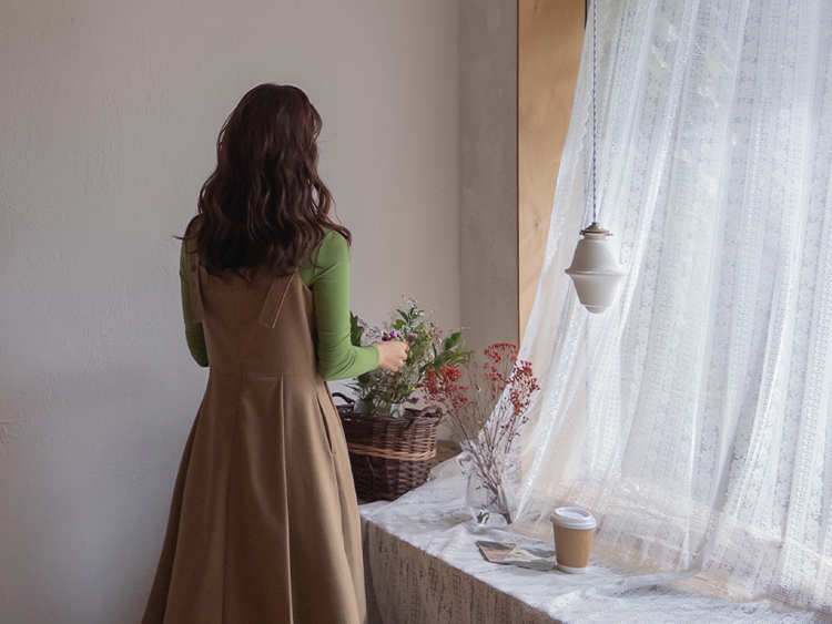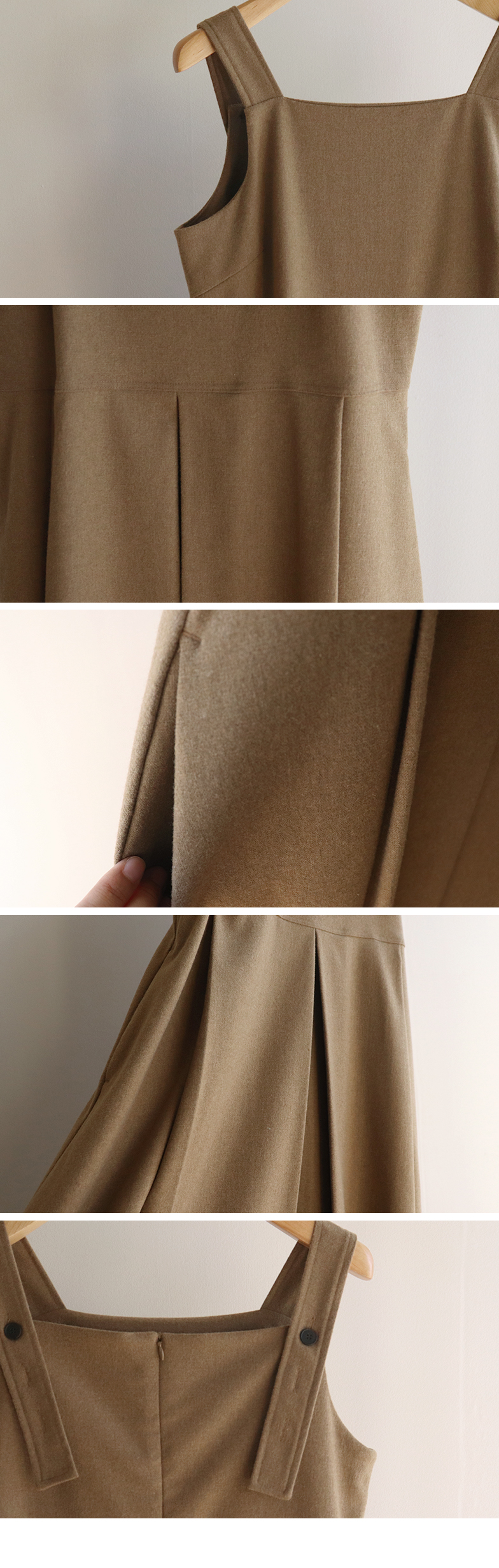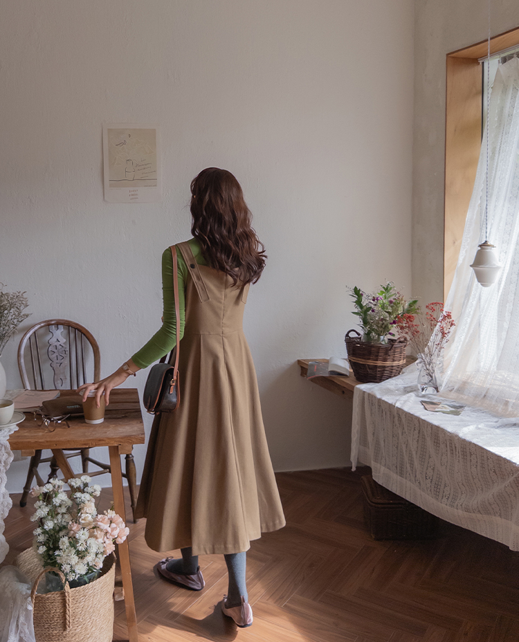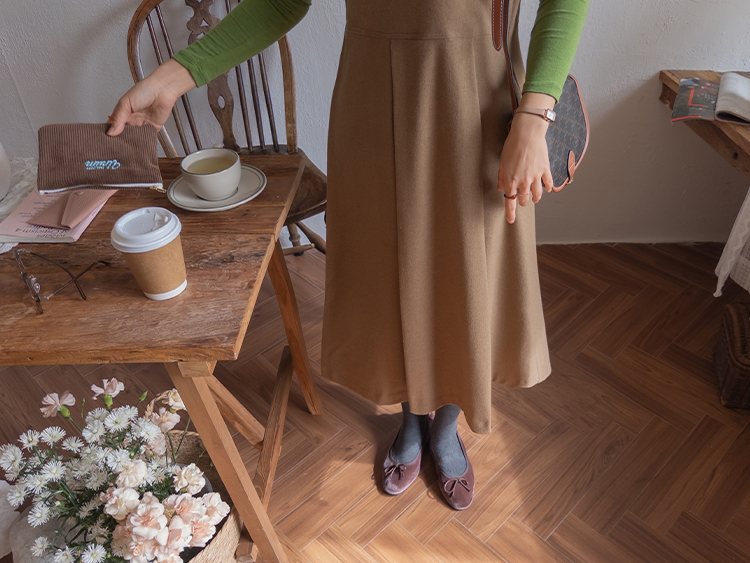 깔끔한 디자인인듯 보이지만 은근한 디테일이 더해진데다 퀄리티까지 챙겨준 LIN.MADE 원피스 보여드려요~ 요 원피스는 울이 30% 블랜딩되어서 톡톡한 소재감인데요 너무 두껍지 않아서 따듯하면서도 부드러운 실루엣이 돋보이구요 뷔스티에 디자인에 스커트 부분은 핀턱 디테일이 돋보이는 플레어 실루엣으로 여성스러운 무드가 물씬~느껴지는 그런 아이랍니다ㅎㅎ 특히 끈 형식의 뷔스티에 원피스인데 뒤쪽 끈은 버튼 홀을 여러개 뚫어주어서 원하시는 길이로 맞춰 착용이 가능한 부분이에요 요런 한끗차이의 세심한 디테일이 정말 중요한거 아시죠..! 핏 하나하나 완벽하도록 꼼꼼하게 수정을 거쳐 보여드리는만큼 소장하시면 절대 후회 없으실 그런 원피스..♡ 같이 코디하시는 이너에 따라서 다양하게 코디가 가능해 간절기부터 겨울시즌까지 두루두루 즐기기 좋으실거에요! 조금 얇은 이너와는 가을시즌에, 도톰하고 따수운 이너와 매치해주시면 겨울까지도 다양한 자리에 스타일링하기 좋은 원피스라 사심 듬뿍 담아서 추천드려 볼게요~!