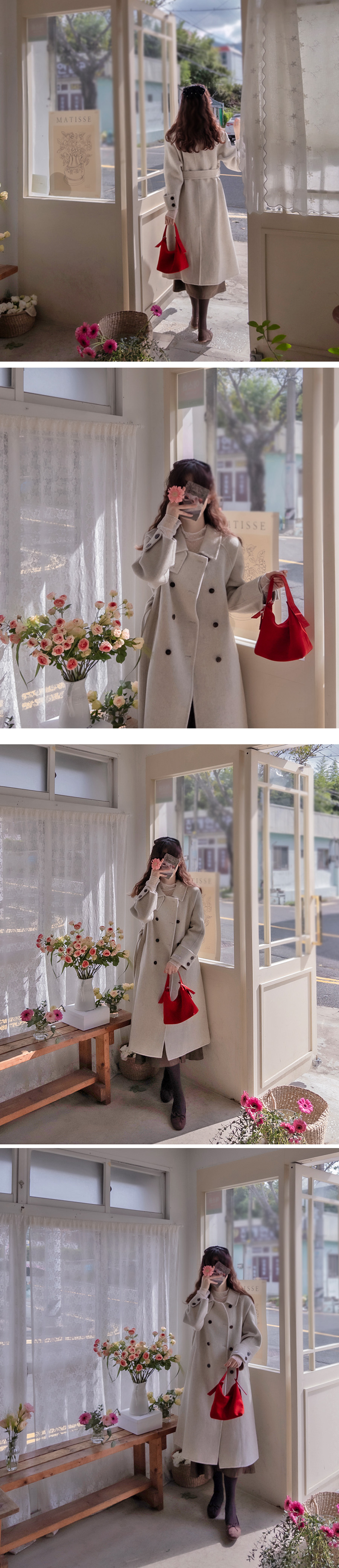따스함 이랍니다~ 길이감 있지만 전혀 거추장 스러움 없이 칼바람을 막아줄 코트였답니다~ 색감도 기본으로 다 너무 이뻐요 어떤 컬러를 하셔도 좋아요~ 사이즈 55-66까지 좋구요~ 나그랑 소매로~ 어깨선이 주는 갑갑함이나 불편함 없이 자연스럽고 편안하게 떨어지는 어깨 라인이 여리한 핏으로` 저는 이 부분도 너무 맘에 들었어요~ 개인적으로 너무 맘에 들어서 당장 옷장으로 모시고 온 아이! 놓치지 마세요 진심 사심을 담뿍이 담아 강추 강추 드려요~^^