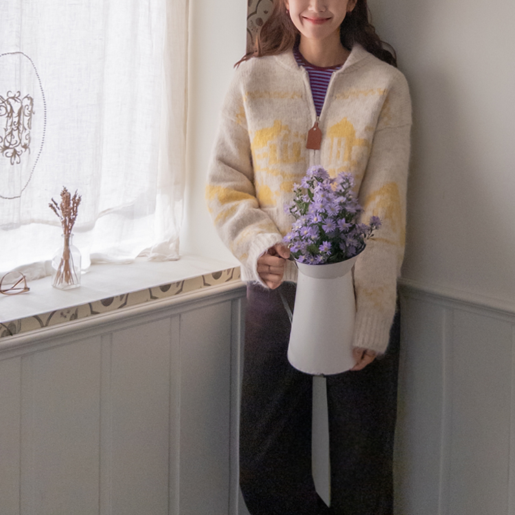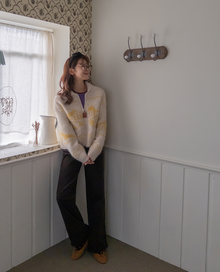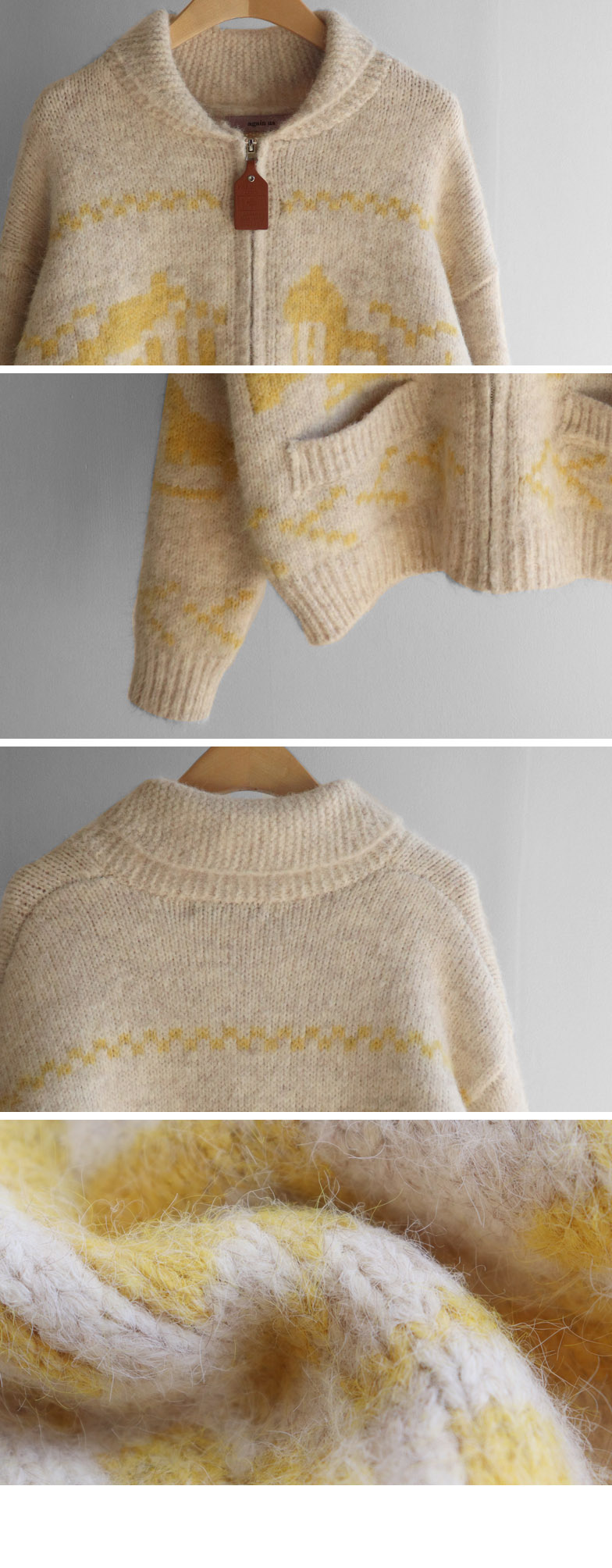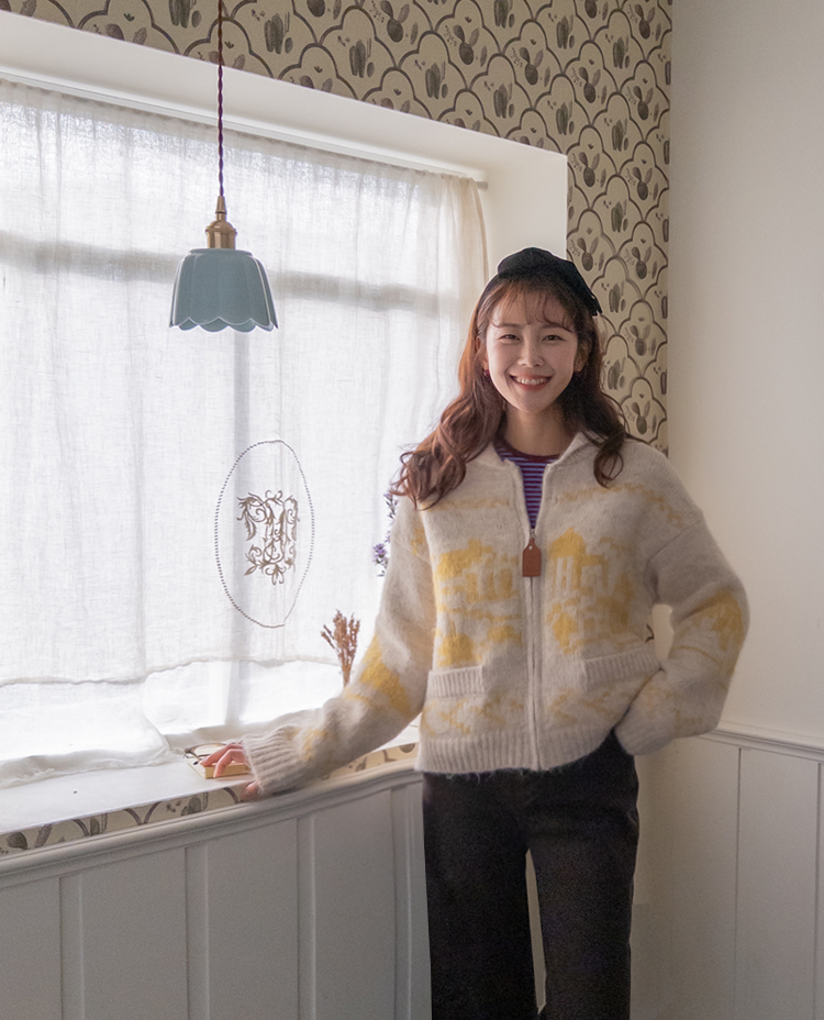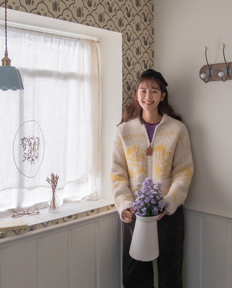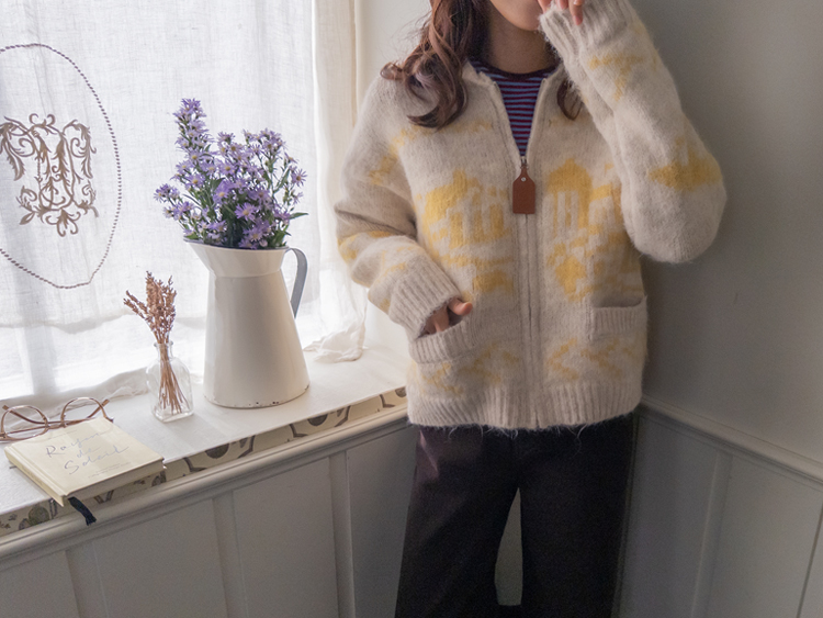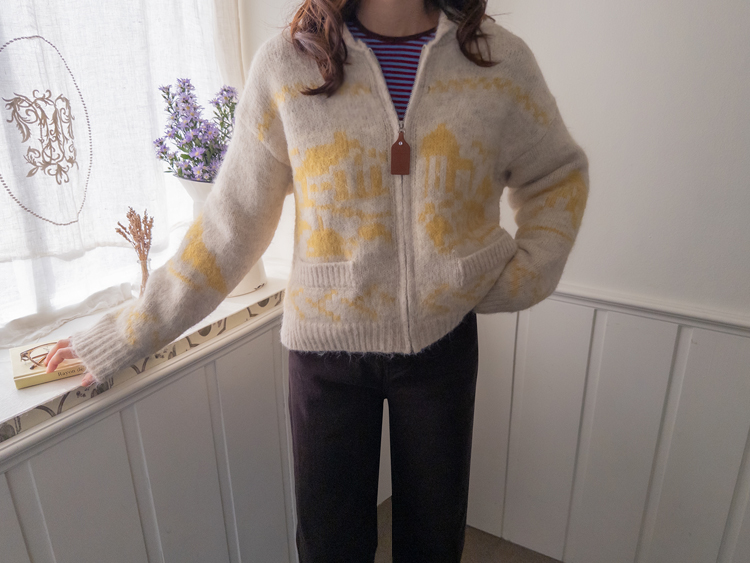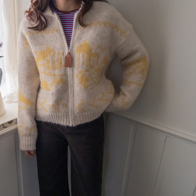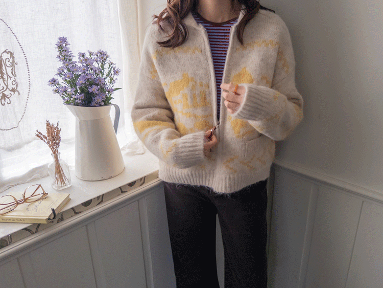포근한~ 울 가디건이에요♥ 멋스럽게 짜여진 패턴이 포인트가 되구요~ 집업 스타일의 가디건으로 여밈을 편안하게~ 앞면 지퍼 부분의 레더 택 디테일이 고급스러움UP!! 울이 함유되어 있어 더욱 따뜻하게~ 앞 포켓 디자인으로 실용성GOOD 소매 끝단과 시보리가 짱짱해서 안정감있게 잡아주어요ㅎㅎ