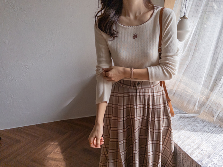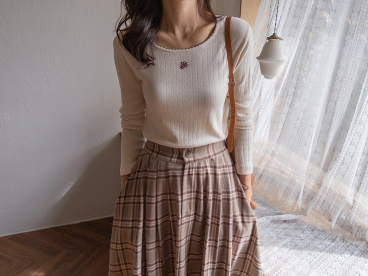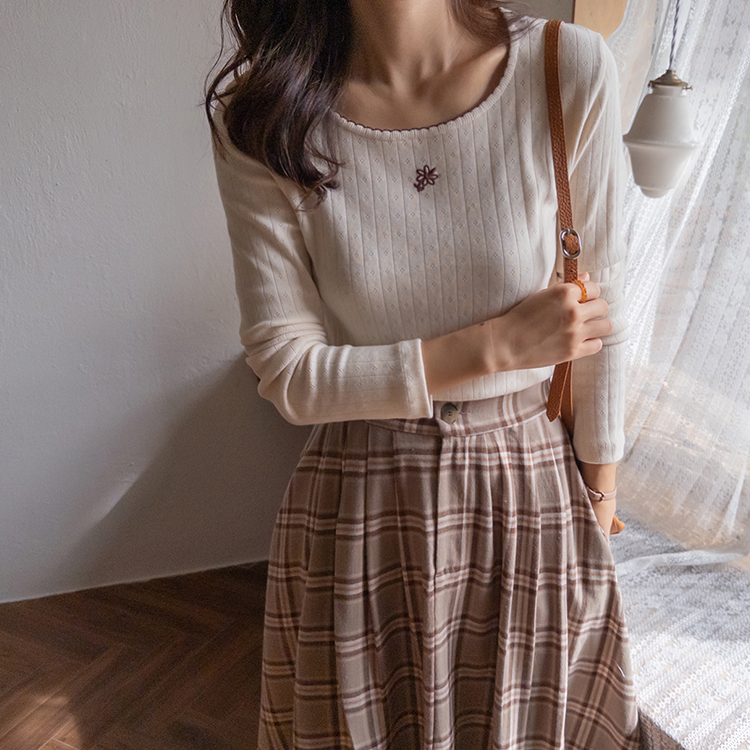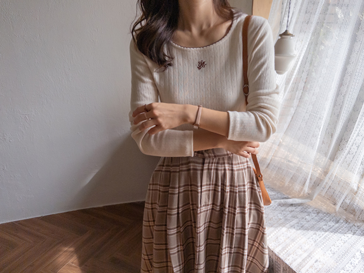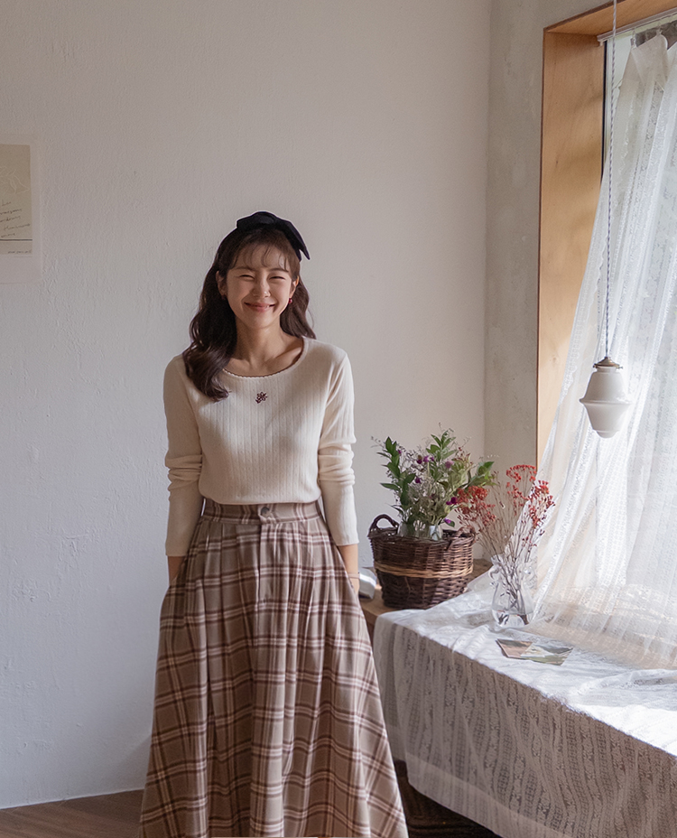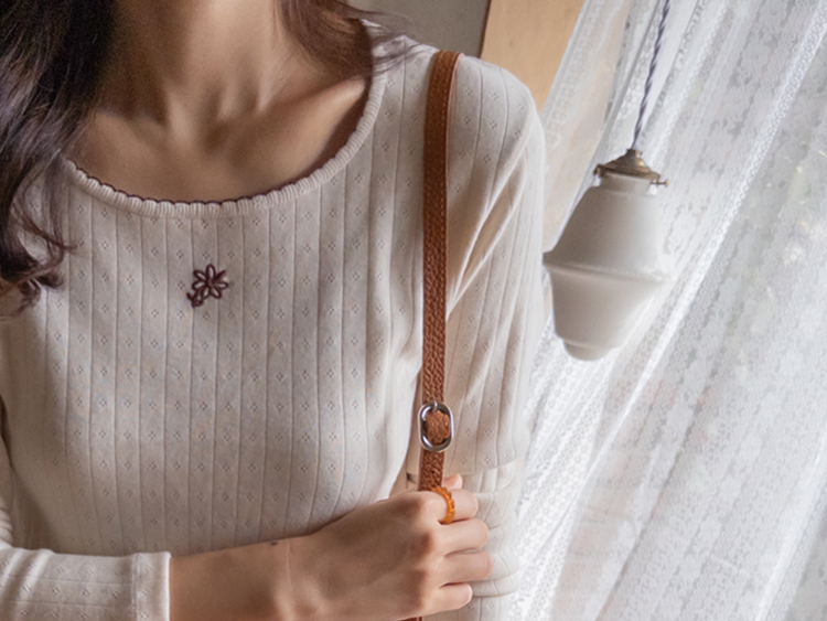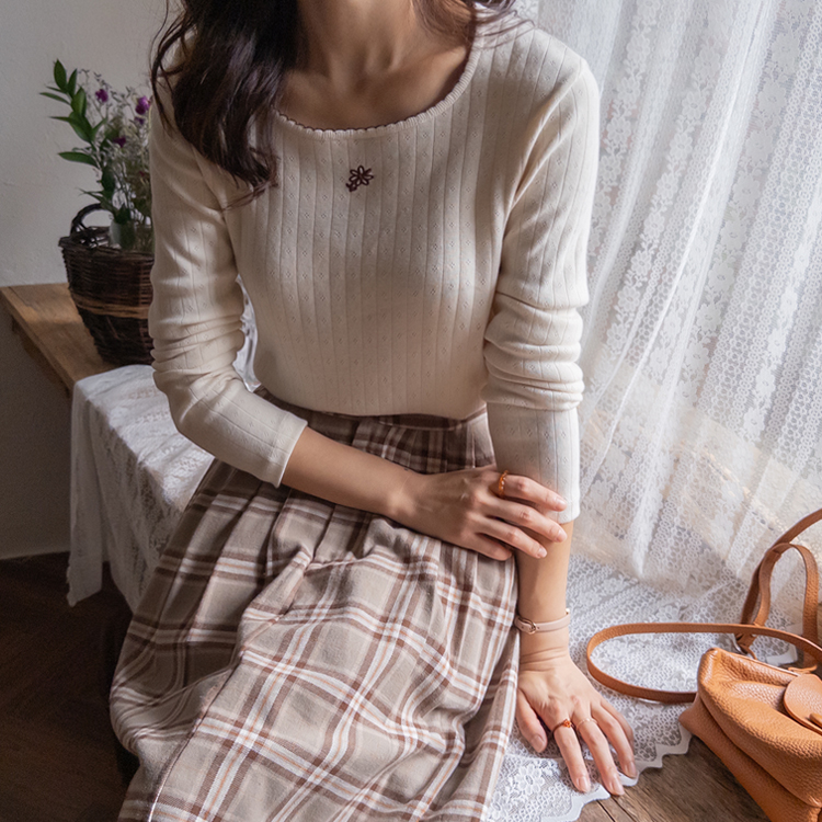짱짱~하게 늘어나는 신축성 좋은 펀칭 원단에 넥부분 배색 트리밍으로 포인트를 주어 기본인듯~ 디테일을 살려준 티셔츠 보여드릴게요~! 요런 긴팔 티셔츠는 하나 소장하시면 시즌리스하게 단독&이너로 활용도 높게 입기 좋은 아이템인데요ㅎㅎ 미니멀한 펀칭이 들어가 있어서 은근한 사랑스러움이 느껴지는 골지 원단에 세로결 골지 라인으로 상체라인이 전체적으로 늘씬해 보이는 효과까지 있답니다~ 게다가 요 아이의 포인트! 바로 넥 배색 디테일인데요~ 넥라인에 물결 쉐입으로 트리밍을 더해주었구요 넥 아래부분에 플라워 자수를 더해주어서 밋밋하지 않고 포인트가 되도록 만들어 주었어요*.* 스탠다드한 실루엣으로 데일리 티셔츠로도 좋구요 기본 티셔츠처럼 매일 입기 좋지만 무언가 포인트가 있는 아이 찾으셨다면 강추! 컬러도 크림, 블랙 두가지로 보여드리니 취향에 따라 초이스 해주셔서 예쁘게 즐겨주세요~♡