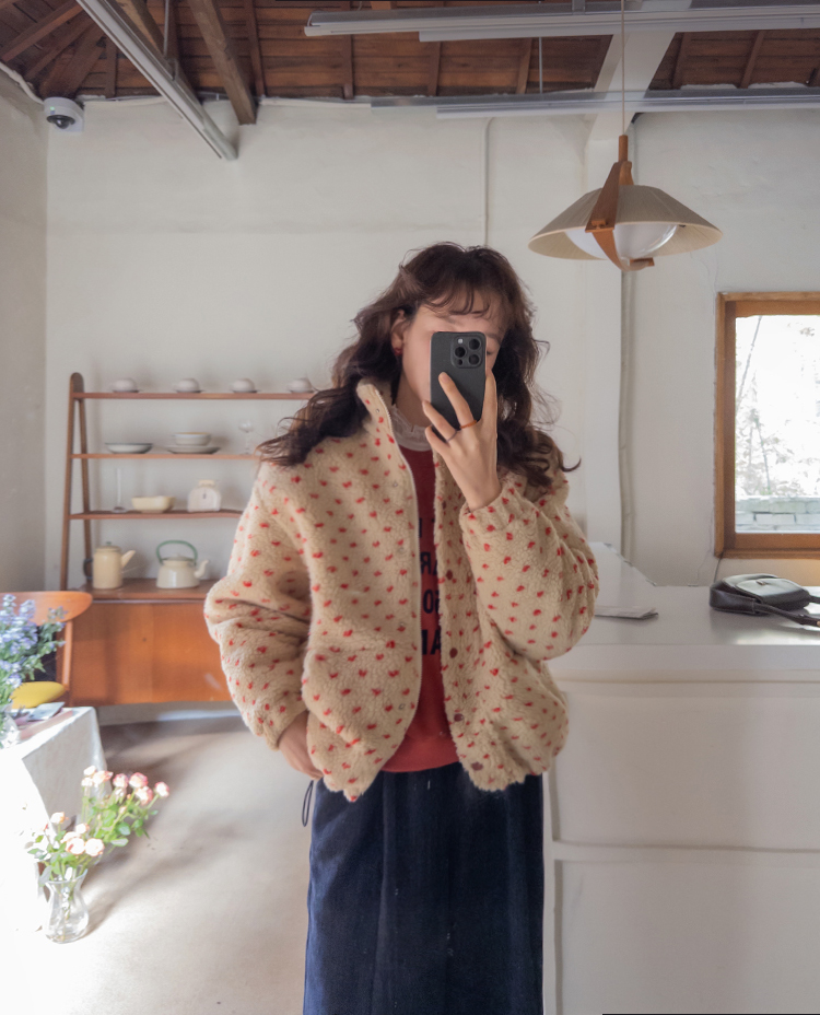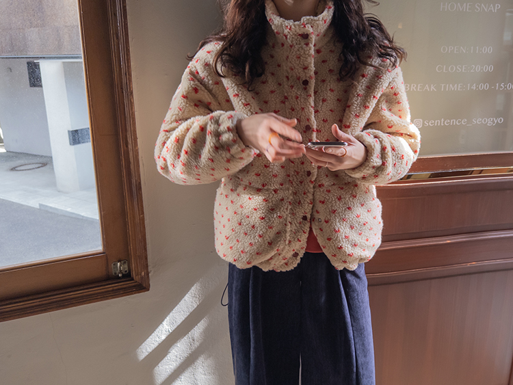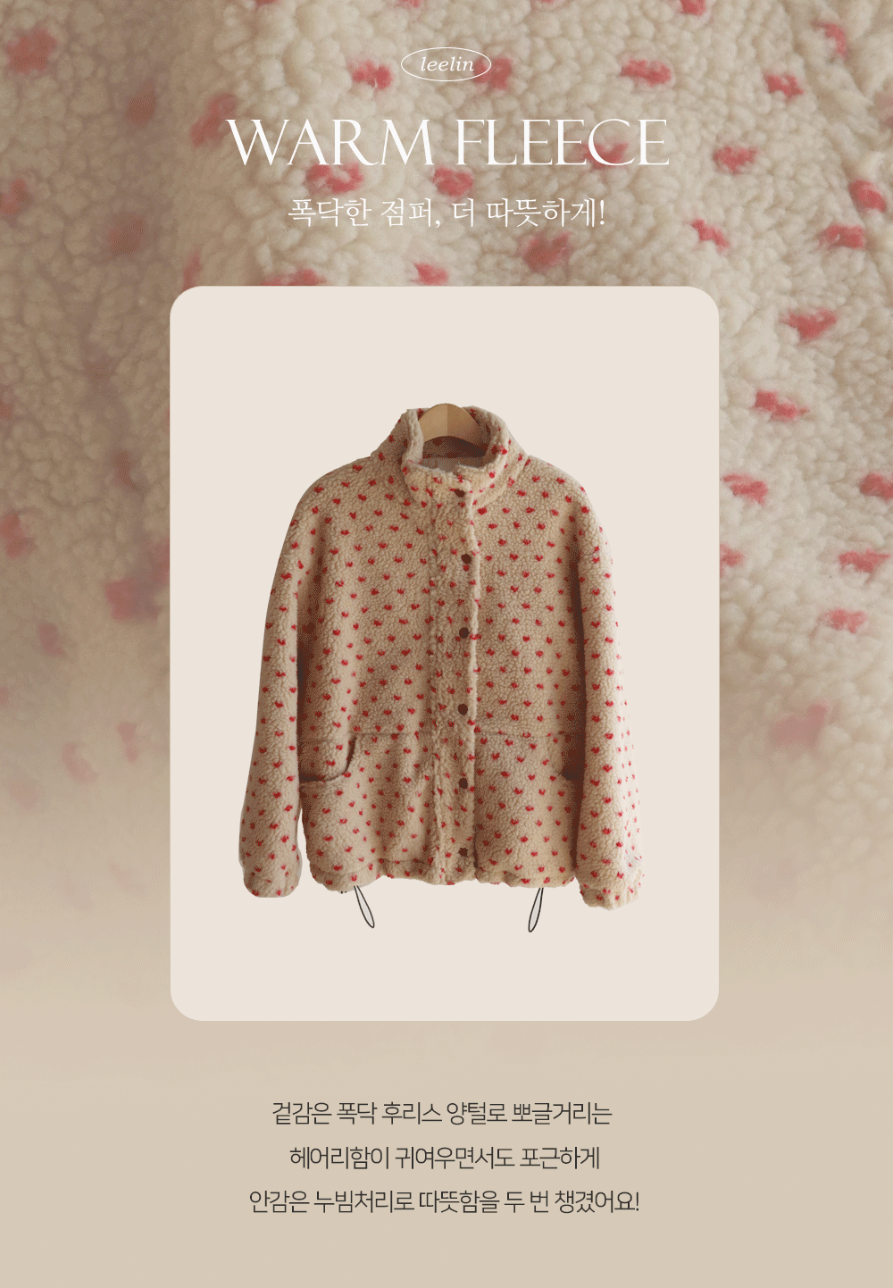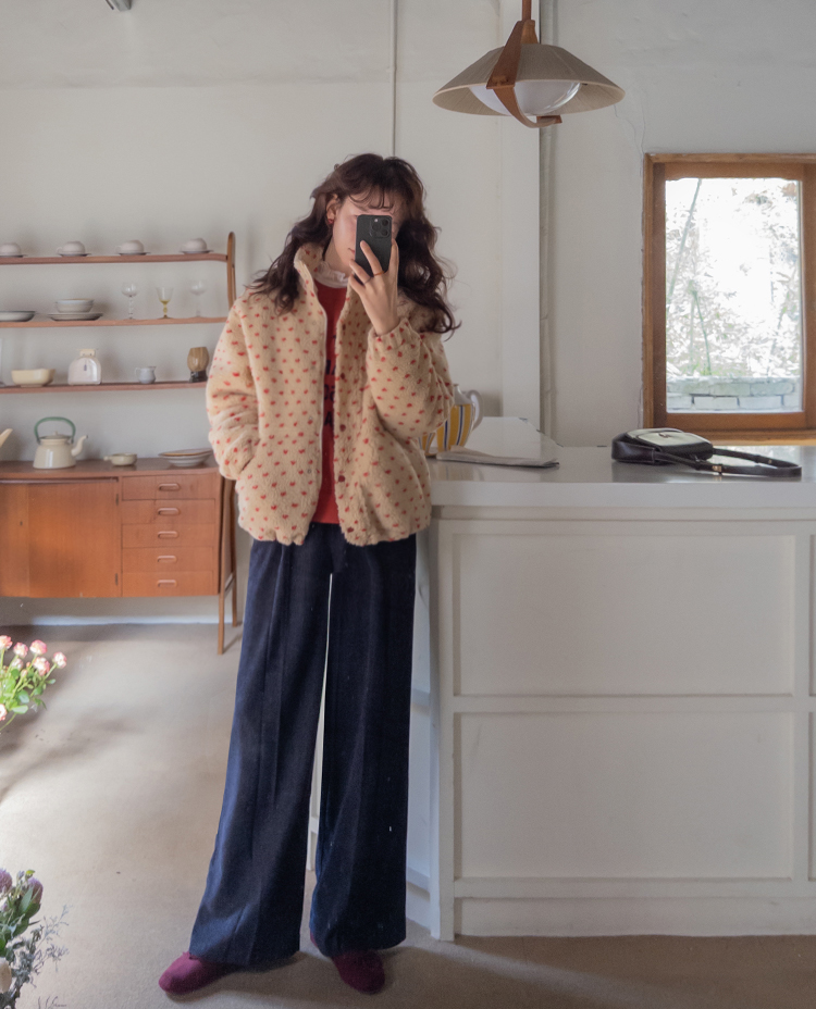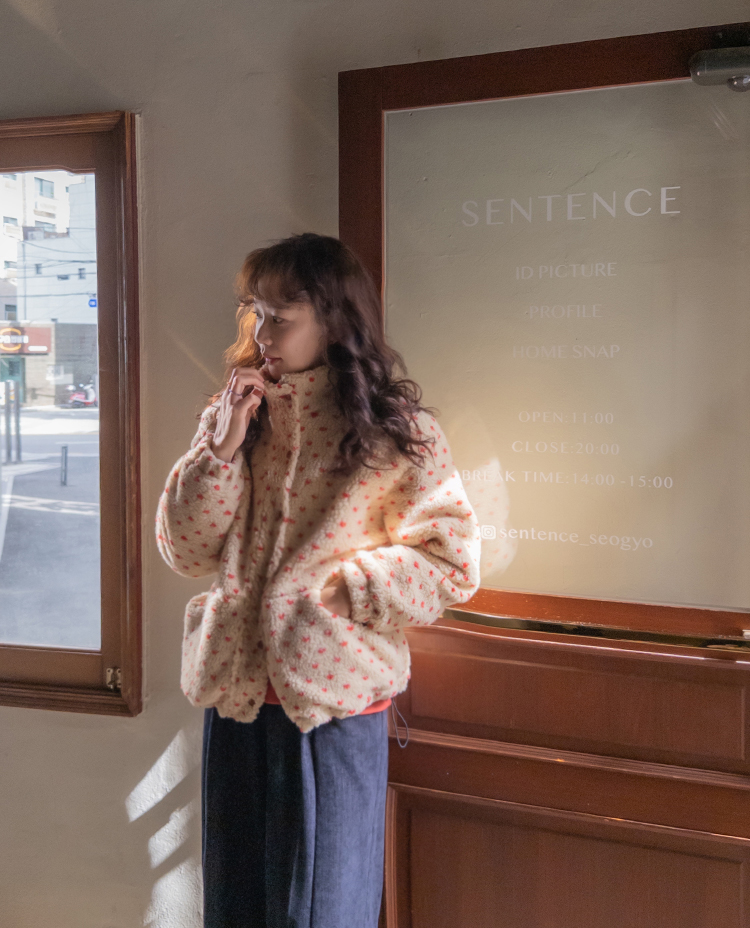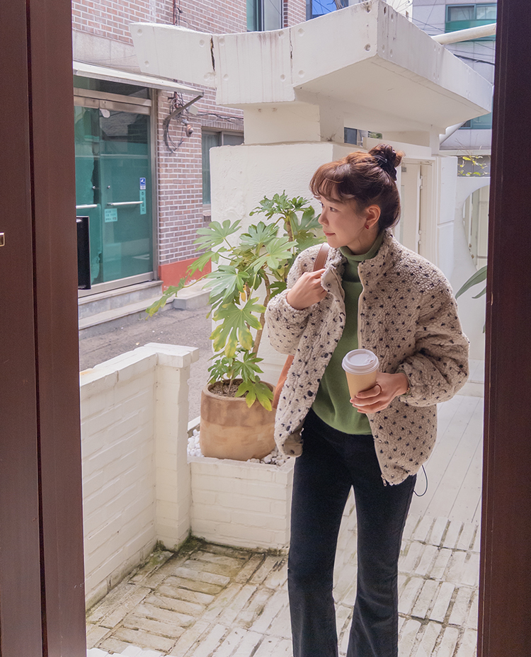 휘뚤마뚤~ 편하게 툭 걸쳐입기 좋은 점퍼 준비했어요:) 여유있는 핏으로 부담없이 즐기기 좋구 폭닥하게 바디를 감싸주어 더욱 따뜻해요! 똑딱이 단추+지퍼의 이중 잠금으로 더욱 퀄리티있는 마무리감~ 하이넥과 밑단 스트링 디테일로 한점의 바람도 허용하지 않는 완전 따숩 보온템이에요♨ 러블리한 도트 패턴과 양털 패턴의 완벽한 조합으로 소장미 가득하니 어서 빨리 만나보세요~