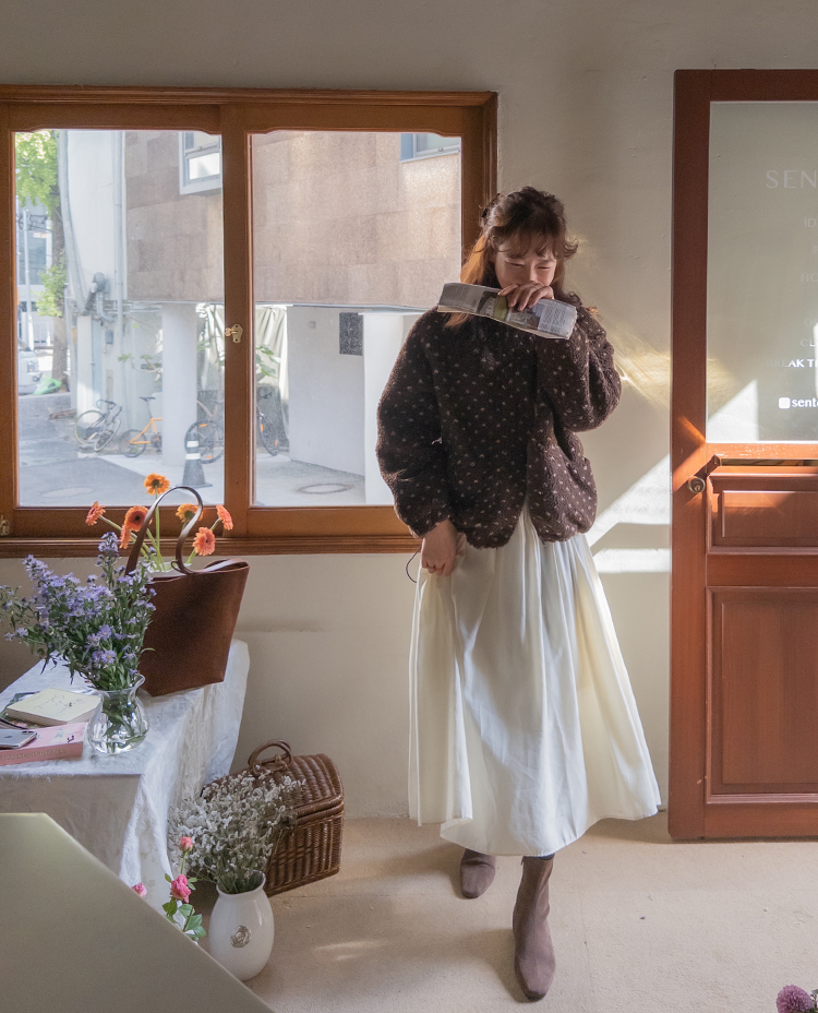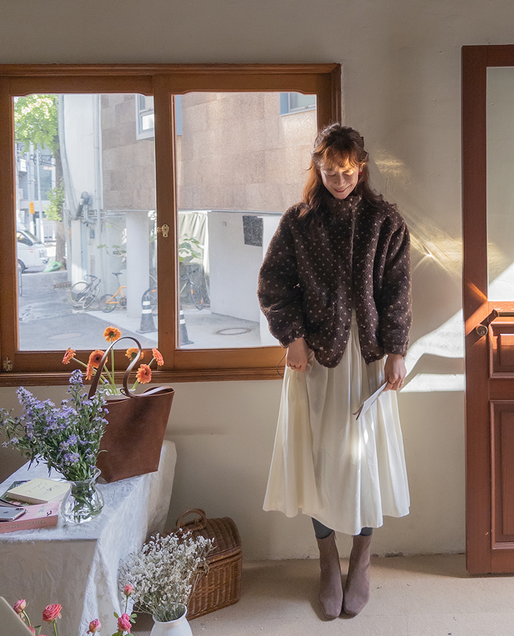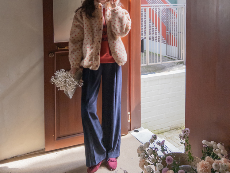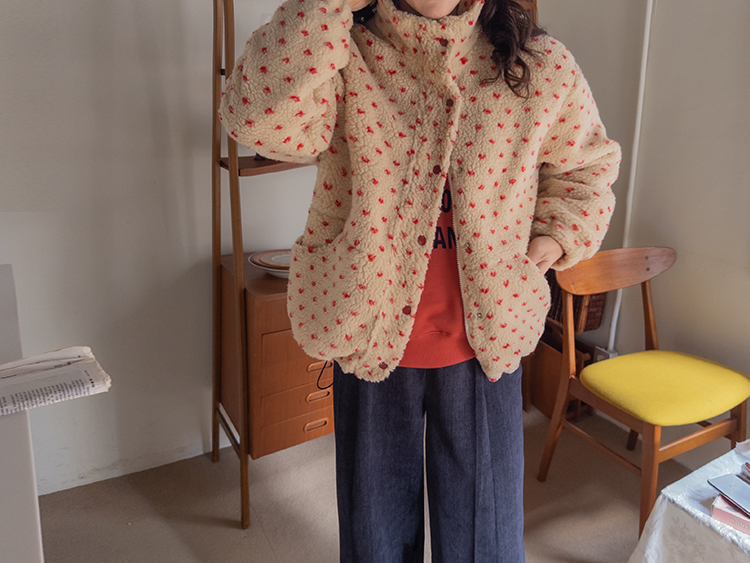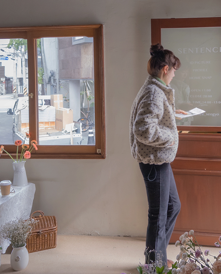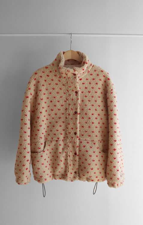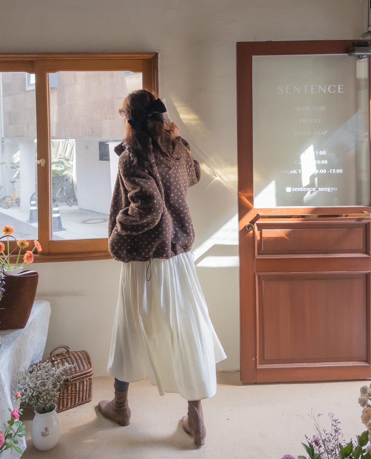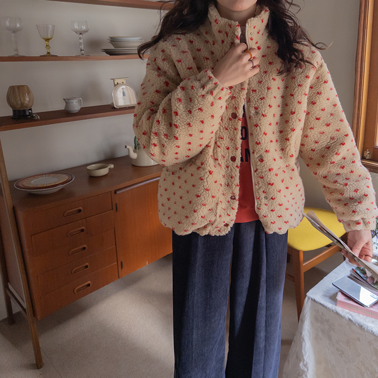 휘뚤마뚤~ 편하게 툭 걸쳐입기 좋은 점퍼 준비했어요:) 여유있는 핏으로 부담없이 즐기기 좋구 폭닥하게 바디를 감싸주어 더욱 따뜻해요! 똑딱이 단추+지퍼의 이중 잠금으로 더욱 퀄리티있는 마무리감~ 하이넥과 밑단 스트링 디테일로 한점의 바람도 허용하지 않는 완전 따숩 보온템이에요♨ 러블리한 도트 패턴과 양털 패턴의 완벽한 조합으로 소장미 가득하니 어서 빨리 만나보세요~