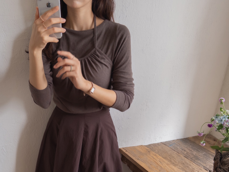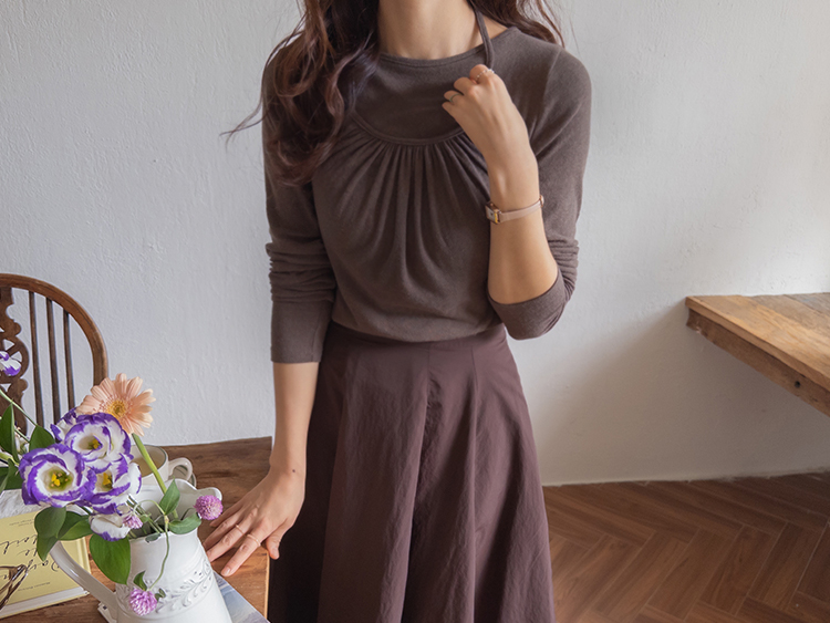 MD, 모델 다~ 추천드리는 로맨틱 무드의 홀터넥 티셔츠 소개드려요 ㅎㅎ 스탠다드한 실루엣이지만 몸에 딱! 붙지 않아 오히려 더 말라보이는 매직 티셔츠랍니다 :D 레이어드를 한 듯~ 프론트 셔링이 잡힌 디자인이 라인은 살려주면서 뱃살은 쏘옥! 감춰주더라구요 ^^ 홀터넥 디자인으로 여리한~ 감성을 좋아하신다면 요건 꼭! 소장해주세요!! 치즈처럼 쭈욱~ 늘어나는 스판이 촬영하면서 놀랬었던 *.* 굿 초이스 해주세요~♥