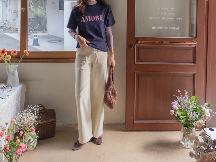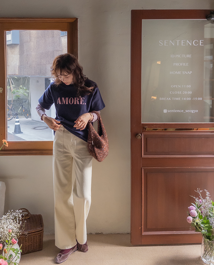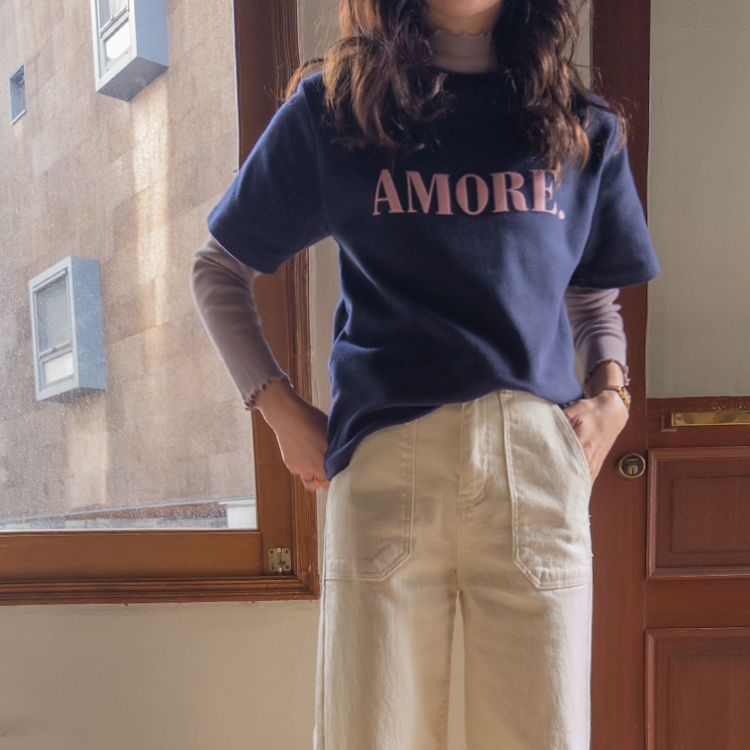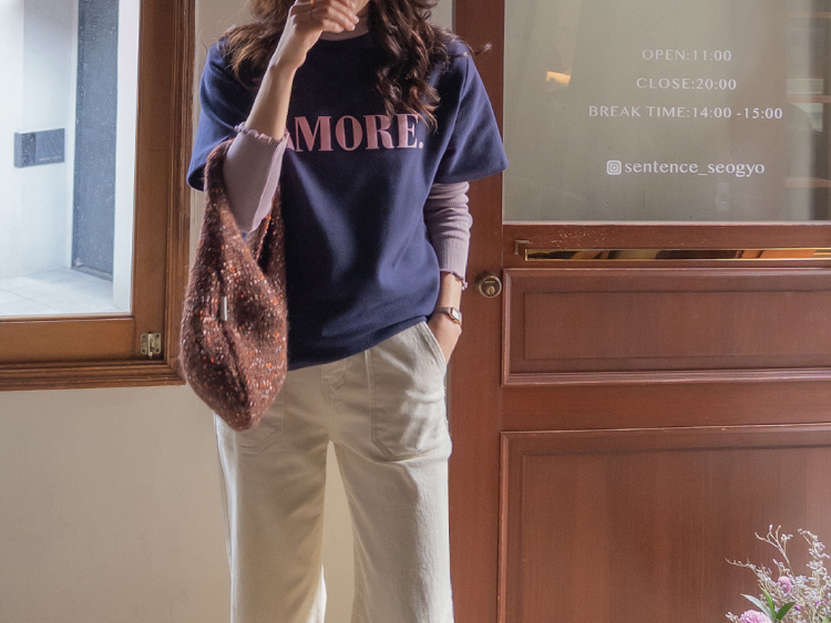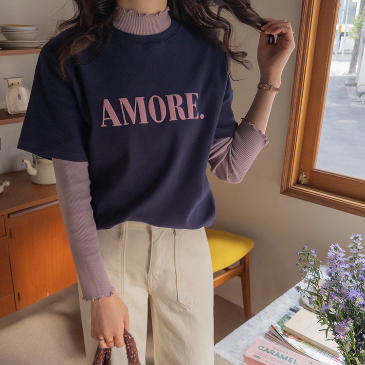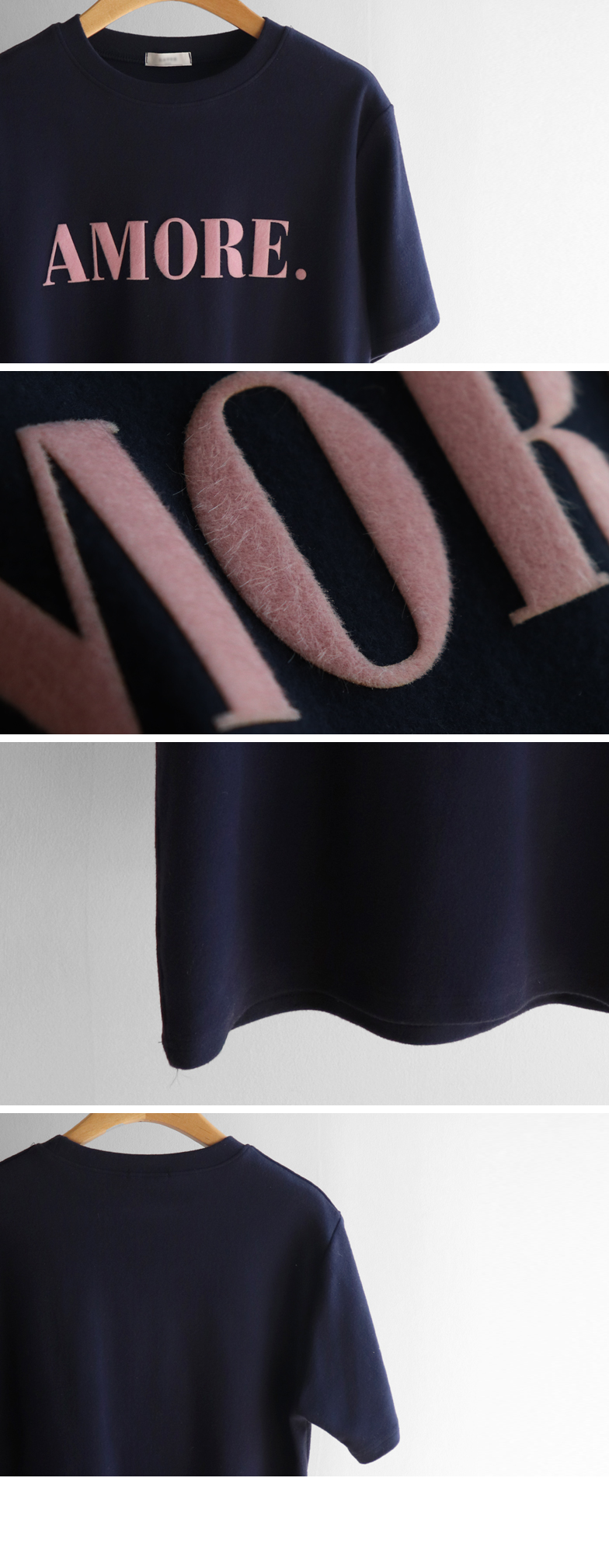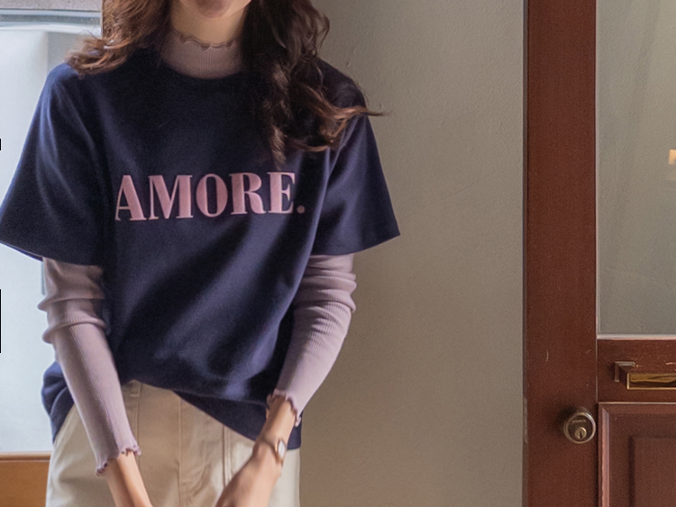 보들~보들 너무 부드러운 피치기모로 올 가을 겨울 유용하게 활용 가능한 따뜻한 반팔 티셔츠 보여 드려요~^.^ 벨벳 레터링 포인트로 입체감을 넣어주고~ 컬러마다 다 다른 배색 레터링을 주었어요! 치즈처럼 쭉-쭉 늘어나는 스판끼에 스탠다드한 핏으로 누구든 편하게 즐기기 좋구요 단독 & 레이어드템으로 활용도 좋은 요 기모 티셔츠 강추! 드릴게요~♥