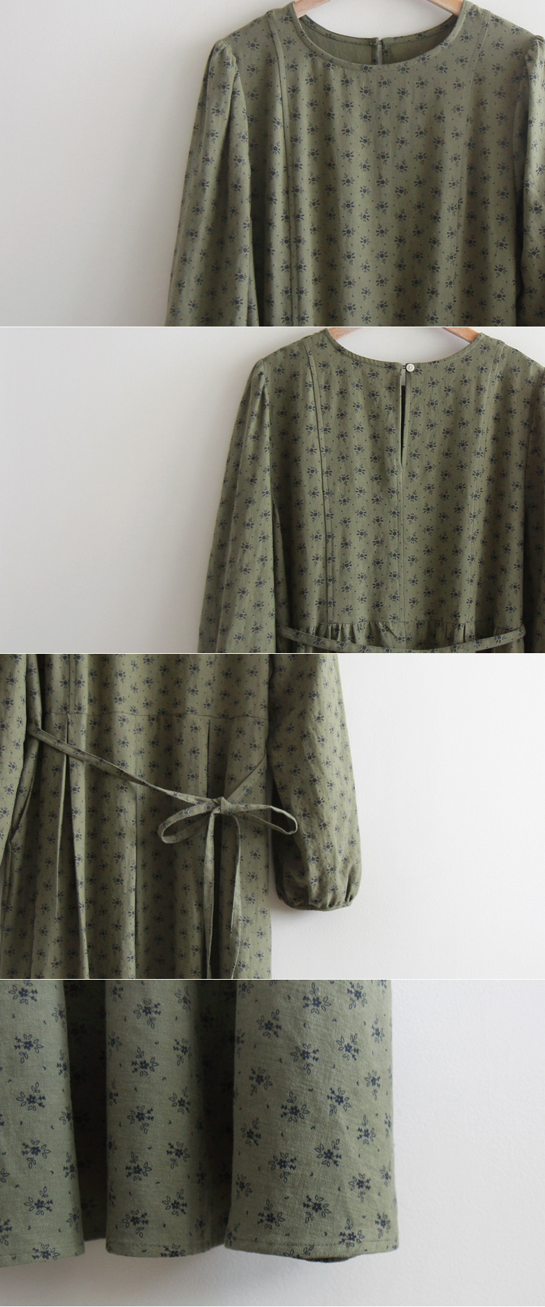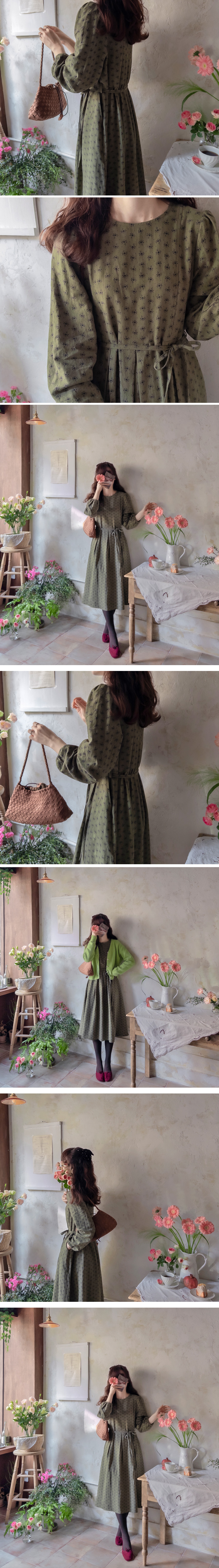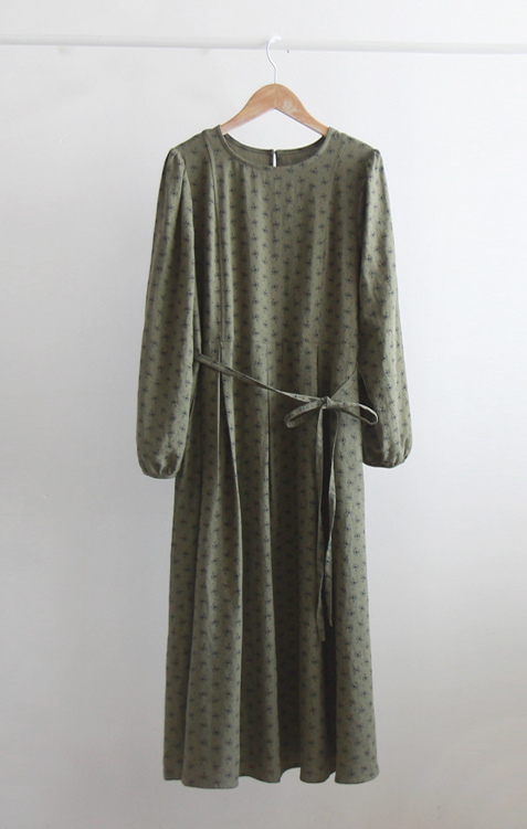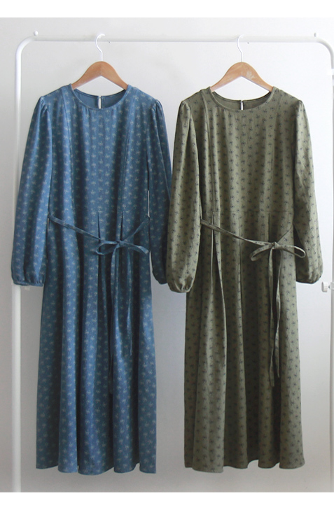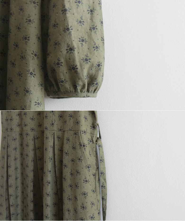 [Waist strap set: Separate - Edge fit created] [The lower part of the skirt is designed with a pin tuck design for a stylish and elegant fit] [Mini flower pattern creates a lovely and charming mood] [Highly recommended as a stylish and elegant one-piece dress]
