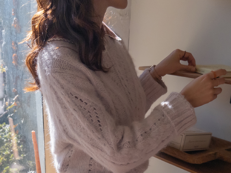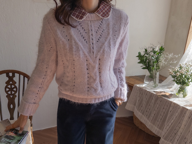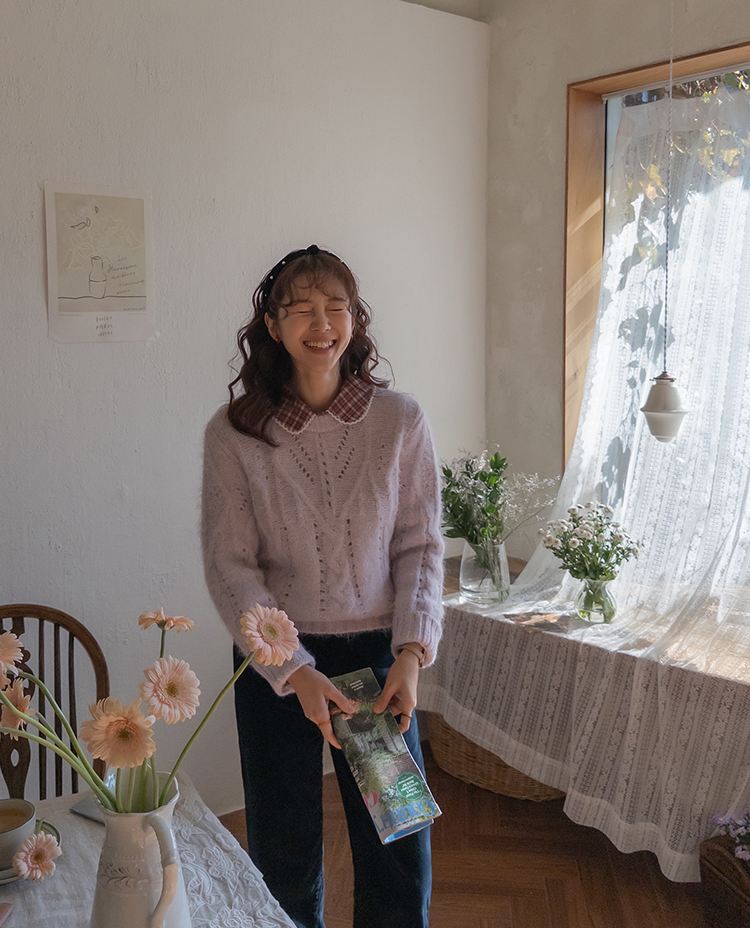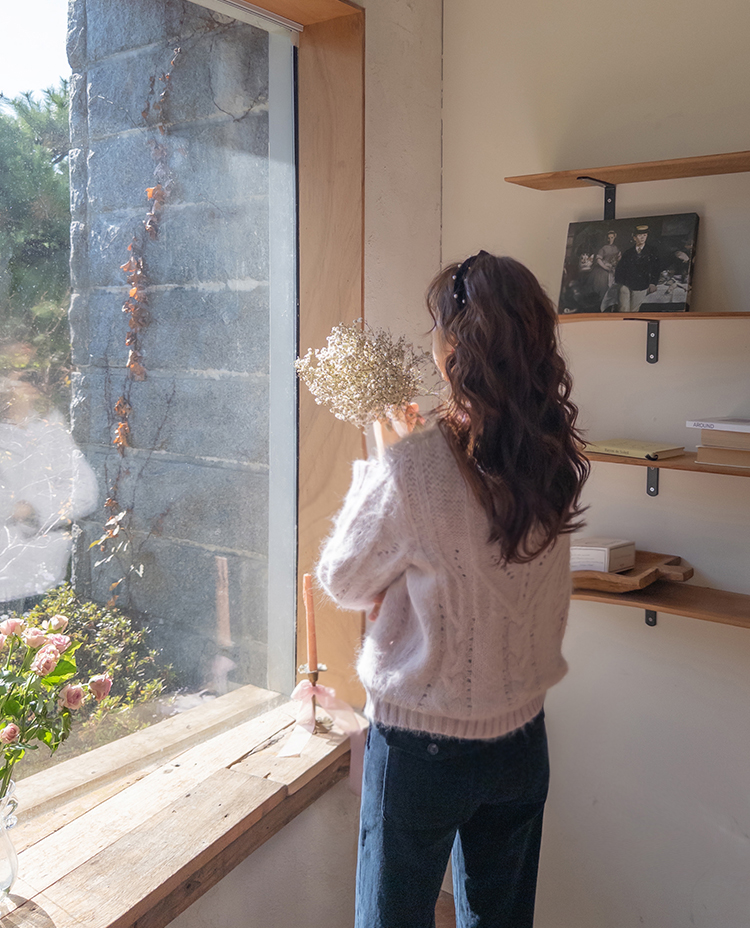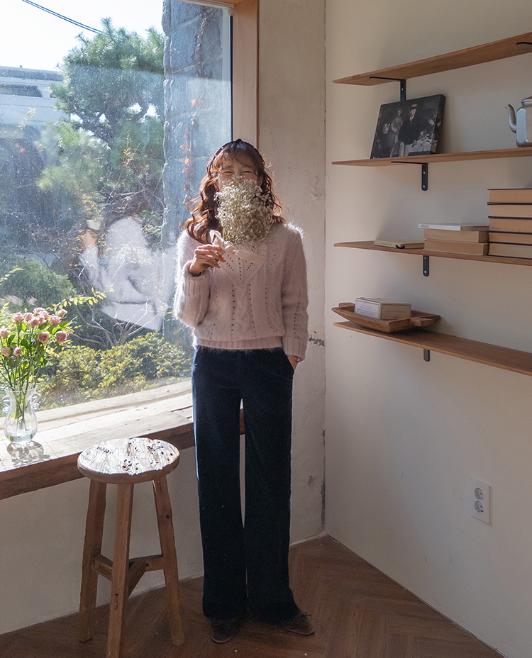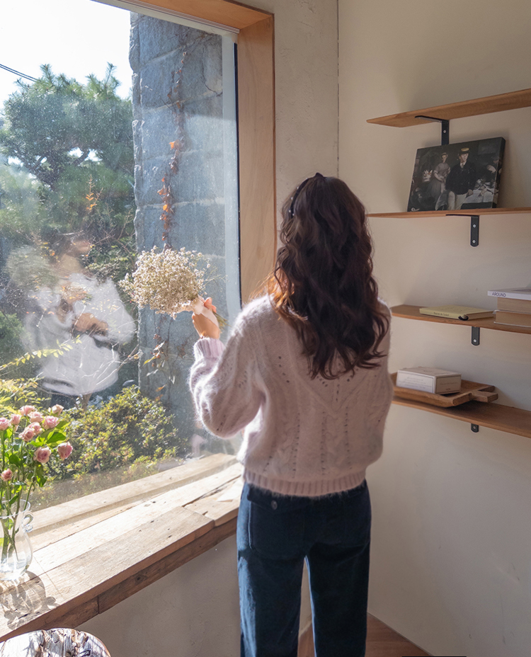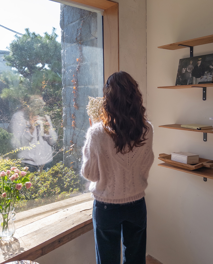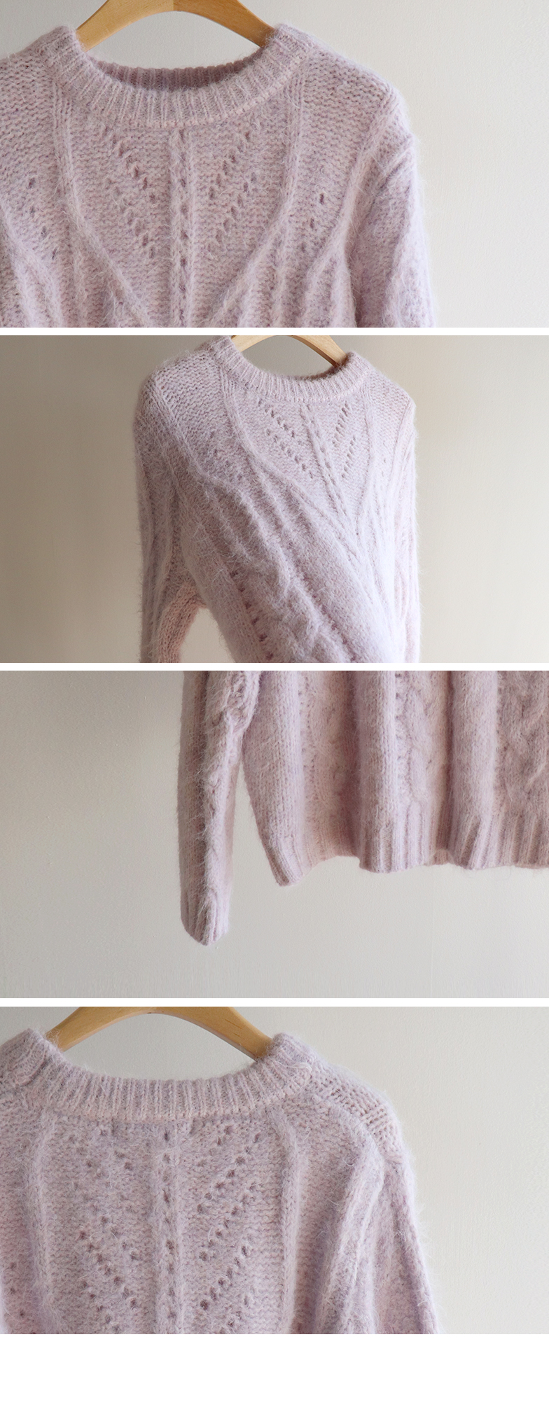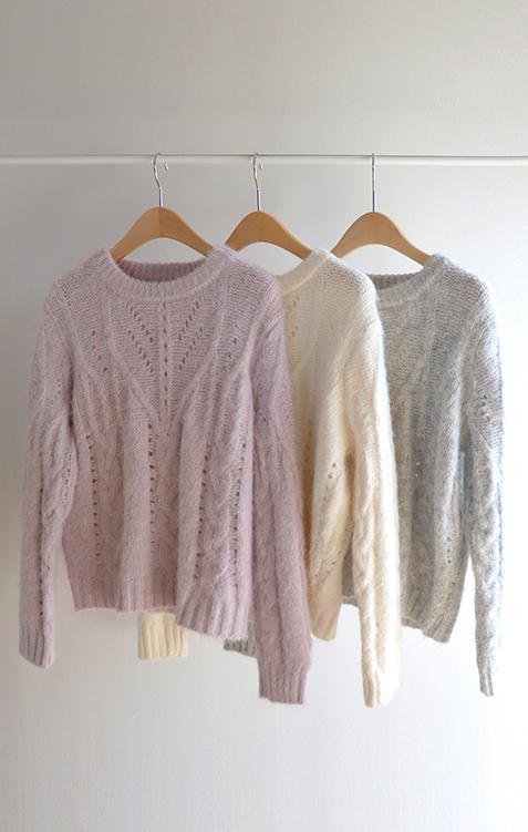 몽글몽글 헤어감이 느껴지는 포근한 니트에요♥ 잔잔한 꽈배기 짜임에 여리한 실루엣으로 사랑스러움 폭발ㅎㅎ 울 함유로 탄탄한 내구성으로 한겨울에도 따뜻하게~ 살짝 여유있는 핏감으로 여리여리함UP 살짝 퍼진 헤어감이 고급스러우면서 예쁘답니다^^ 굿초이스 하세요ㅎㅎ