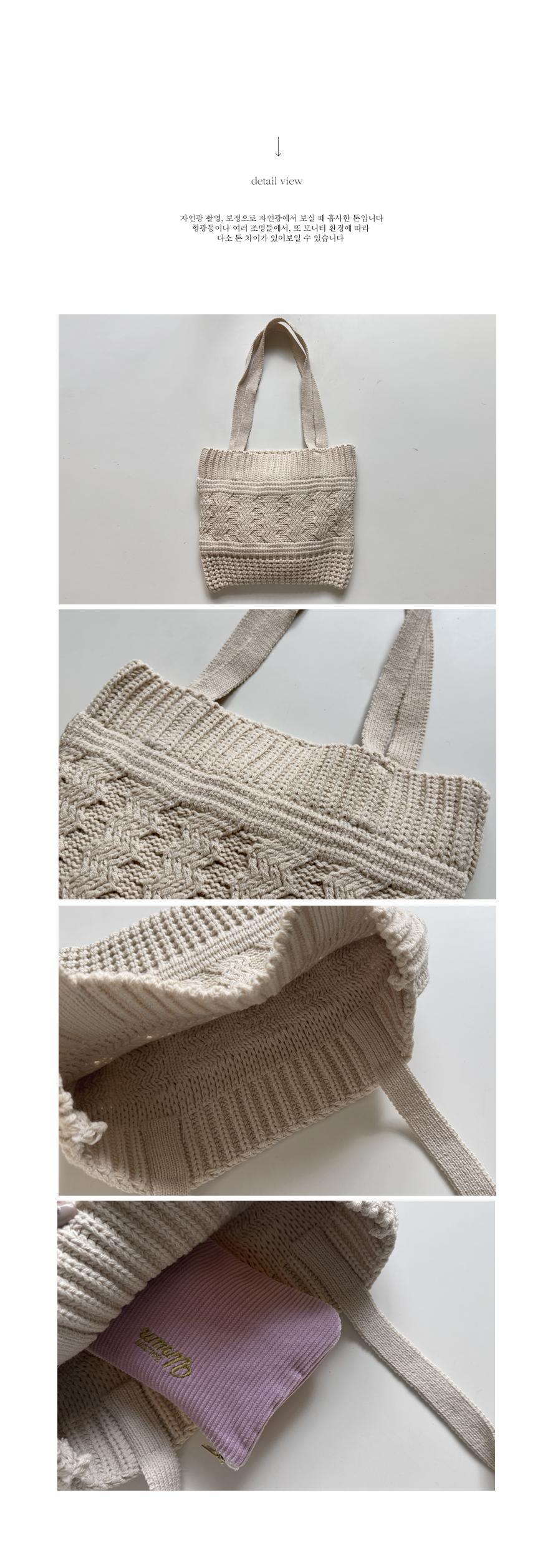 포근한 분위기를 만들어 줄 니트짜임으로 데일리로 가볍게 즐기기 좋은 가방이에요! 탄탄한 면혼방으로 늘어짐 없구요~ 실용적인 수납크기로 휘뚤마뚤~ 겨울 무드를 완성시켜 줄 니트가방! 한 손에 쏙, 가볍게 들기 좋아 강추 드려요~