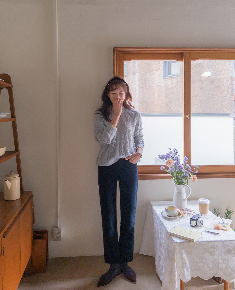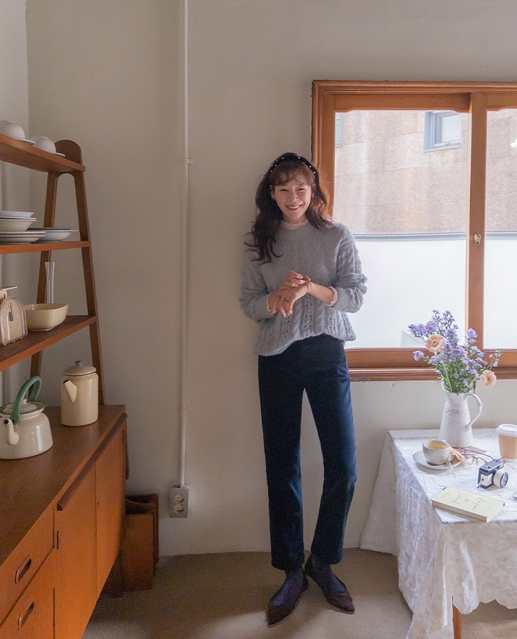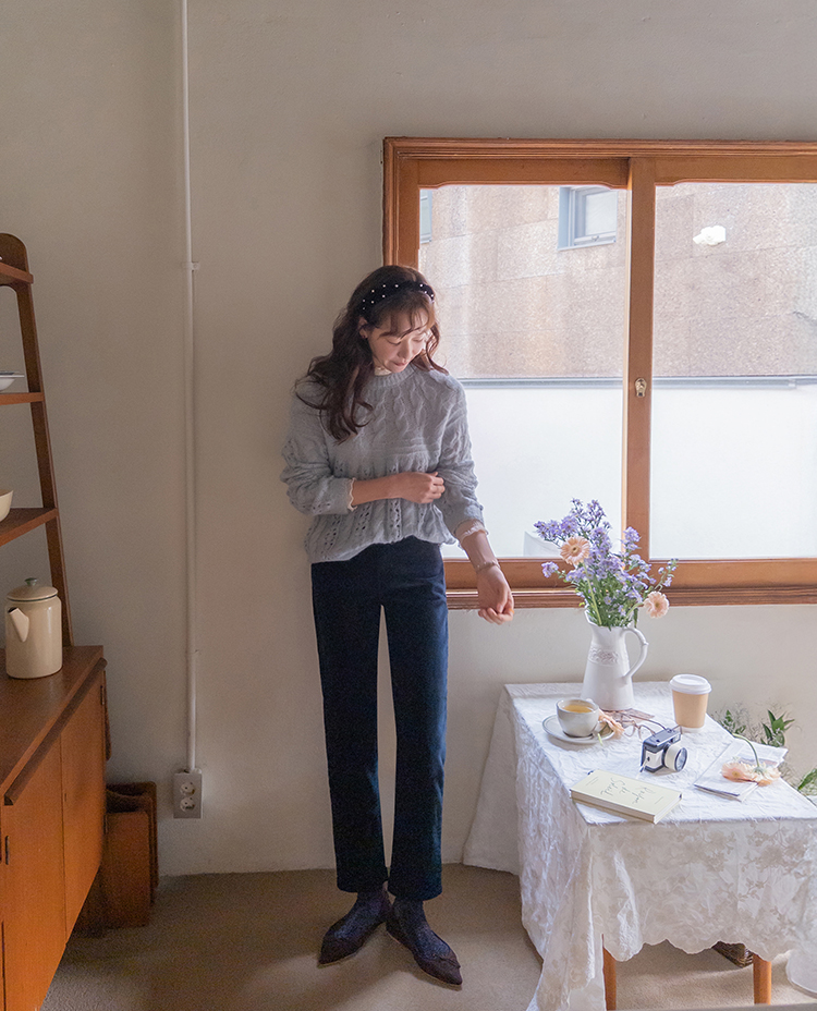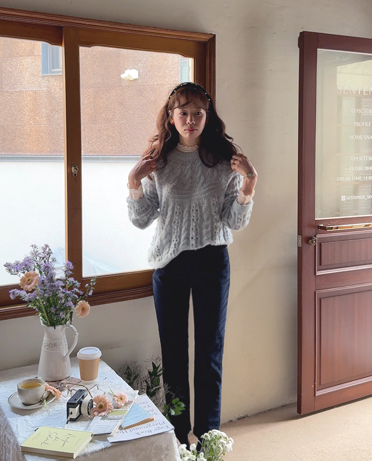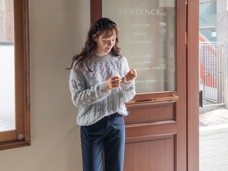 포근한 무드가 잔~뜩 느껴지는 케이블 짜임의 은은한 니트 보여 드려요~! 헤어리한 소재감으로 피부에 닿았을 때 너무 부드럽고 따뜻한 니트랍니다ㅎ.ㅎ 아방한 핏에 케이블 짜임 속 은은하게 비치는 펀칭 디테일로 여리~여리한 실루엣 완성~ 단독은 물론 티,셔츠등 레이어드하기 좋고, 리린 감성이 듬~뿍 단긴 예쁜 니트 꼭 소장하세요♡