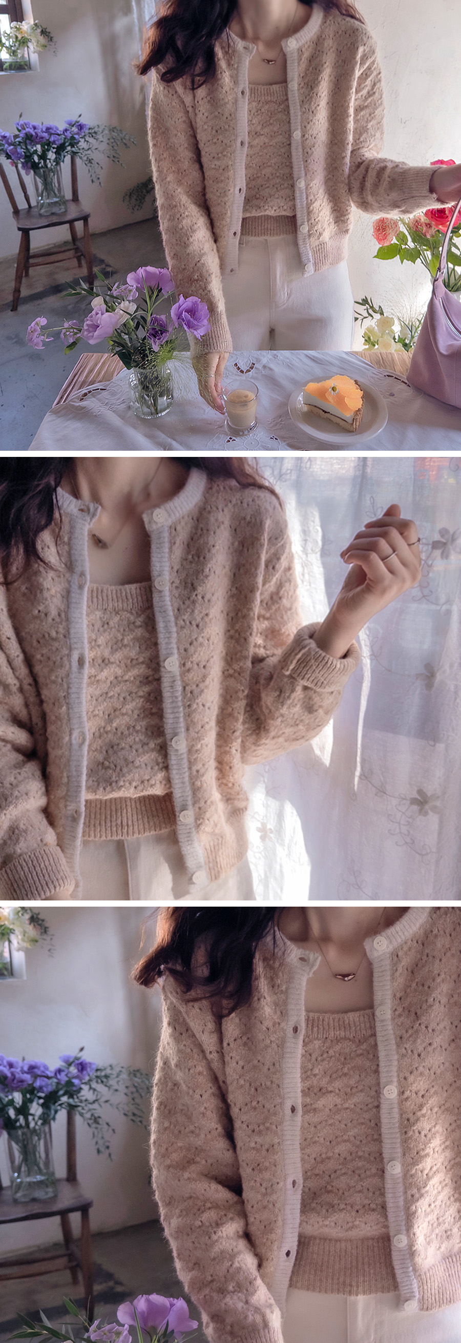 보송하고 따스한 감성이 돋보이는 짜임이 너무 이쁜 배색 가디건 이랍니다`
