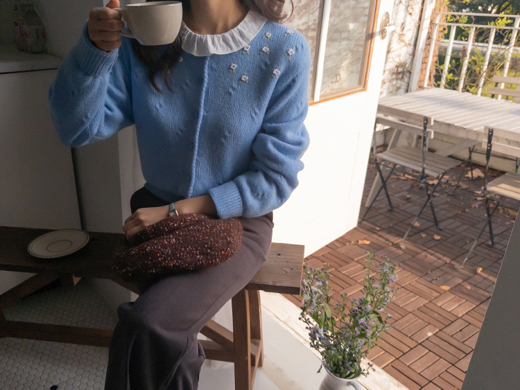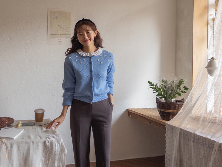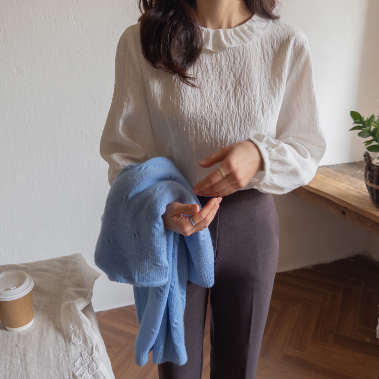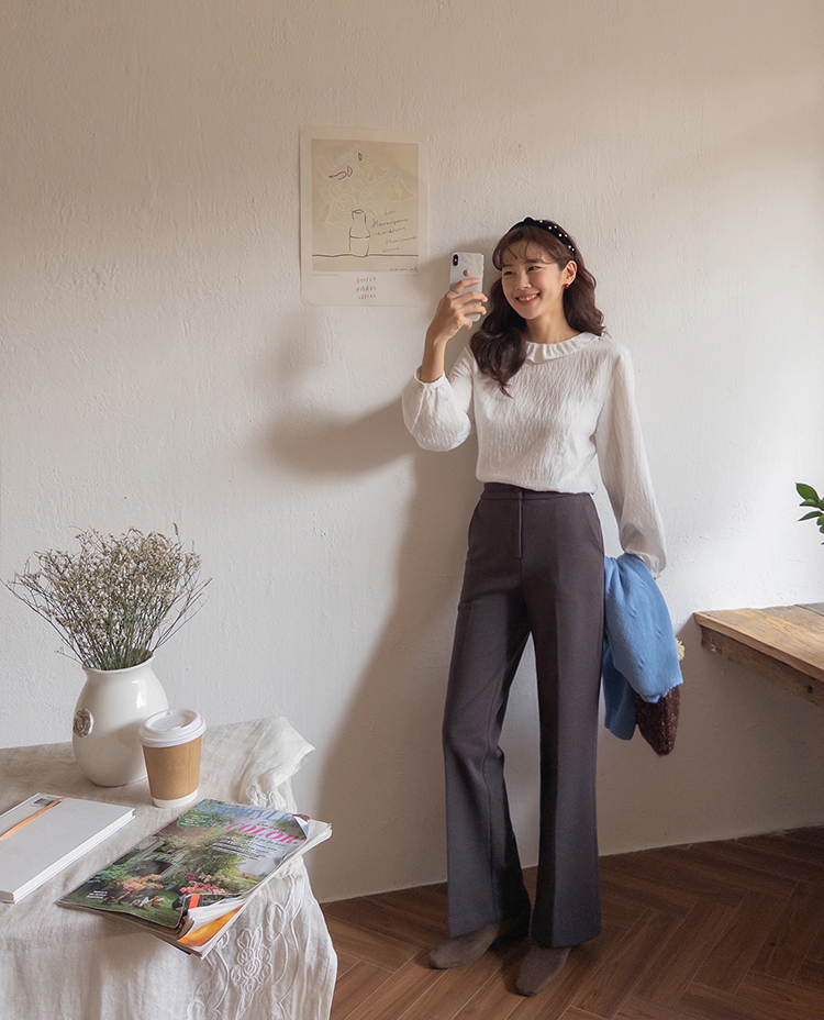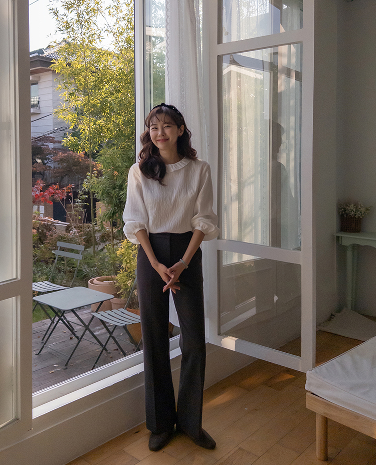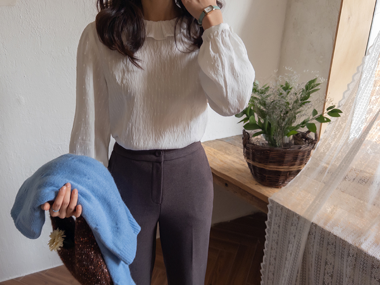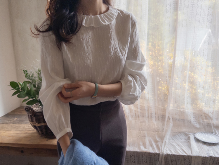 청순 여리함 가득..♡ 보기만 해도 사랑스러운 무드의 LIN.MADE 블라우스 보여드려요~! FW시즌에도 이너 블라우스는 빼놓을 수 없죠ㅎㅎ 오늘 보여드리는 블라우스는 은은한 세로 결감이 느껴지는 패턴이 더해져서 그 자체로 포인트가 되는 아이에요:) 후들후들~ 찰랑이는 소재로 입는 순간 몸선을 가녀려보이게 만들어주는건 물론이구요 원단으로 포인트를 주어서 디자인 자체는 군더더기 없이 깔끔하게 제작해 주었어요-! 심플한 라운드넥에 프릴을 넣어주어 여성스러운 무드는 살리고 뒷부분 콘솔 지퍼로 깔끔하고 이지한 오픈클로징이 가능해요~ 컬러는 아이, 블랙 두가지로 제작해주어서 어느 룩에나 부담없이 매치할 수 있으니 취향에 따라 초이스하셔서 시즌리스하게 함께해주세요-♡