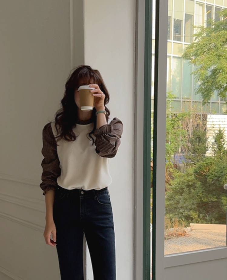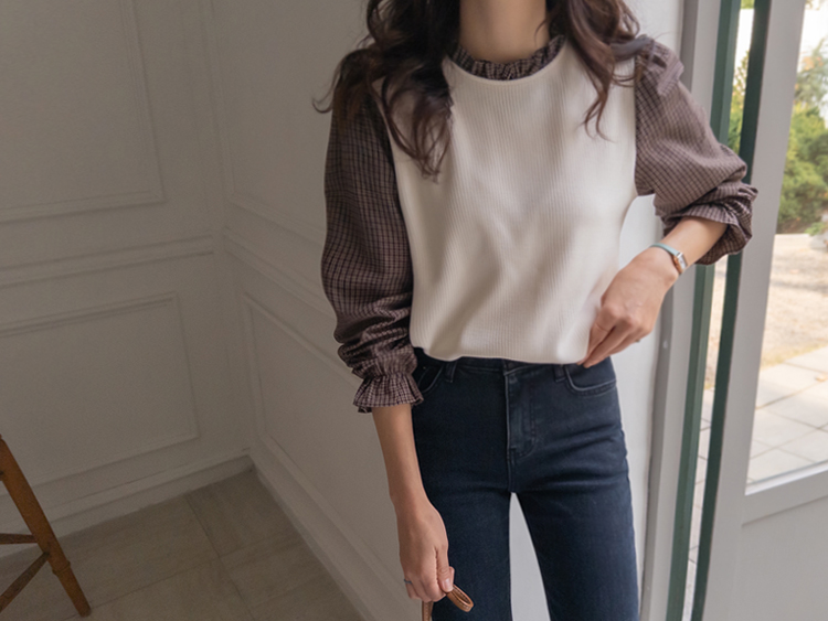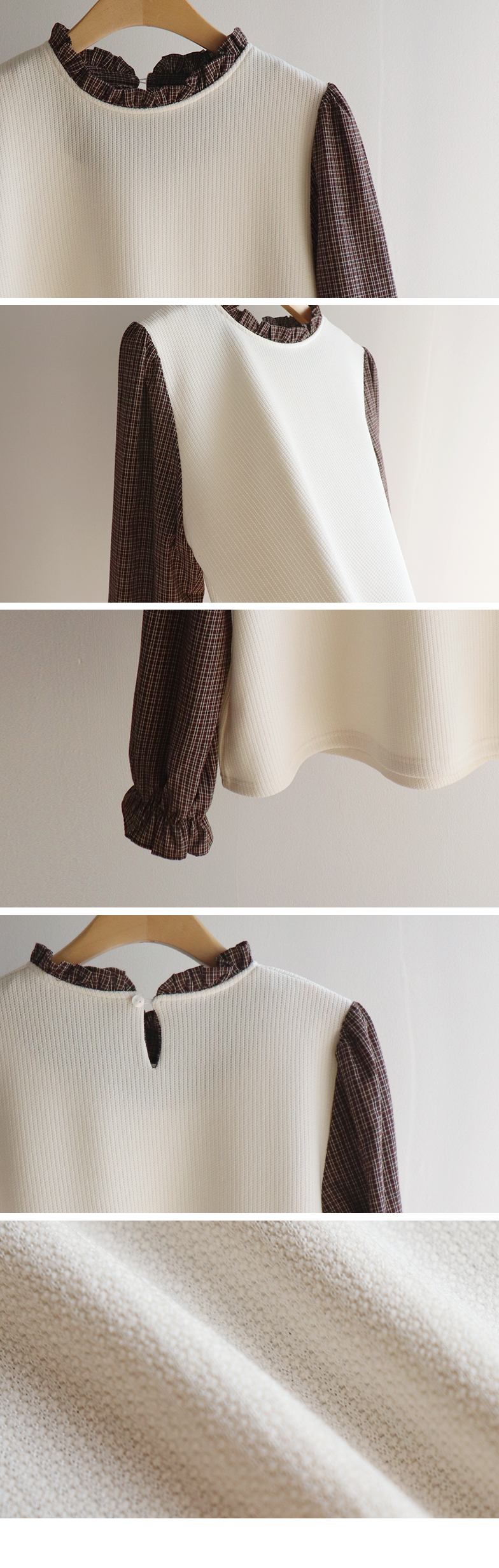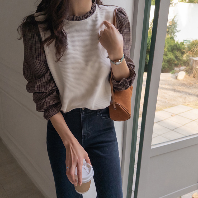 마치 셔츠를 레이어드한 거 같은~ 소매 체크 배색으로 생동감이 느껴지는 블라우스 보여 드릴게요~^.^ 리린 무드가 가~득 담겨있어서요~ 러블리한 분위기를 완성해 줄 블라우스! 어깨 셔링과 넥 & 소매 프릴로 봉봉한 ST~♡ 너무 부드럽고 편안한 피치 기모에~ 몸판은 쫀-쫀하고 따뜻한 원단으로 편하게! 데일리는 물론~ 격식있는 룩으로 찰떡이니 꼭 소장하셔서 예쁘게 입어주세요~*♡*