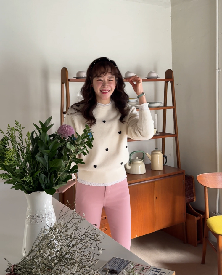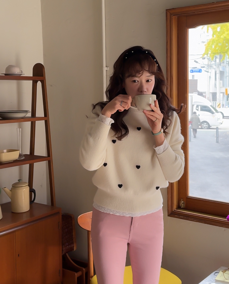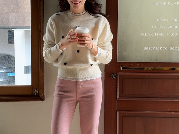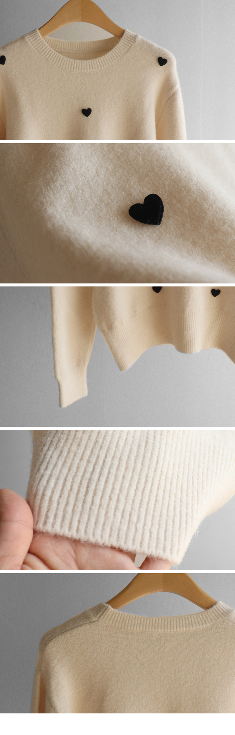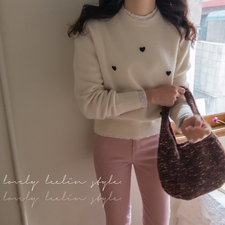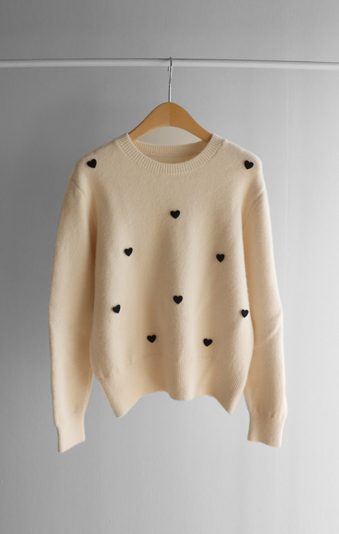 보자마자 기분 좋아지는 하트 포인트가 콕콕~ 사랑스러운 무드가 가득한 리린 감성 니트!! 입체감있는 패치 하트가 더해져 러블리하면서도 무난한 룩에 포인트가 되어줄 아이템 :) 아우터 속, 포인트 니트로 딱♥ 보들보들한 터치감으로 포근하게 착용 가능해요~ 도톰한 두께감이라 지금은 단독, 겨울에는 아우터 속에 쏙~ 입어주세요 ^^